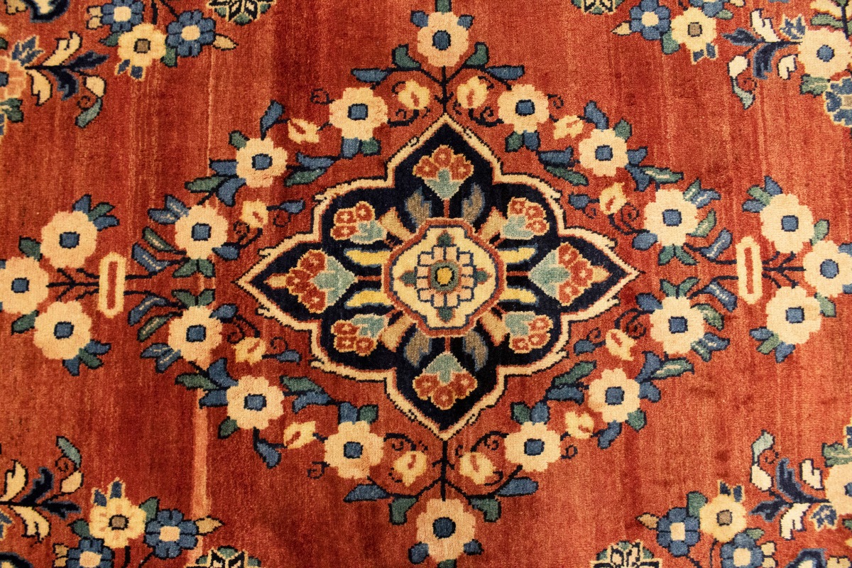This original 4X7'6 red vintage Persian rug was crafted by the hands of skilled weavers enthused by a variety of lovely artistic designs, to recreate the aged look of the unique piece with a richness of color and beautifully elaborated floral background field. What set this traditional Oriental area rug from the others are the material and dye used (wool pile and cotton foundation), knot count, ancient designs, fantastic grades, and its regional historical connection: it has deep roots, from the story of the people who produced it to the meaning of the symbols and colors displayed across its canvas that have been praised for centuries. This classic home décor carpet will be completely cozy and inviting that never will go out of style! Also, this Oriental rug would be among your most valuable treasures, it is a great investment that increase in value over time, and it will last for generations because was woven with high-quality, all-natural wool; it won’t rip, tear, or shed. Environmentally friendly, opulent yet affordable; this Persian rug will give you a thorough amount of character to help define your living space with sophistication and warmth that will capture the eyes and attention of your audience (homeowners, designers, decorators, family and friends). RT-2166