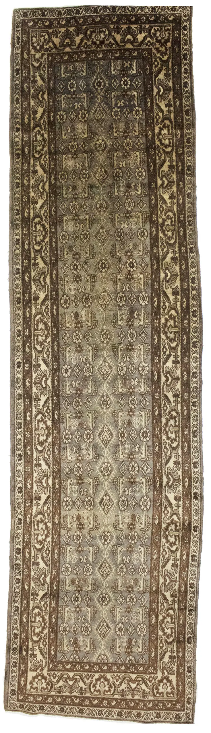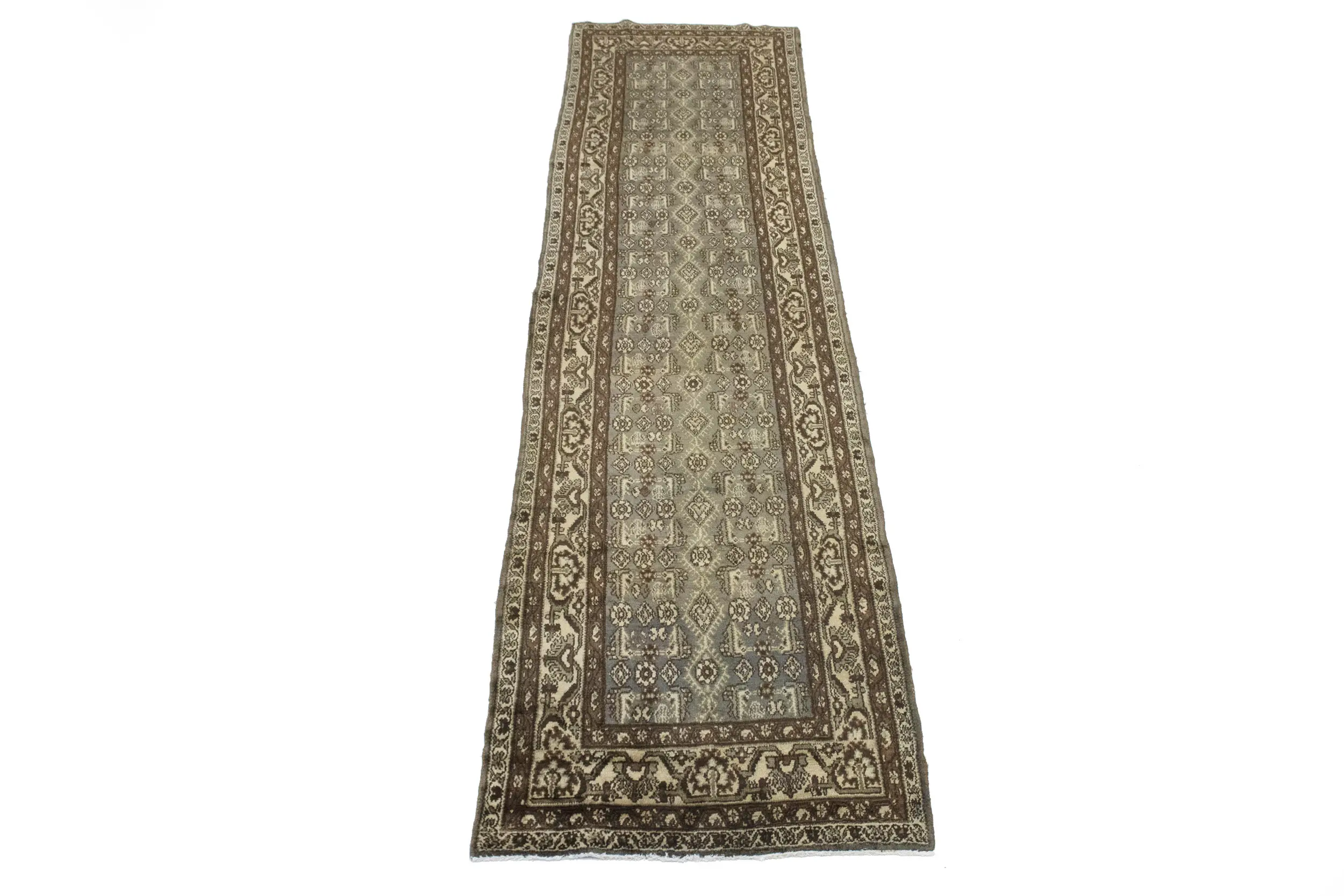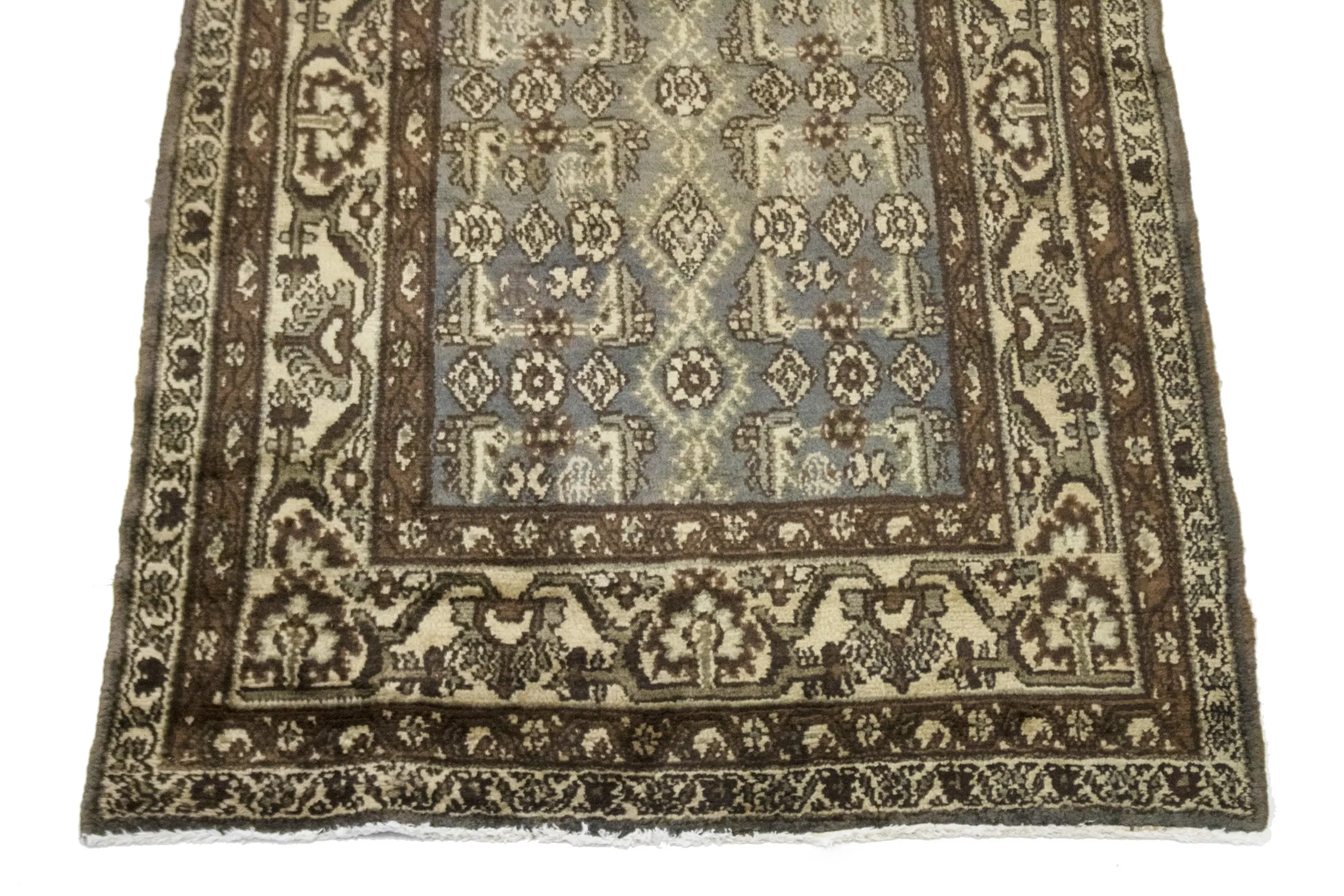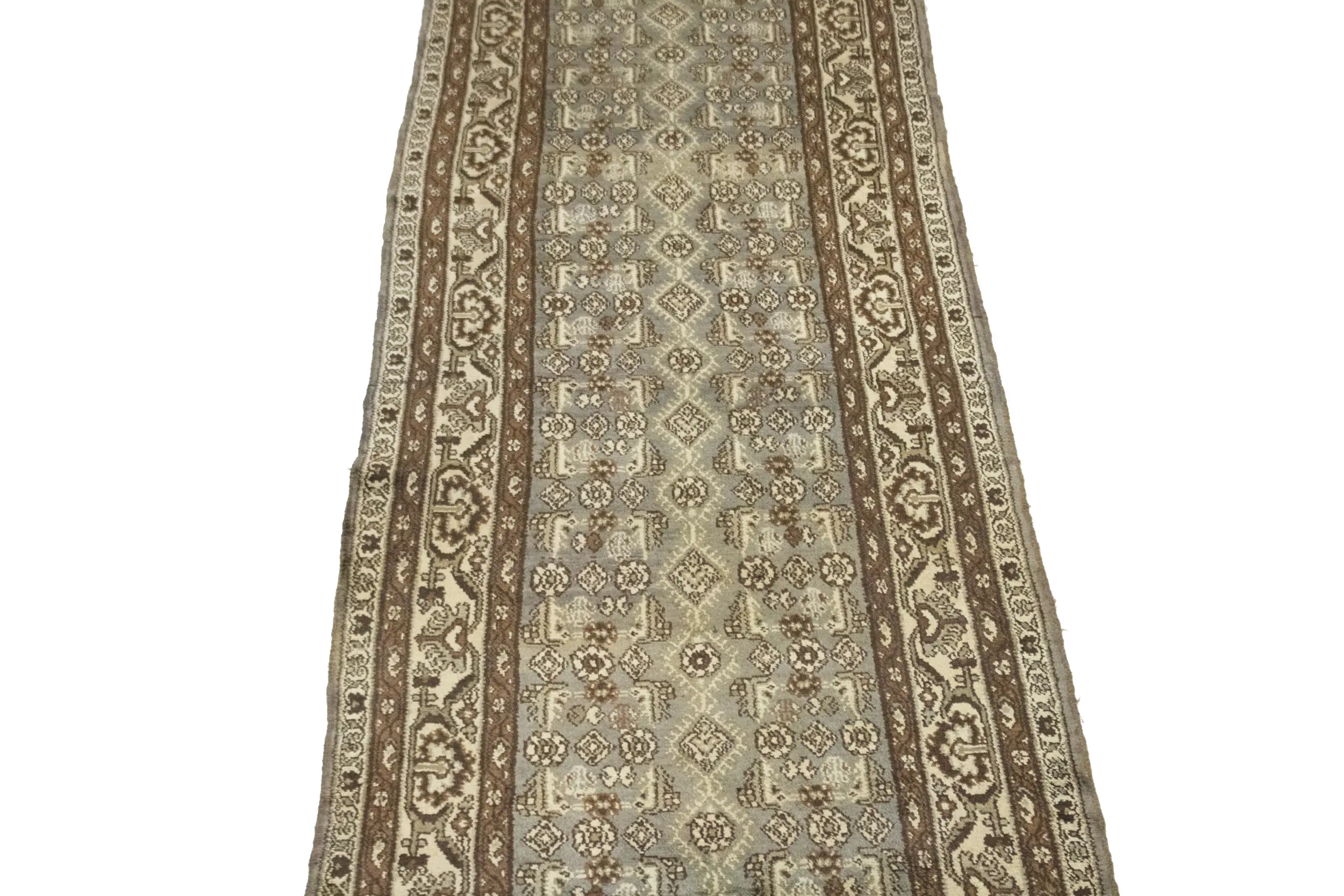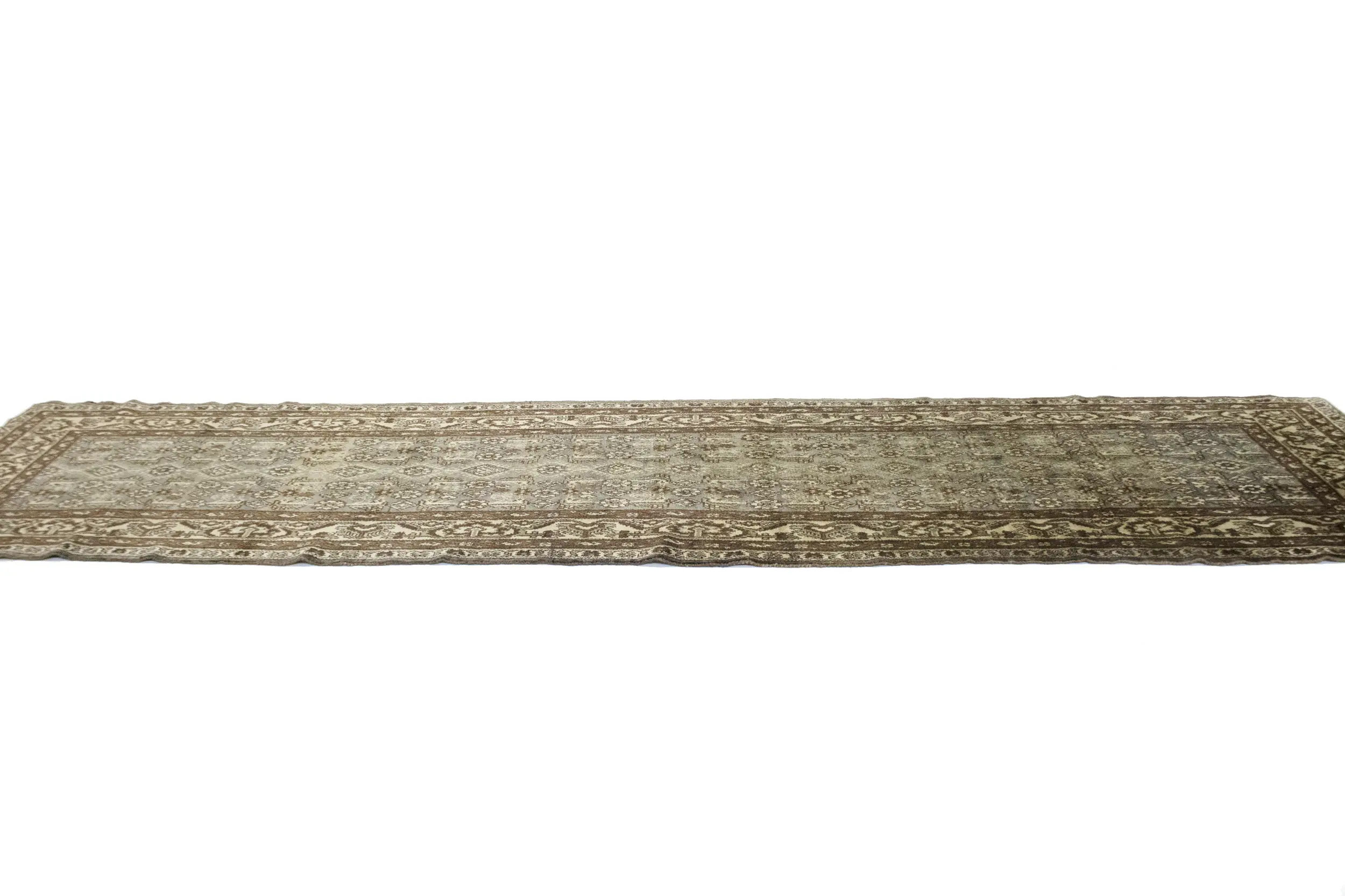 Hand Knotted semi antique 4X15 Persian palace runner made with vegetable dyes (fine wool pile and cotton foundation), exceptional knot count, and appealing ancient designs. This Oriental palace runner never will go out of style and would be among your most valuable treasures.