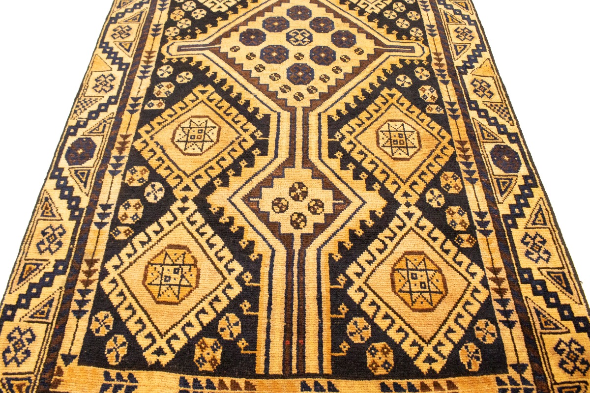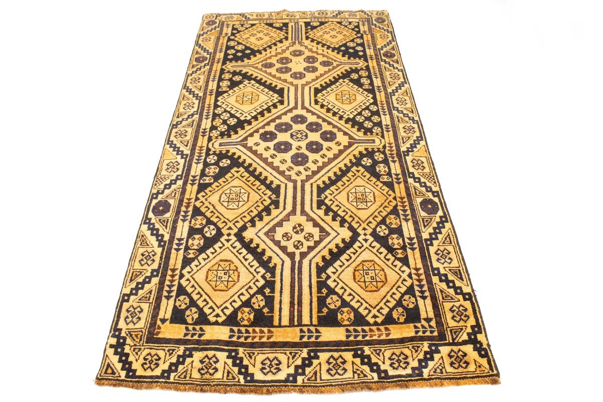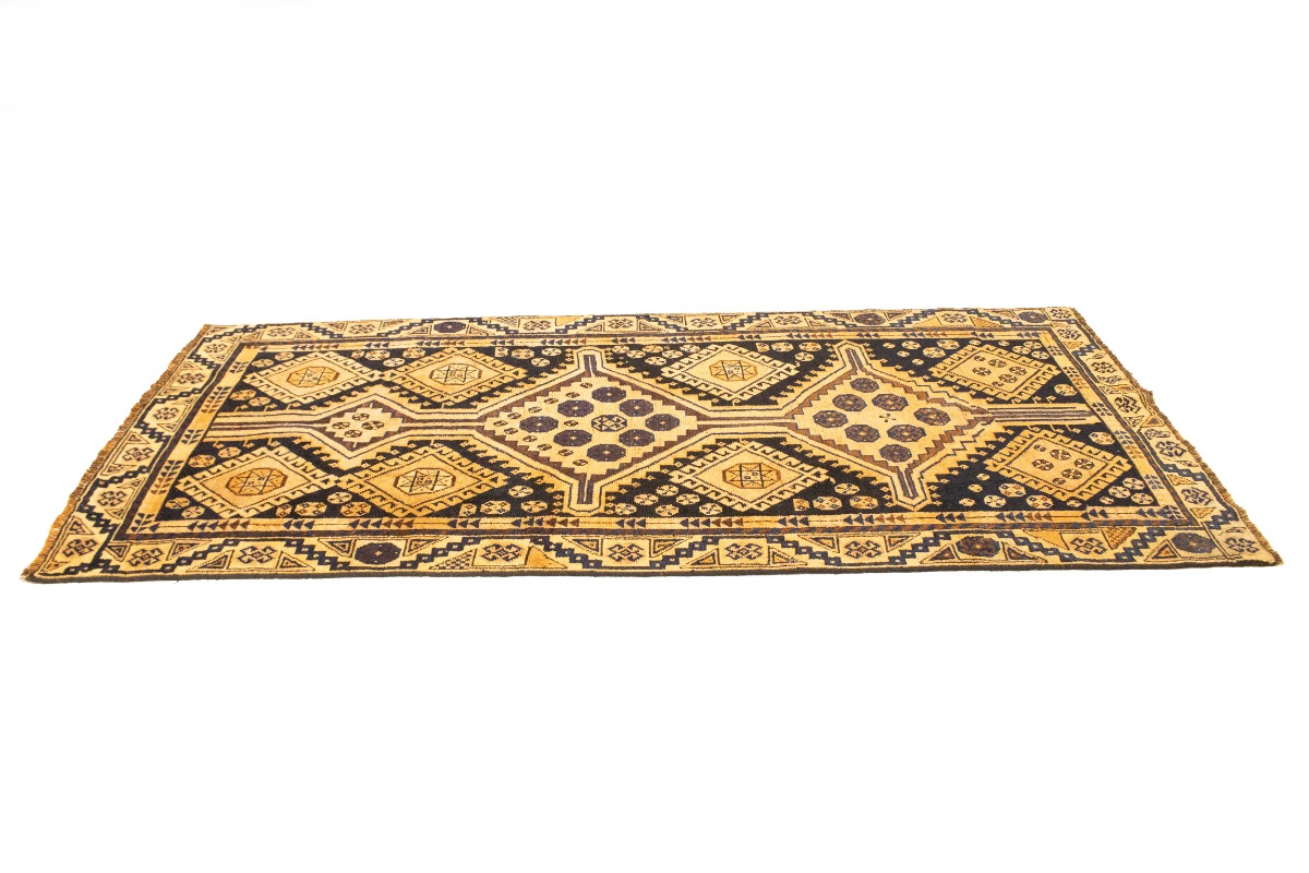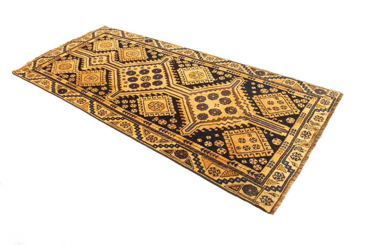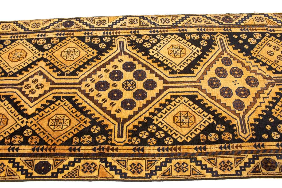 This original 4X8'5 golden beige vintage Persian runner was crafted by the hands of skilled weavers enthused by a variety of lovely artistic designs, to recreate the aged look of the unique piece with a richness of color and beautifully elaborated background field. What set this tribal Oriental area runner from the others are the material and dye used (wool pile and cotton foundation), knot count, ancient designs, fantastic grades, and its regional historical connection: it has deep roots, from the story of the people who produced it to the meaning of the symbols and colors displayed across its canvas that have been praised for centuries. This home décor carpet will be completely cozy and inviting that never will go out of style! Also, this Oriental runner would be among your most valuable treasures, it is a great investment that increase in value over time, and it will last for generations because was woven with high-quality, all-natural wool; it won’t rip, tear, or shed. Environmentally friendly, opulent yet affordable; this Persian rug will give you a thorough amount of character to help define your living space with sophistication and warmth that will capture the eyes and attention of your audience (homeowners, designers, decorators, family and friends). RT-10122
