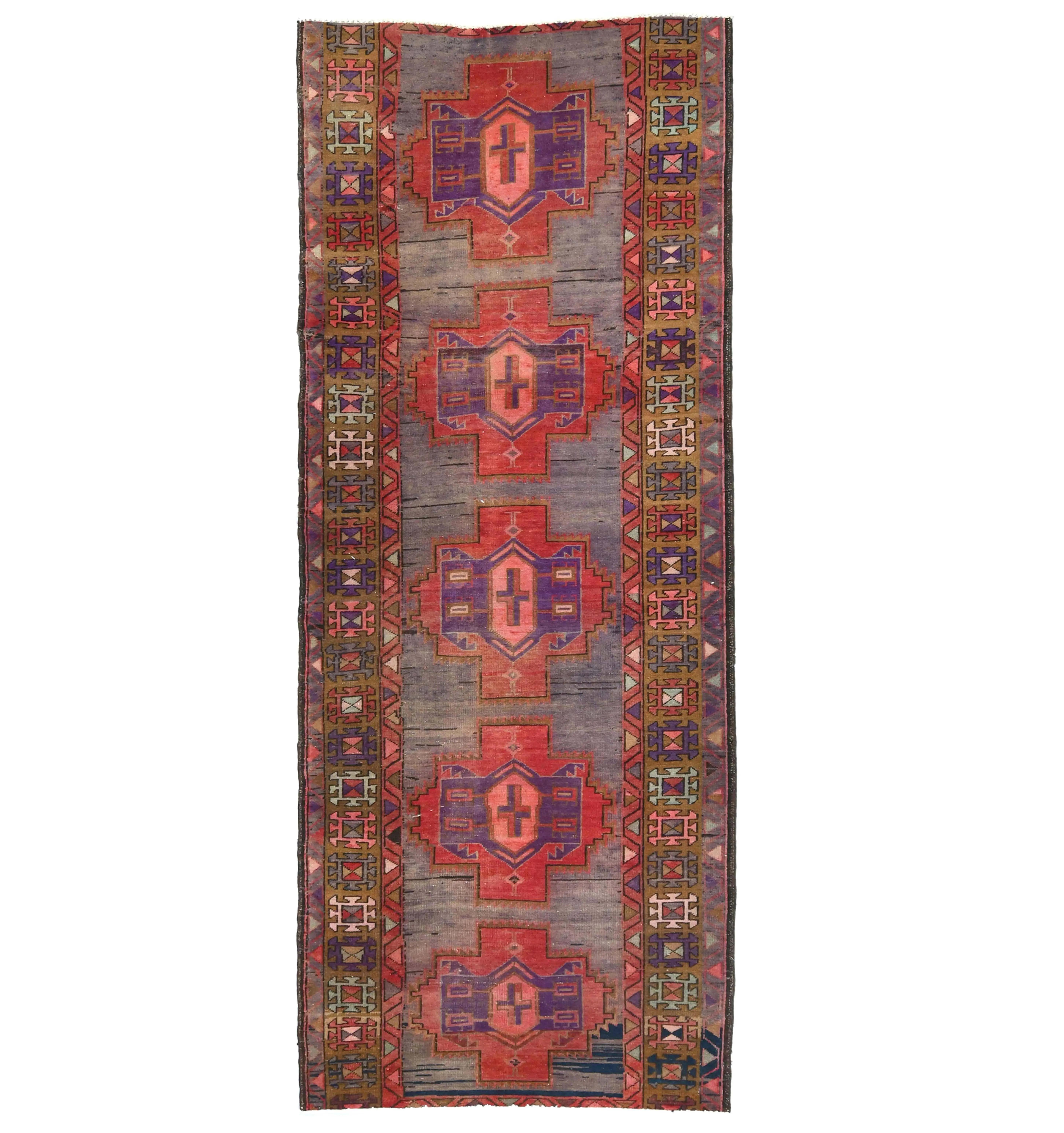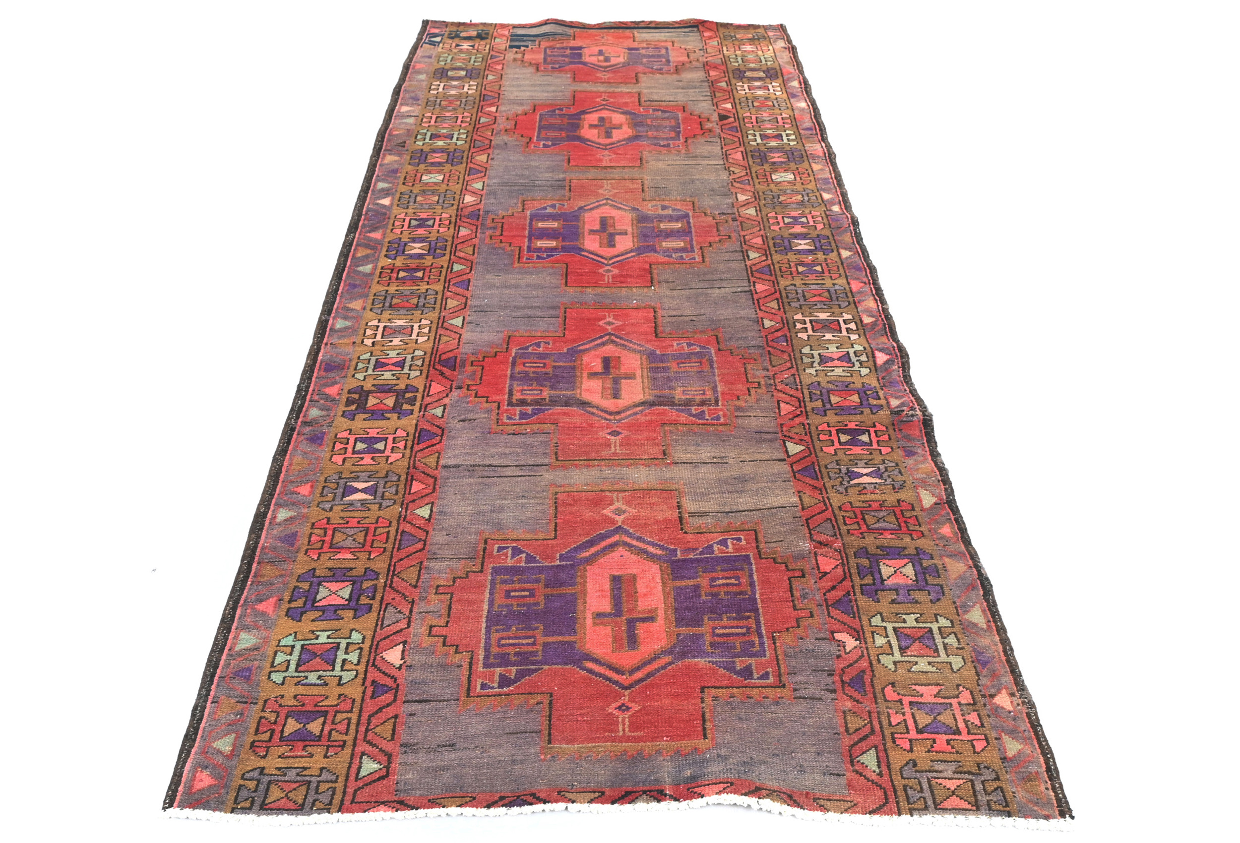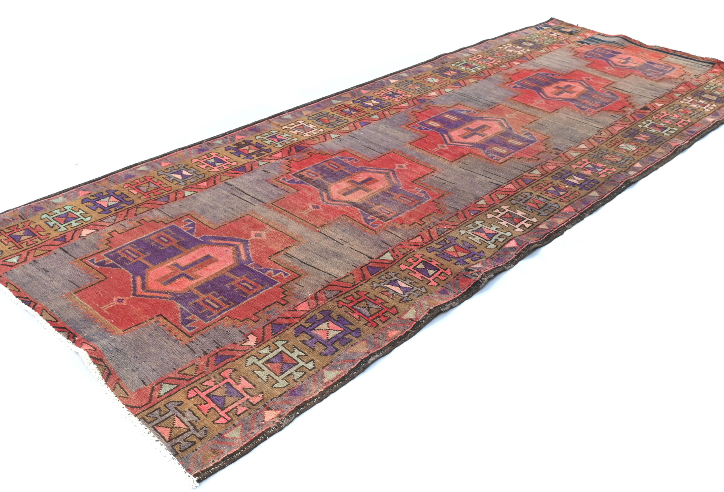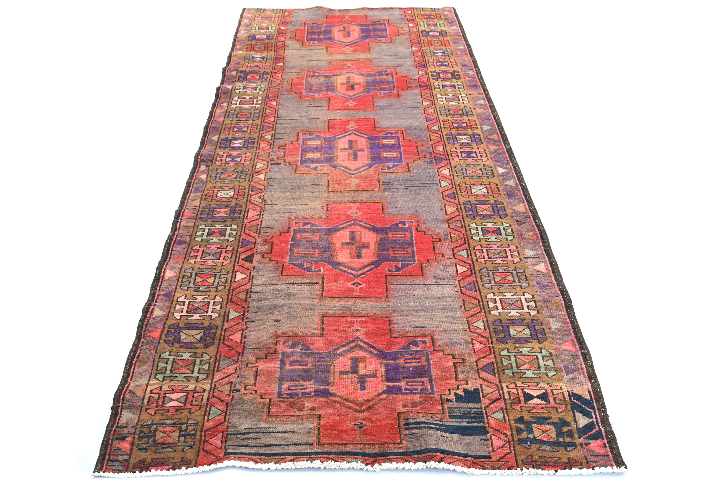 Semi Antique Tribal Geometric 3'6X9 Vintage Oriental Runner Rug