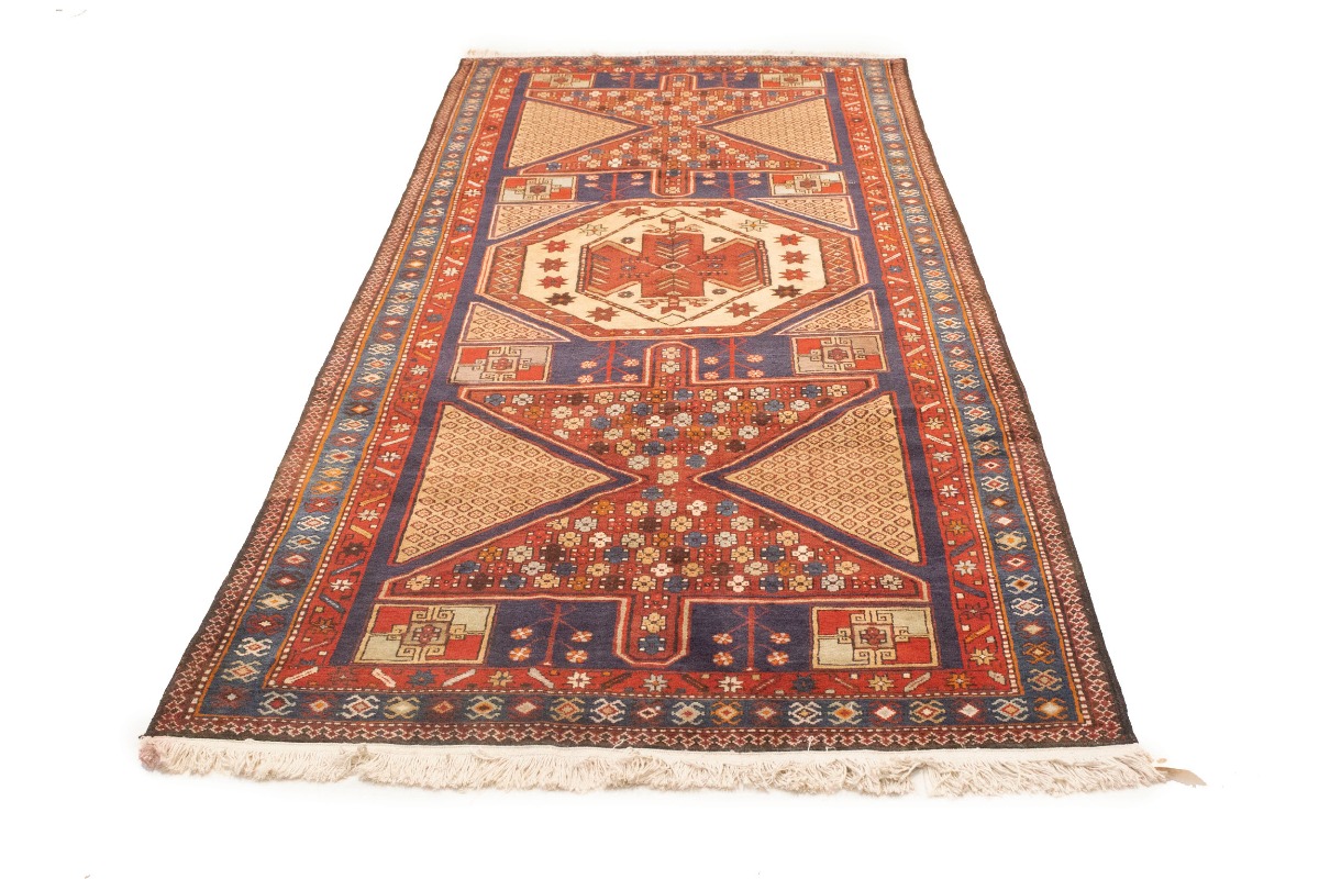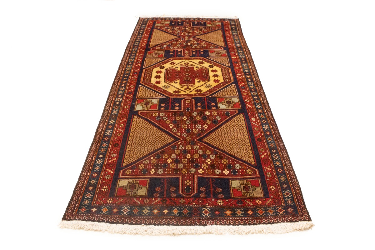 Hand Knotted semi antique 4'5X10'8 red Persian runner made with natural dyes (fine wool pile and cotton foundation), superior knot count, and appealing ancient designs. This Oriental runner never will go out of style and would be among your most valuable treasures.