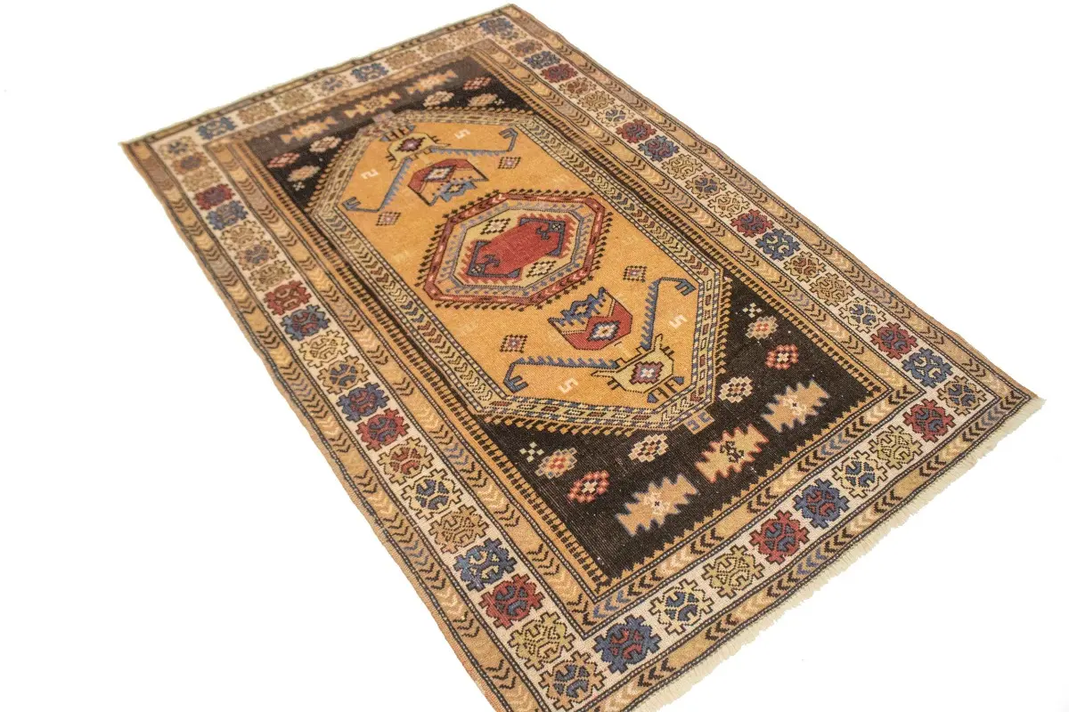 This authentic 4X6 orange vintage Persian rug was masterly knotted by the hands of weavers inspired by a variety of wonderful artistic designs, to recreate the aged look of the original piece with a richness of color and intricate patterned background field. What set this tribal Oriental area rug from the others are the material and dye used (wool pile and cotton foundation), knot count, antique designs, fantastic grades, and its regional historical connection: it has deep roots, from the story of the people who produced it to the meaning of the symbols and colors displayed across its canvas that have been praised for centuries. This home décor carpet will be completely cozy and inviting that never will go out of style! Also, this Oriental rug would be among your most valuable treasures, it is a great investment that accrues value over time, and it will last for generations because was woven with high-quality, all-natural wool; it won’t rip, tear, or shed. Environmentally friendly, opulent yet affordable; this Persian rug will give you a thorough amount of character to help define your living space with luxury and warmth that will capture the eyes and attention of your audience (homeowners, designers, decorators, family and friends). RT-1280