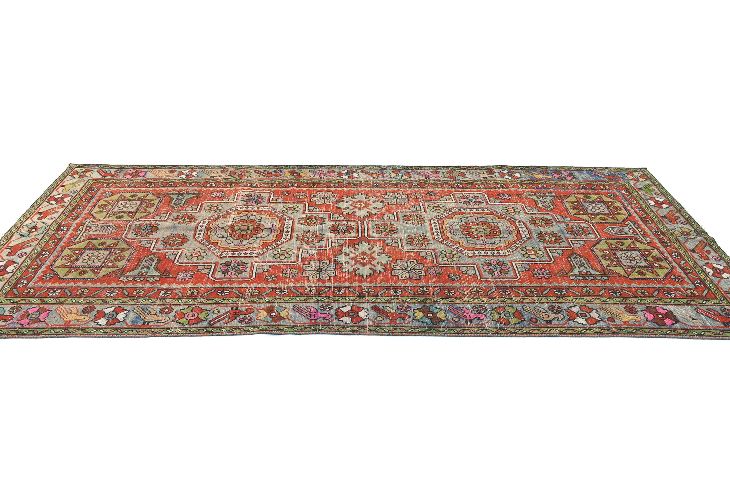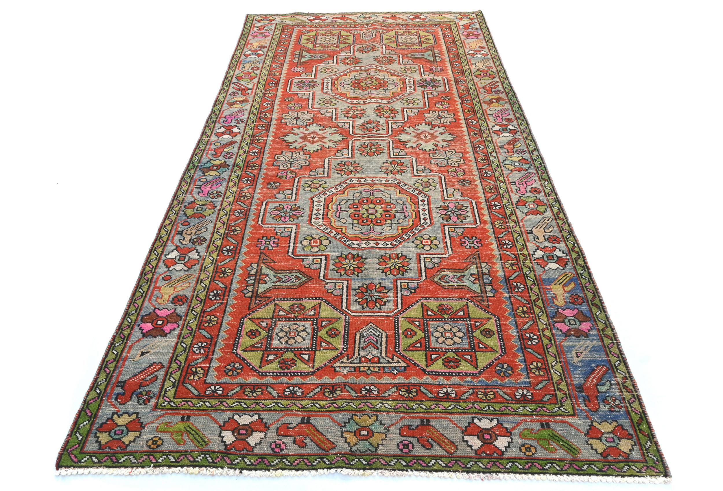 Hand Knotted 4'5X9'4 orange-red oriental runner made with vegetable dyes (fine wool pile and cotton foundation), superior knot count, and appealing ancient designs. This Oriental runner never will go out of style and would be among your most valuable treasures. RT-6506