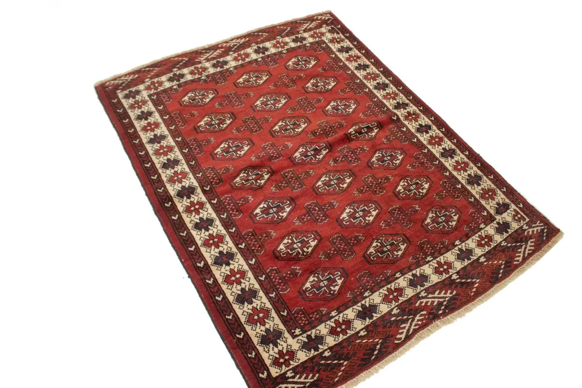 Semi Antique Tribal Red 4X5 Turkoman Persian Rug