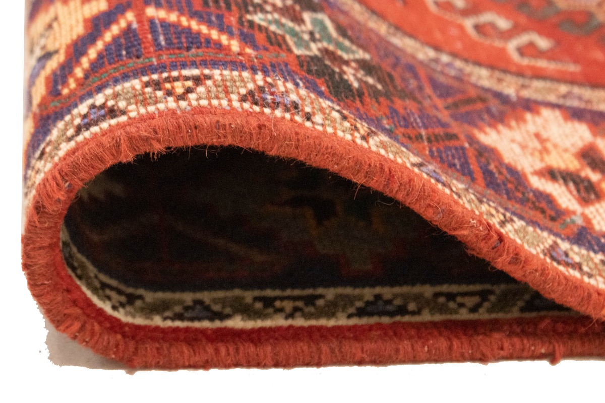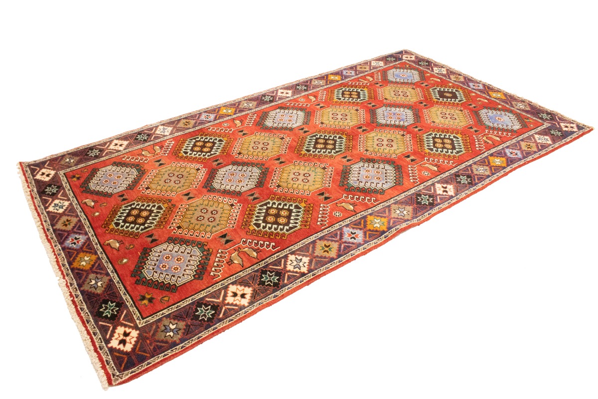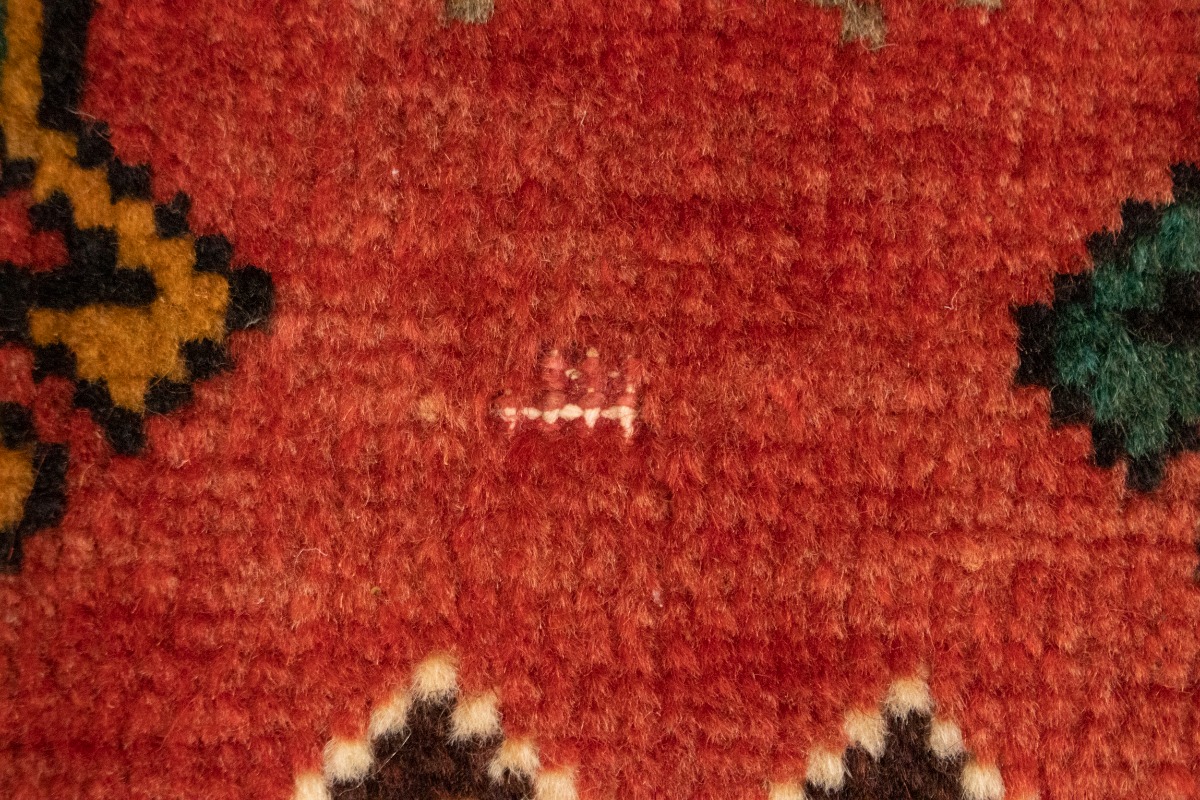 This authentic 5X9 scarlet red vintage Persian runner was masterly knotted by the hands of weavers inspired by a variety of wonderful artistic designs, to recreate the aged look of the original piece with a richness of color and intricate patterned background field. What set this tribal Oriental area runner from the others are the material and dye used (wool pile and cotton foundation), knot count, antique designs, fantastic grades, and its regional historical connection: it has deep roots, from the story of the people who produced it to the meaning of the symbols and colors displayed across its canvas that have been praised for centuries. This home décor carpet will be completely cozy and inviting that never will go out of style! Also, this Oriental runner would be among your most valuable treasures, it is a great investment that accrues value over time, and it will last for generations because was woven with high-quality, all-natural wool; it won’t rip, tear, or shed. Environmentally friendly, opulent yet affordable; this Persian rug will give you a thorough amount of character to help define your living space with luxury and warmth that will capture the eyes and attention of your audience (homeowners, designers, decorators, family and friends). RT-10078