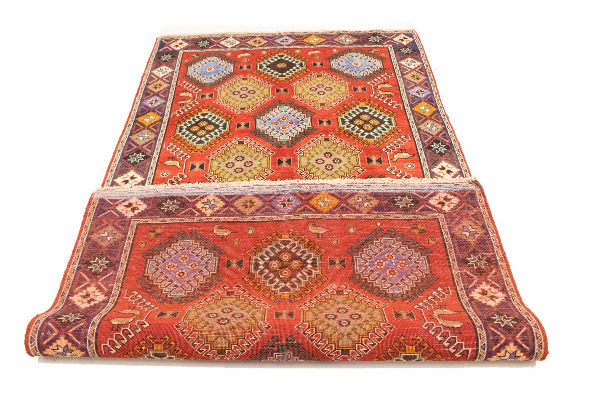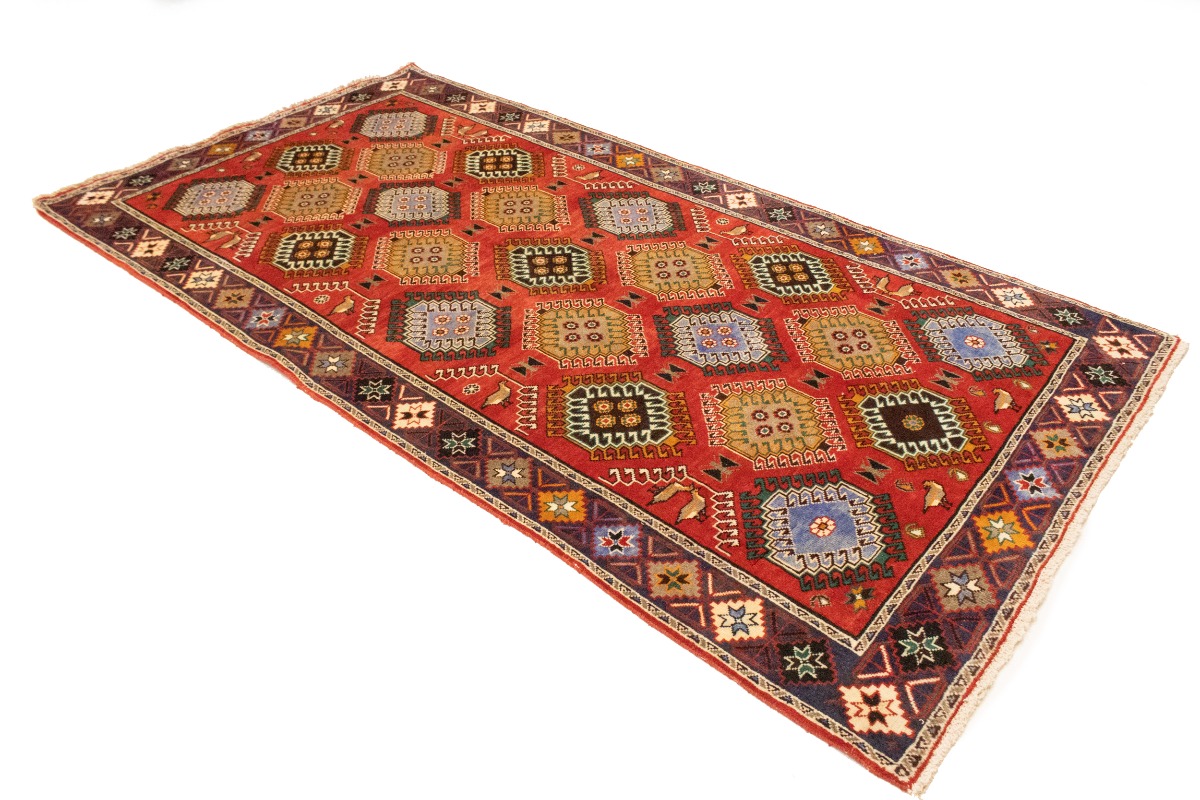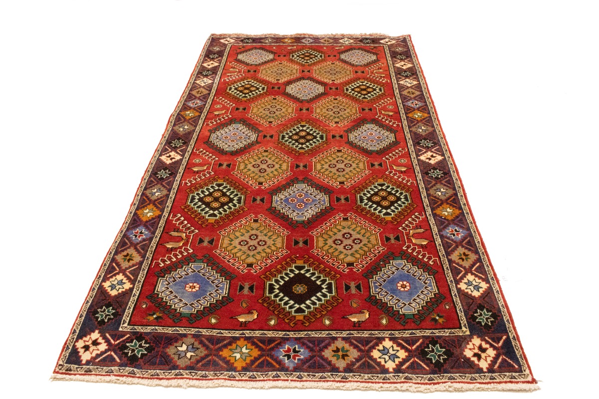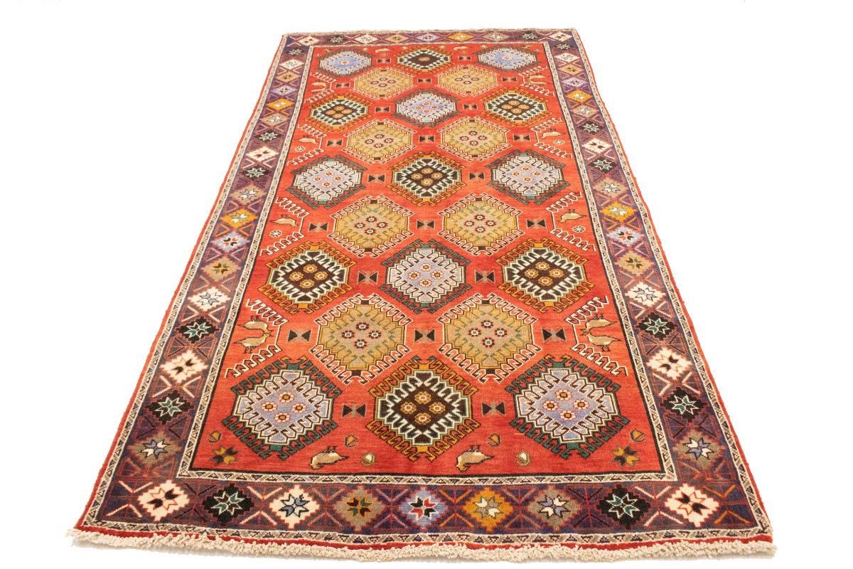 This authentic 5X9 scarlet red vintage Persian runner was masterly knotted by the hands of weavers inspired by a variety of wonderful artistic designs, to recreate the aged look of the original piece with a richness of color and intricate patterned background field. What set this tribal Oriental area runner from the others are the material and dye used (wool pile and cotton foundation), knot count, antique designs, fantastic grades, and its regional historical connection: it has deep roots, from the story of the people who produced it to the meaning of the symbols and colors displayed across its canvas that have been praised for centuries. This home décor carpet will be completely cozy and inviting that never will go out of style! Also, this Oriental runner would be among your most valuable treasures, it is a great investment that accrues value over time, and it will last for generations because was woven with high-quality, all-natural wool; it won’t rip, tear, or shed. Environmentally friendly, opulent yet affordable; this Persian rug will give you a thorough amount of character to help define your living space with luxury and warmth that will capture the eyes and attention of your audience (homeowners, designers, decorators, family and friends). RT-10078