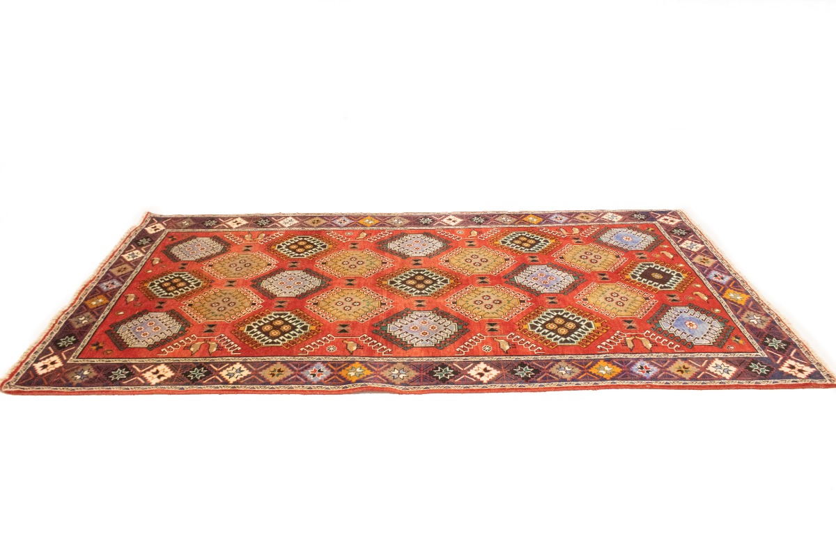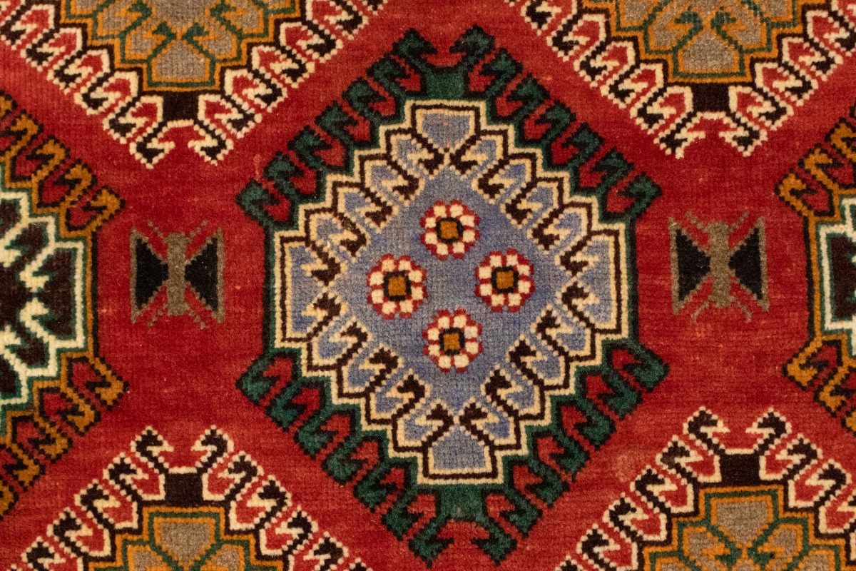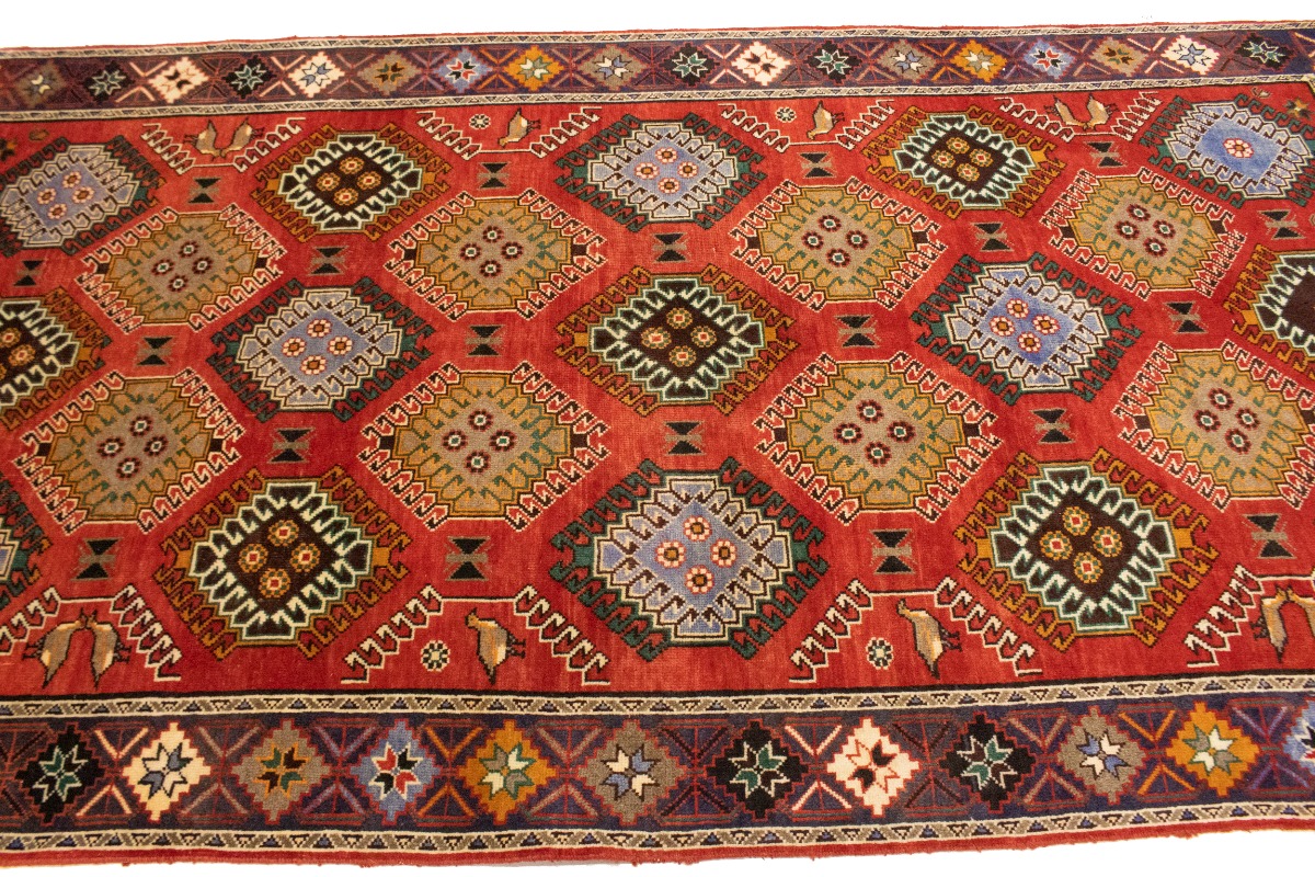 Hand Knotted semi antique 5X9 scarlet red Persian runner made with natural dyes (fine wool pile and cotton foundation), superior knot count, and appealing ancient designs. This Oriental runner never will go out of style and would be among your most valuable treasures.