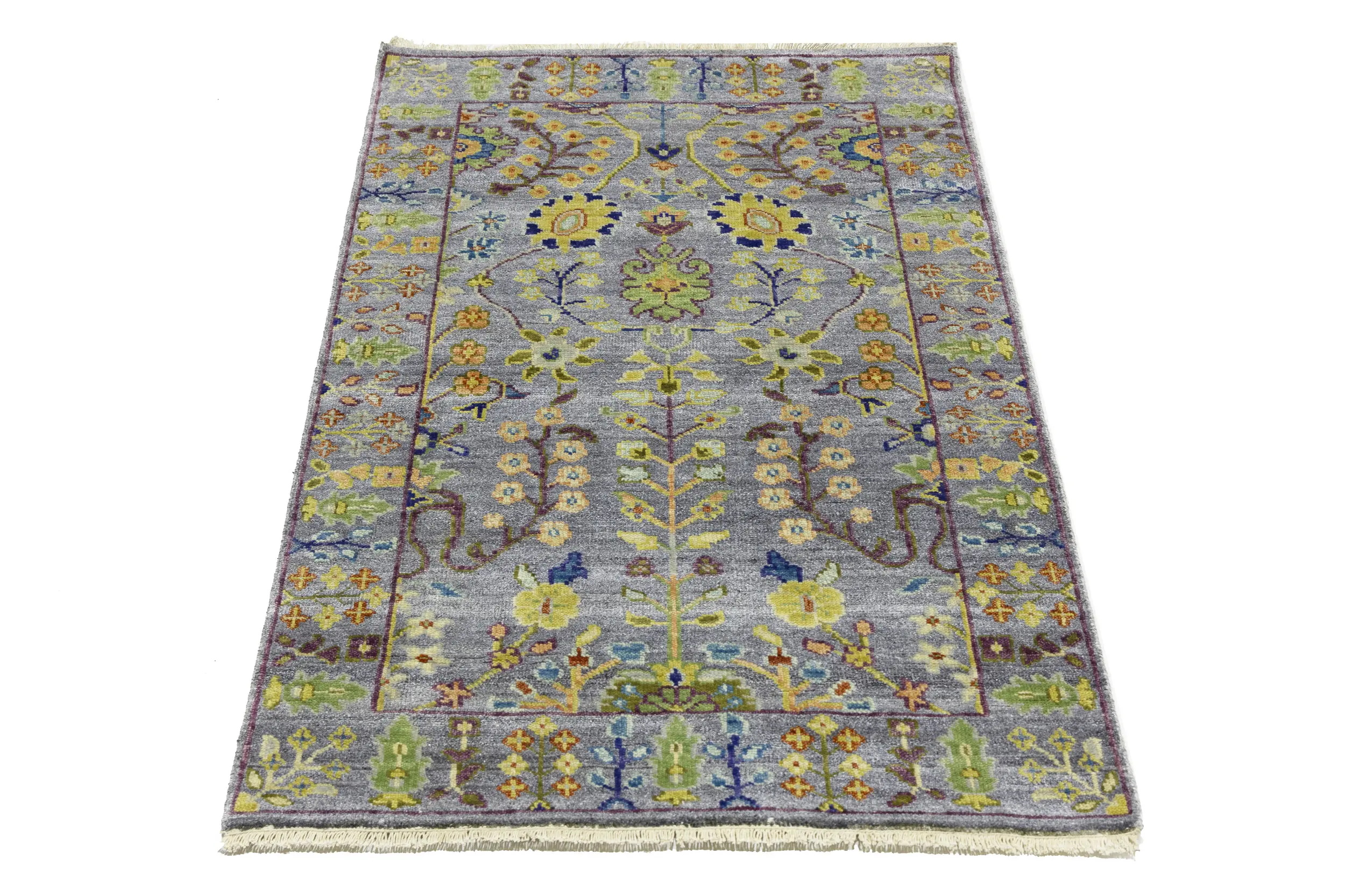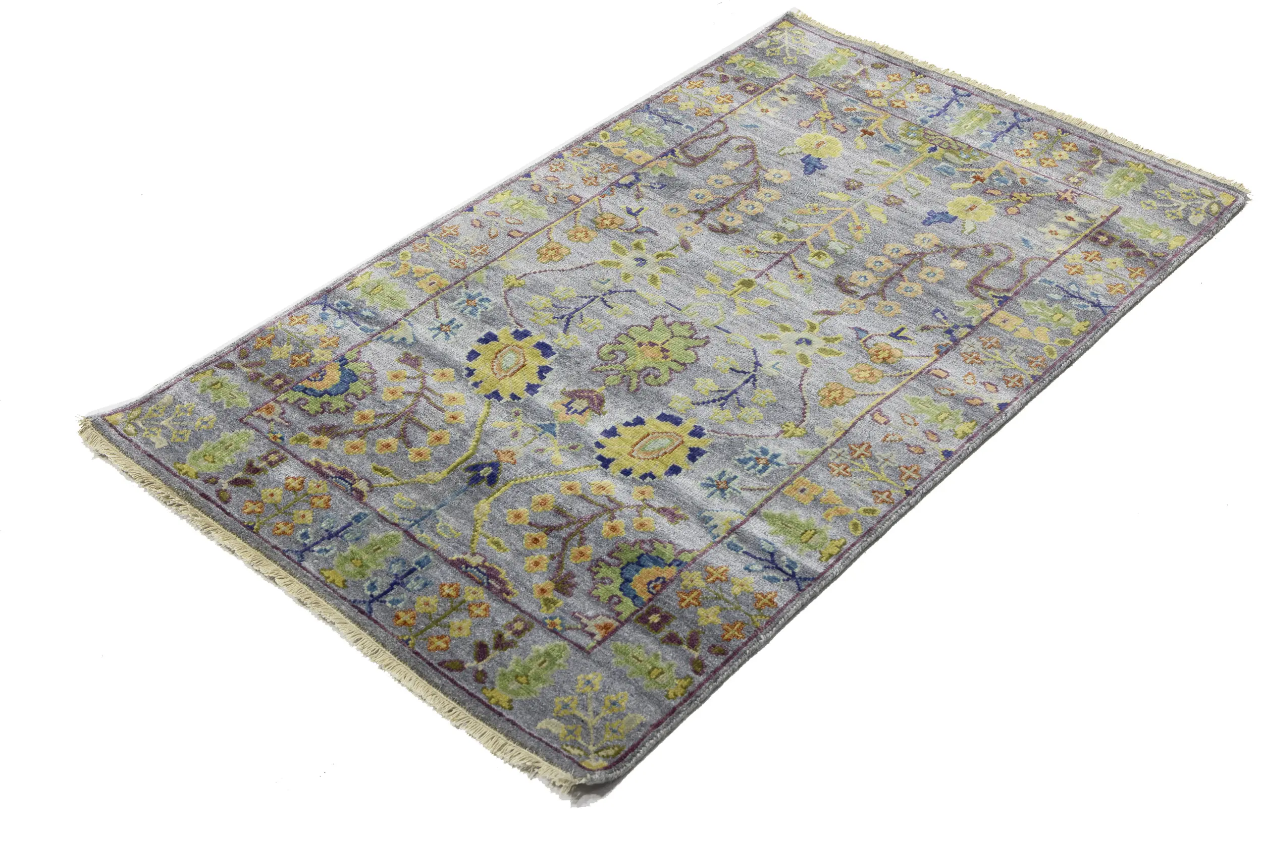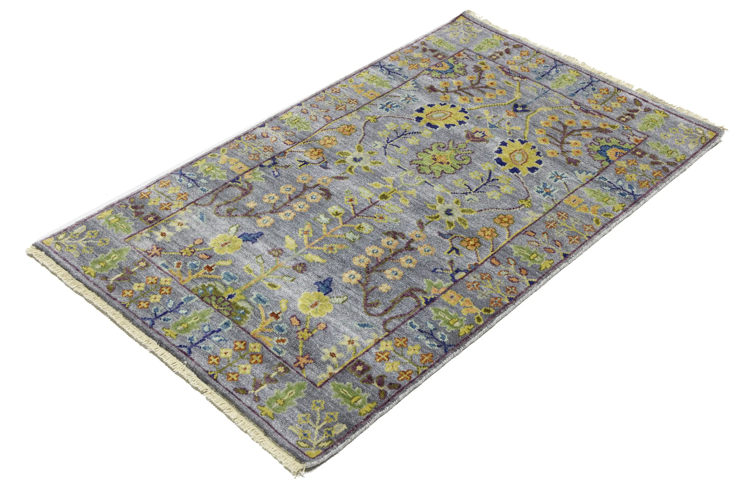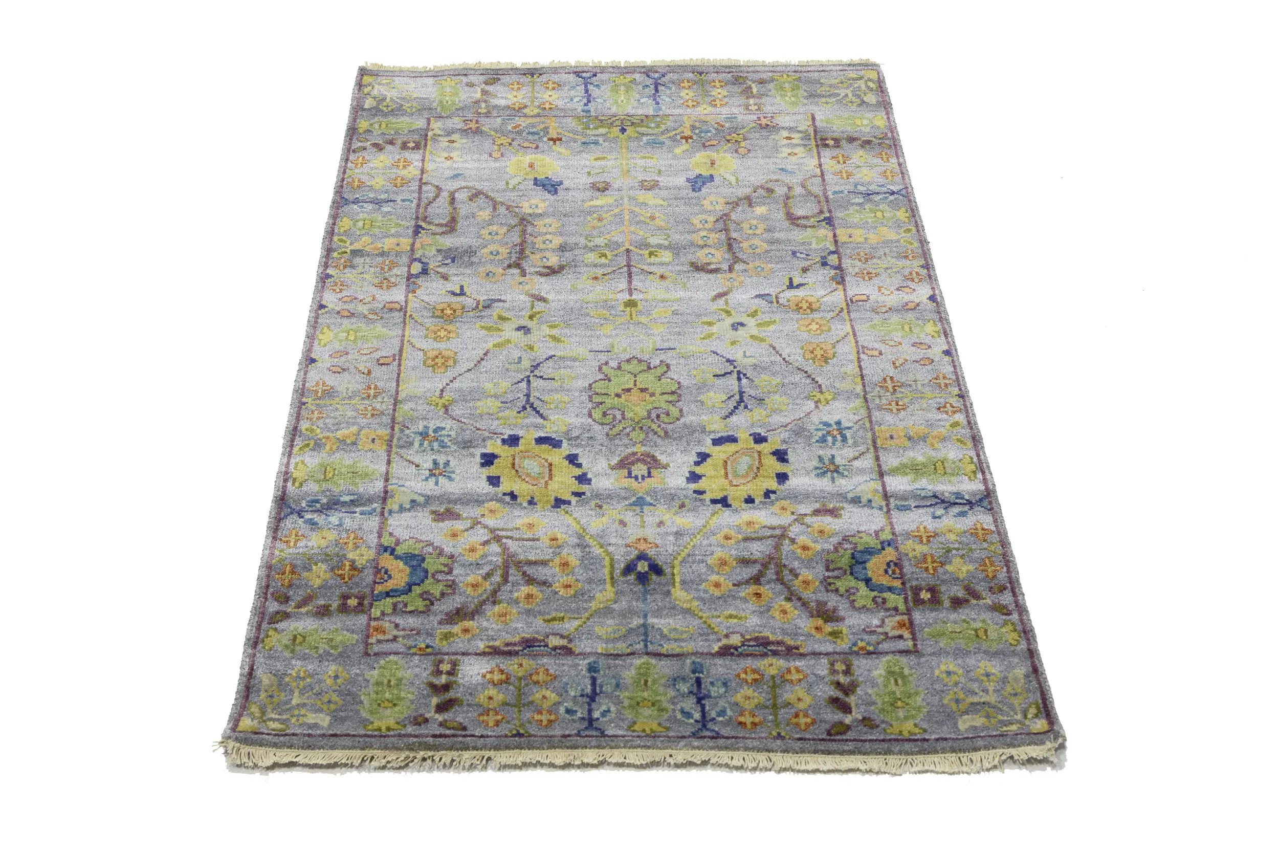 Silver Floral Traditional 3X5 Oushak Chobi Oriental Rug