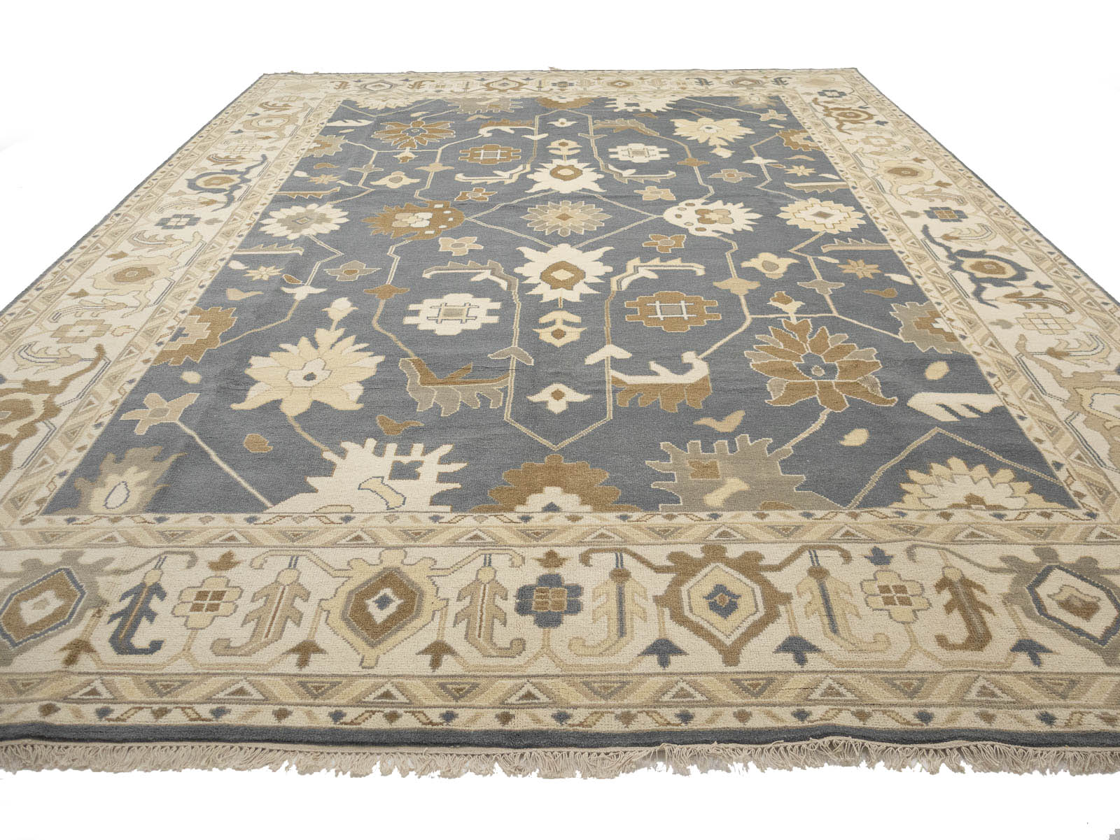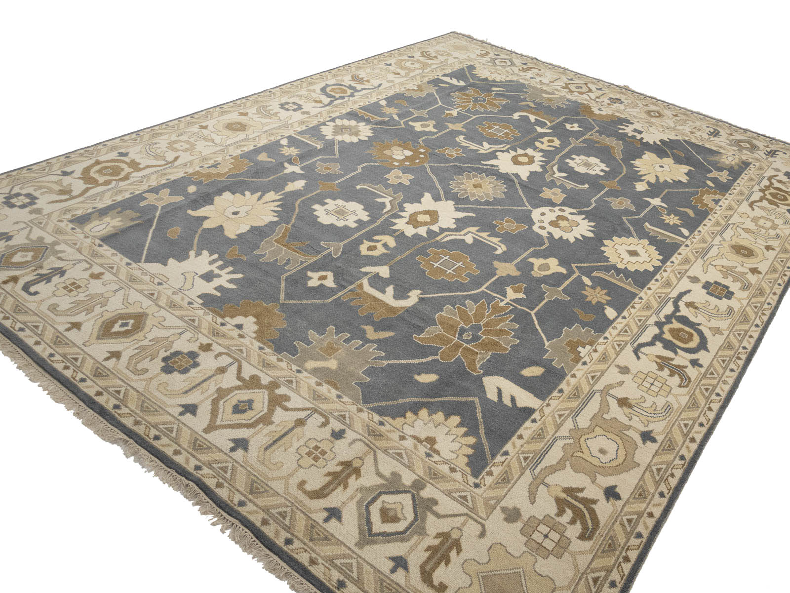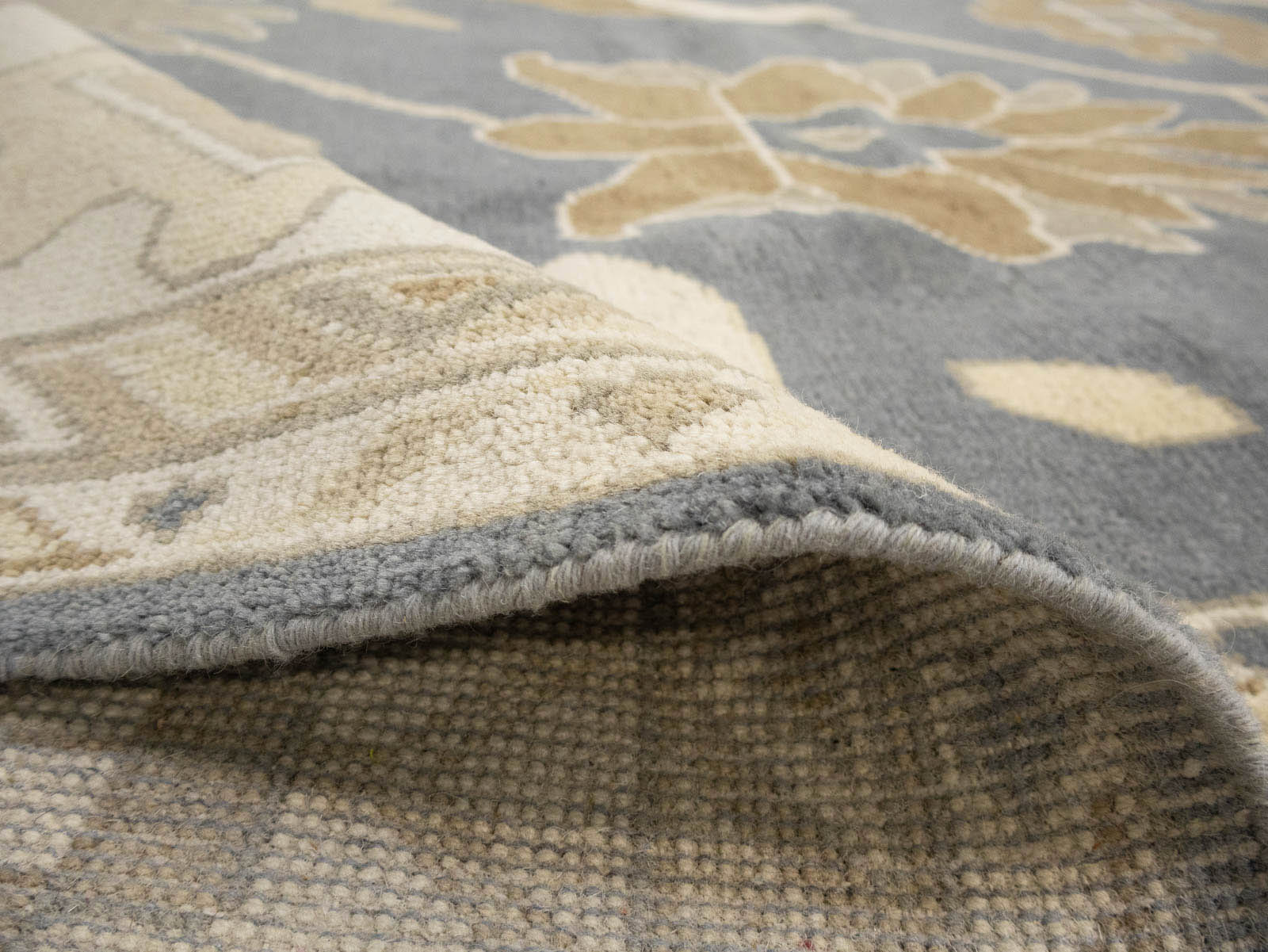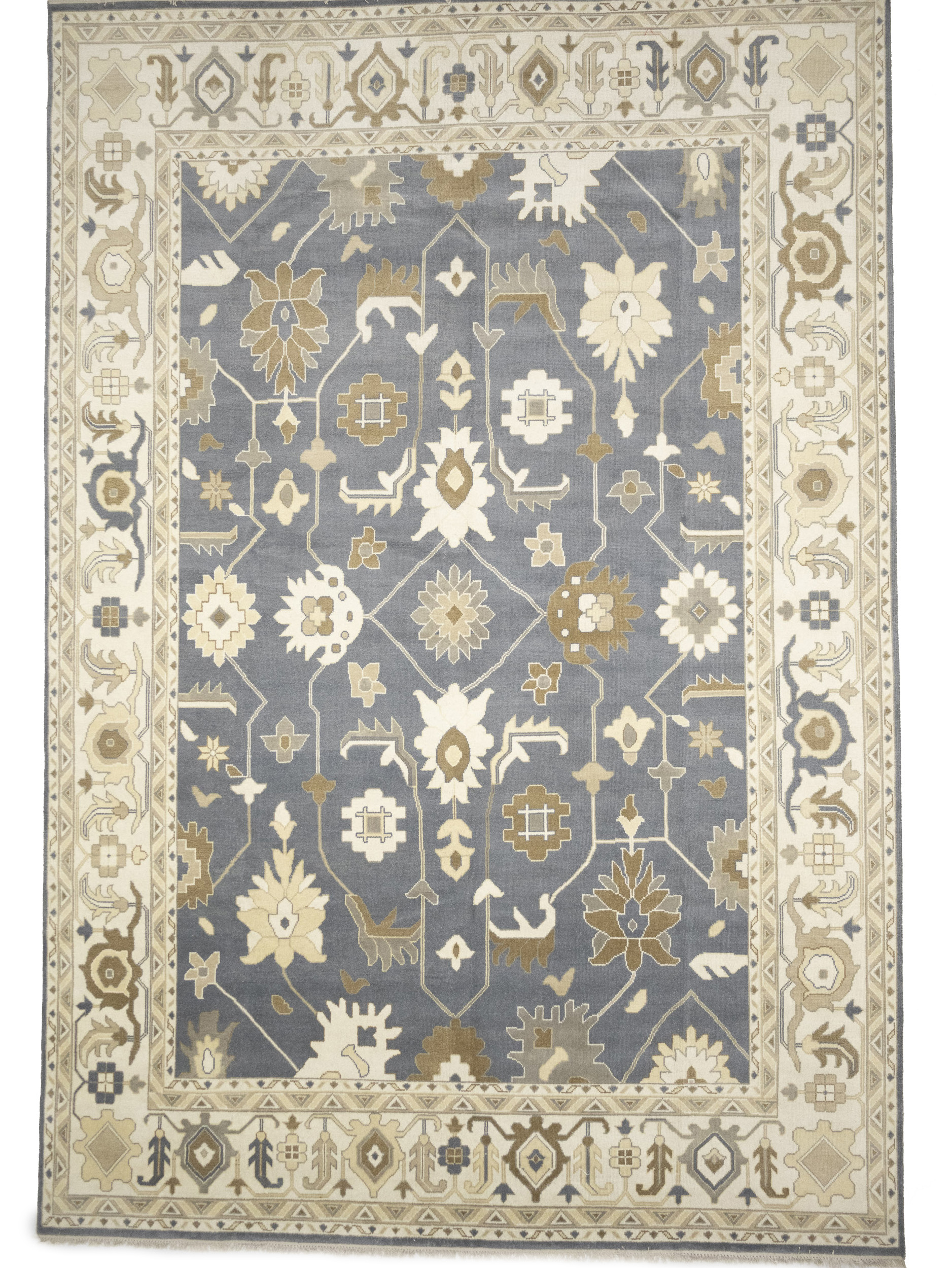 Slate Blue Floral Traditional 12x18 Oushak Oriental Rug