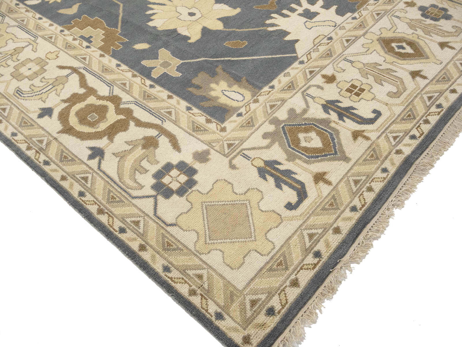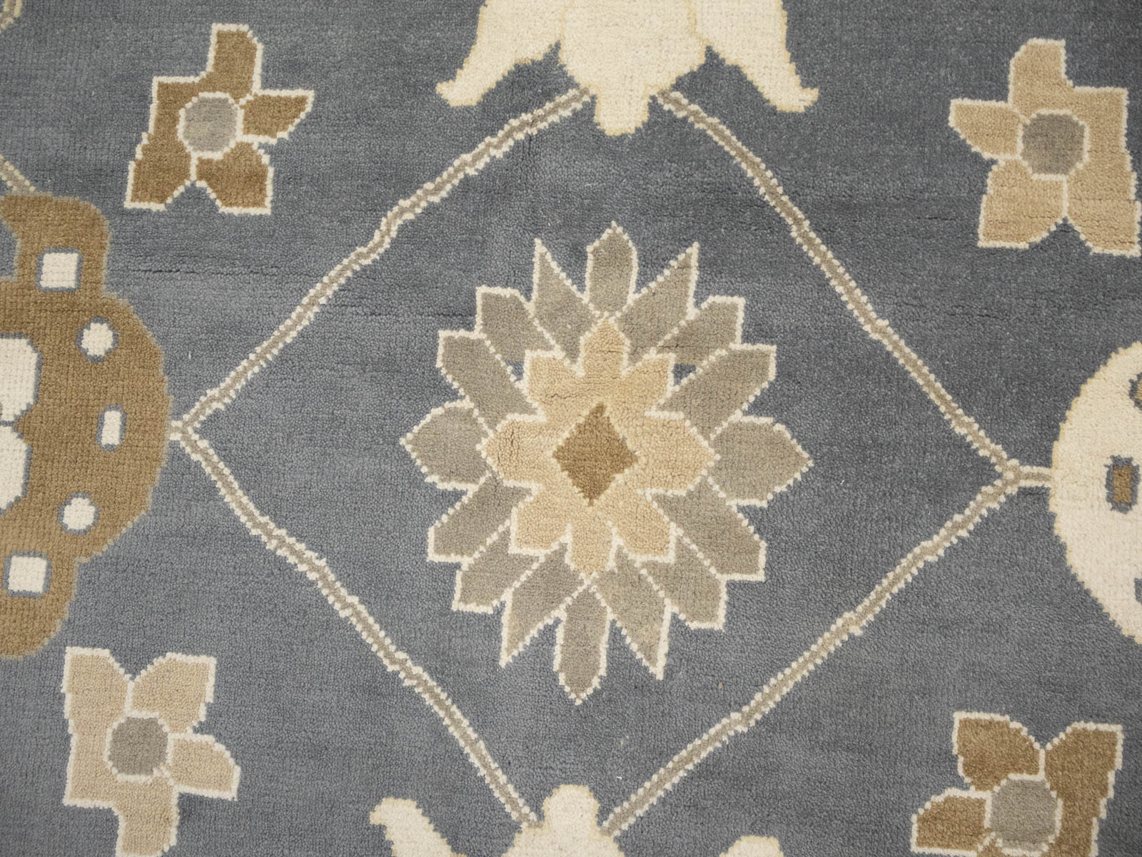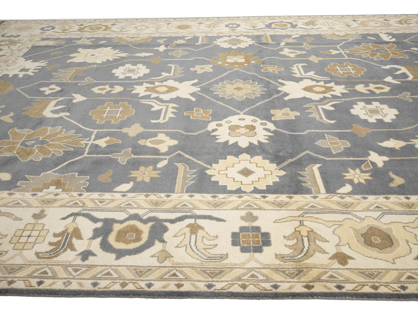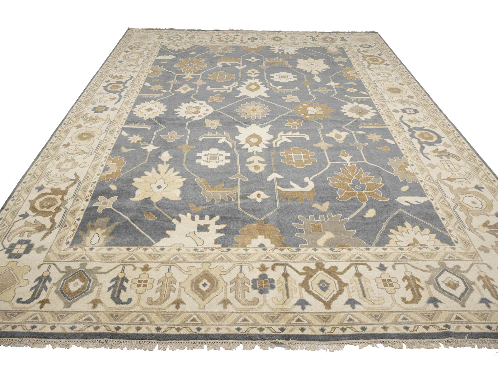 Slate Blue Floral Traditional 12x18 Oushak Oriental Rug