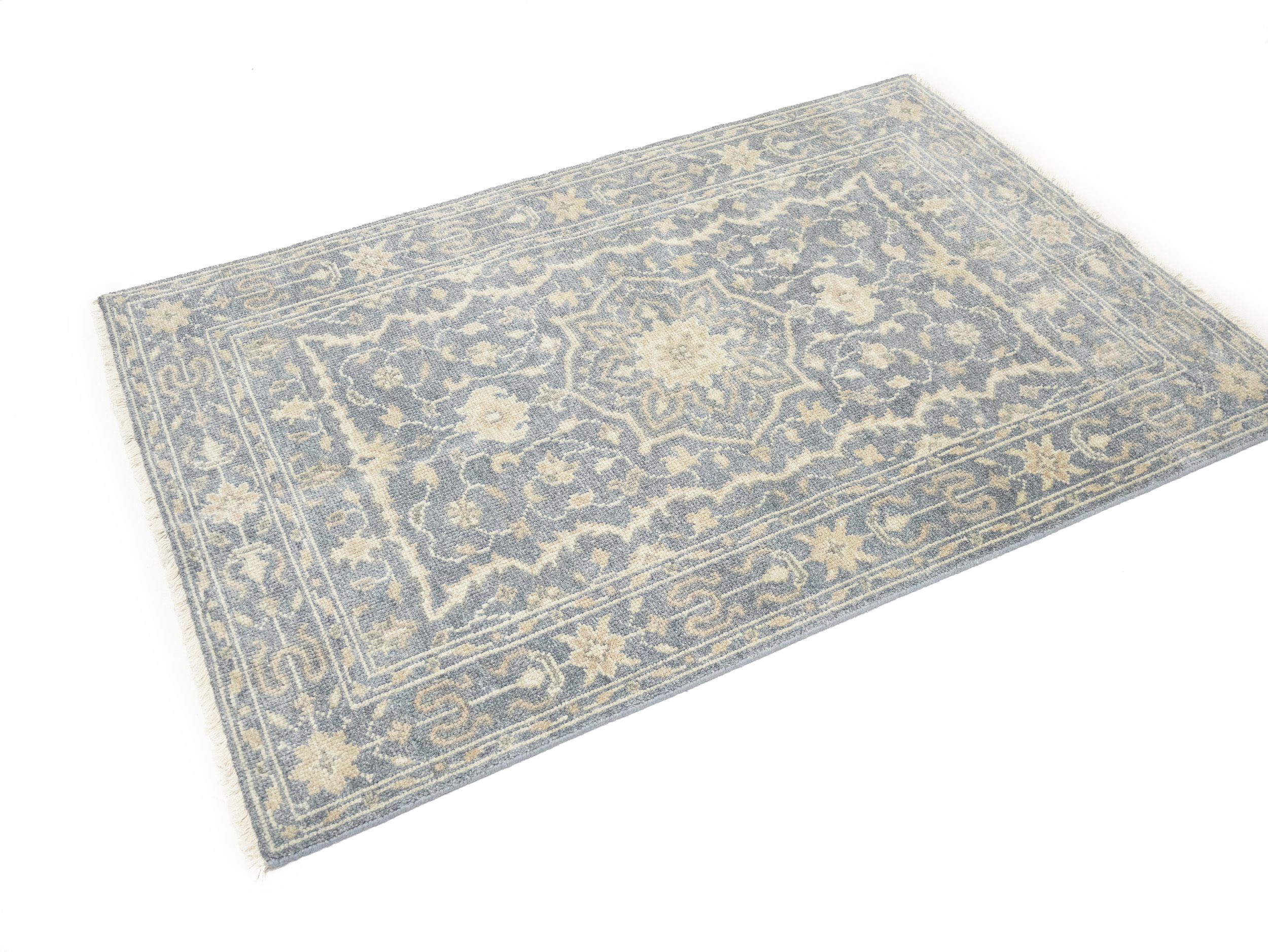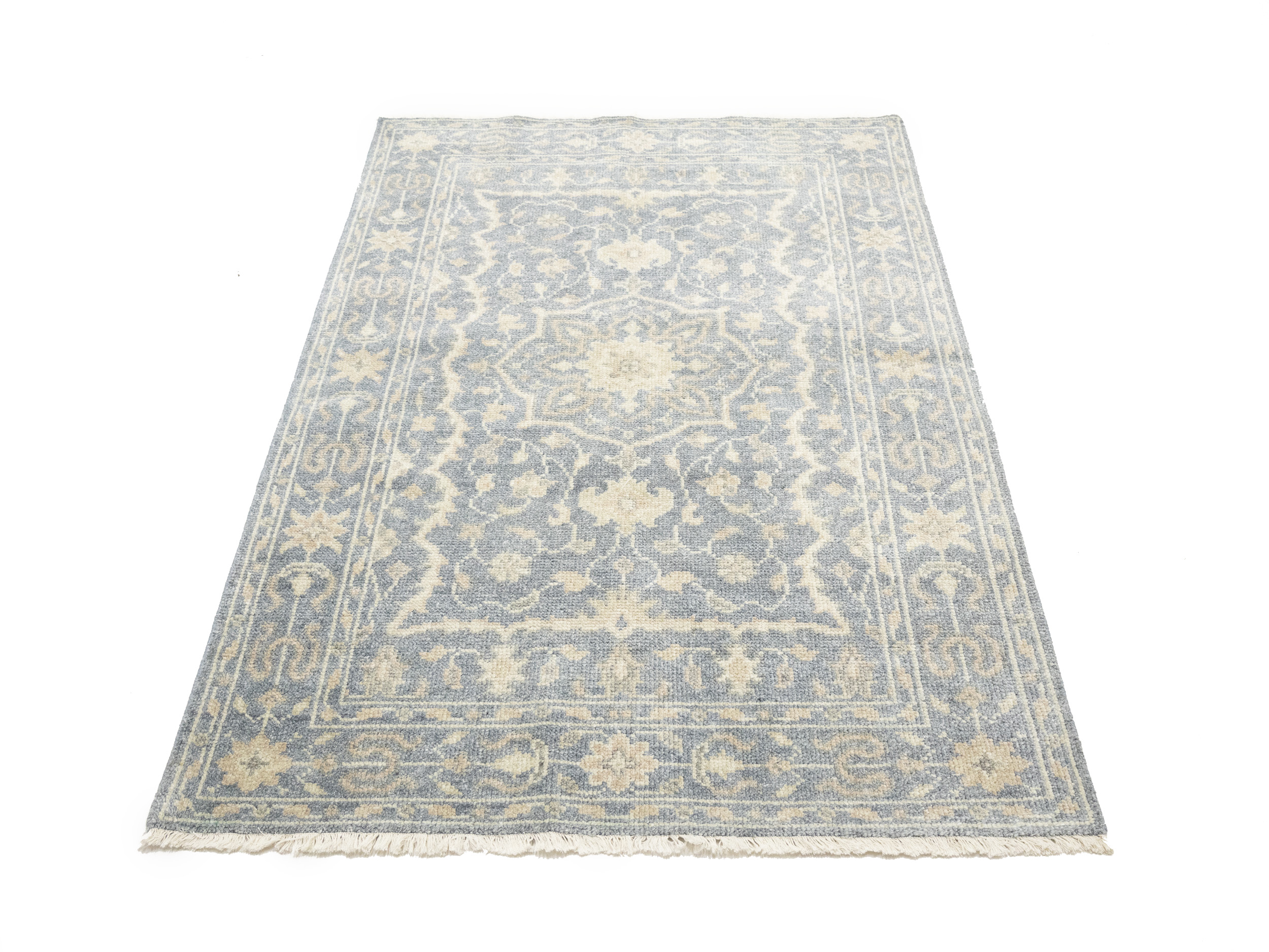 This genuine 4X6 slate new Oriental rug was made by the hands of gifted weavers inspired by a variety of spectacular artistic designs, to recreate the aged look of the original piece with a richness of color and ornately patterned background field. What set this vintage style Oriental area rug from the others are the material and dye used (wool pile and cotton foundation), knot count, ancient designs, fantastic grades, and its regional historical connection: it has deep roots, from the story of the people who produced it to the meaning of the symbols and colors displayed across its canvas that have been praised for centuries. This Indian home décor carpet will be completely cozy and inviting that never will go out of style! Also, this Oriental rug would be among your most valuable treasures, it is a great investment that accrues value over time, and it will last for generations because was woven with high-quality, all-natural wool. Environmentally friendly, opulent yet affordable; this rug will give you a thorough amount of character to help define your living space with elegance and warmth that will capture the eyes and attention of your audience (homeowners, designers, decorators, family and friends). OT-5024
