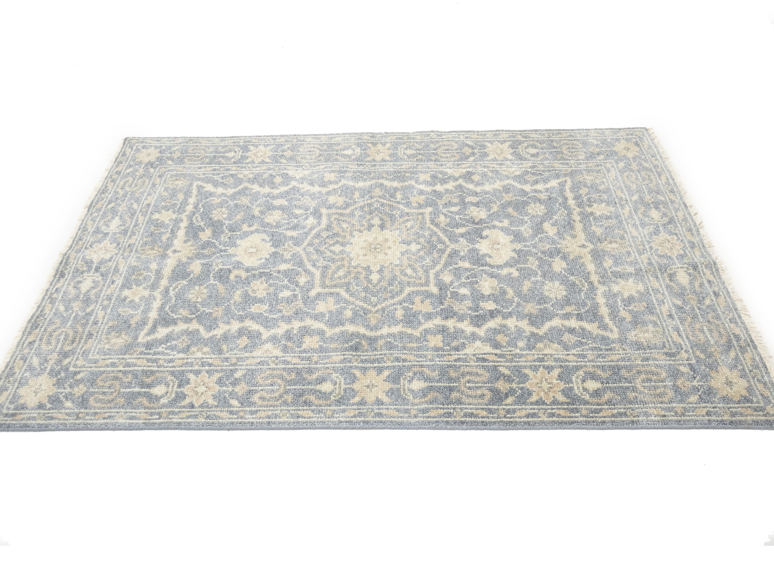 Handmade 4X6 slate oriental rug made with natural dyes (fine wool pile and cotton foundation), superior knot count, and appealing ancient designs. This Oriental rug never will go out of style and would be among your most valuable treasures.