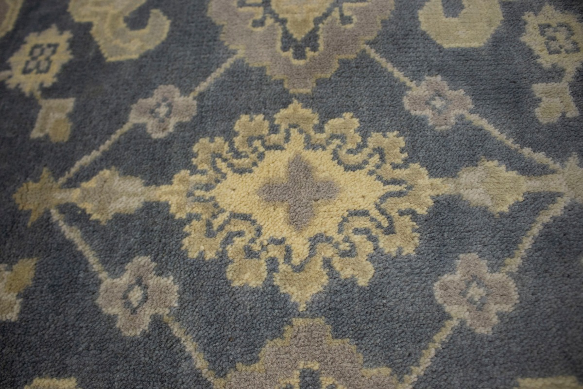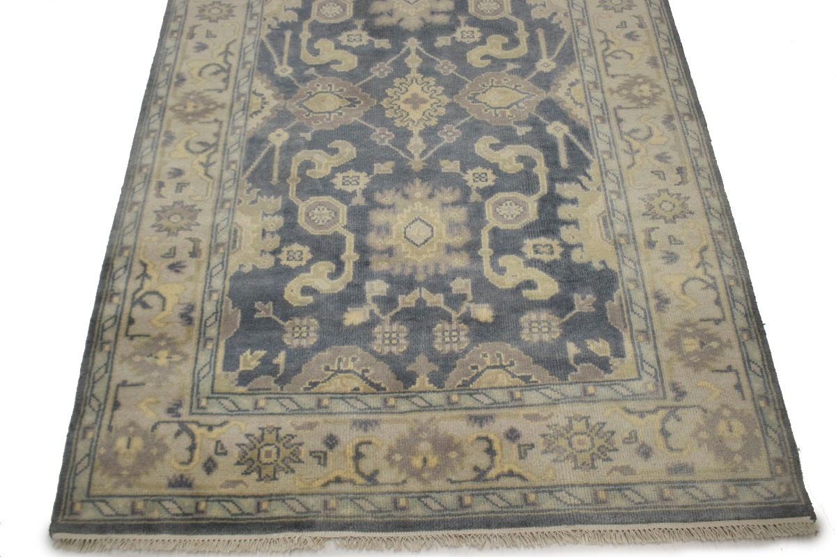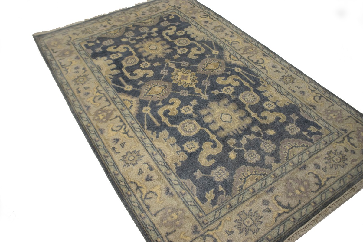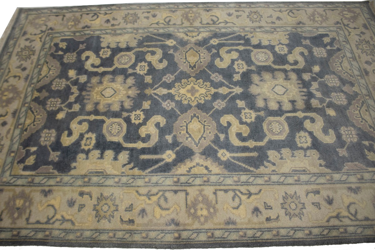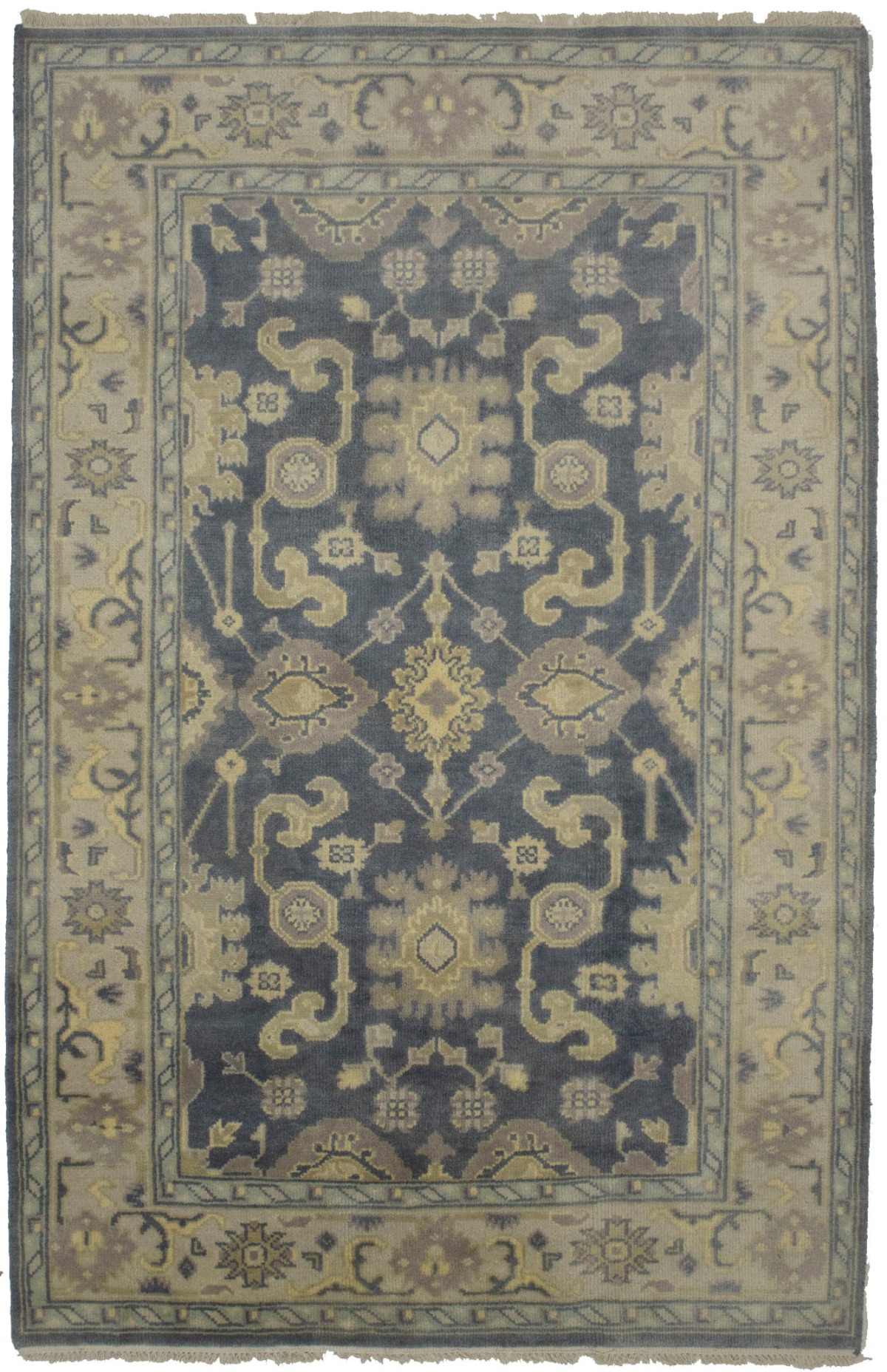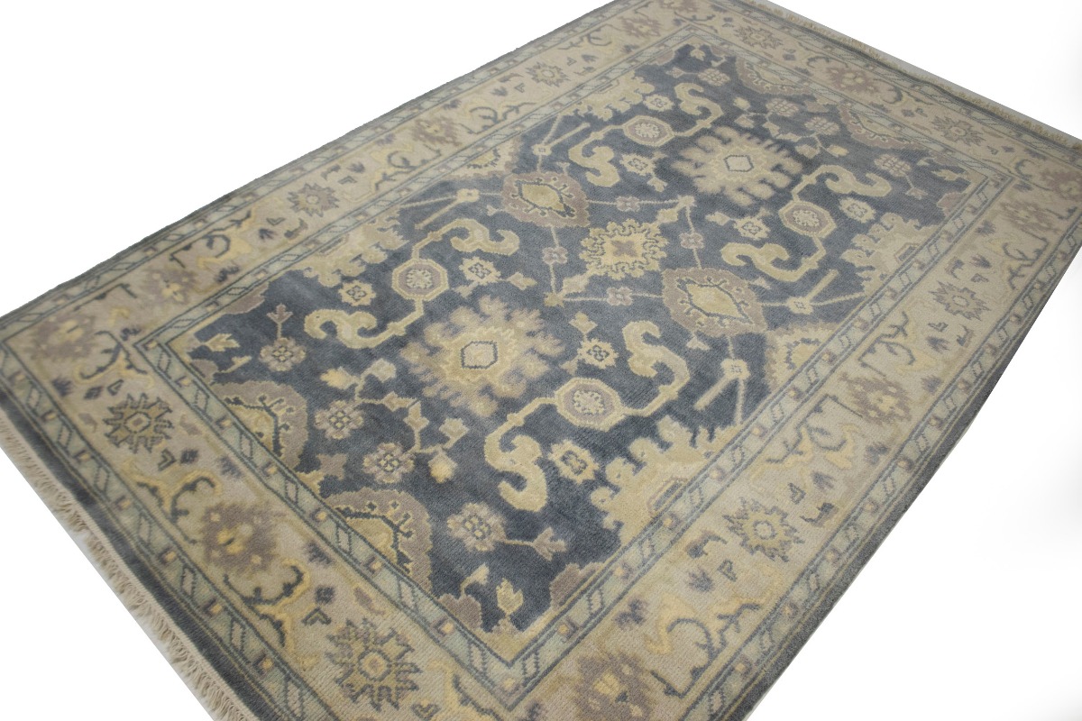 Slate Gray Geometric 5X8 Oushak Chobi Oriental Rug