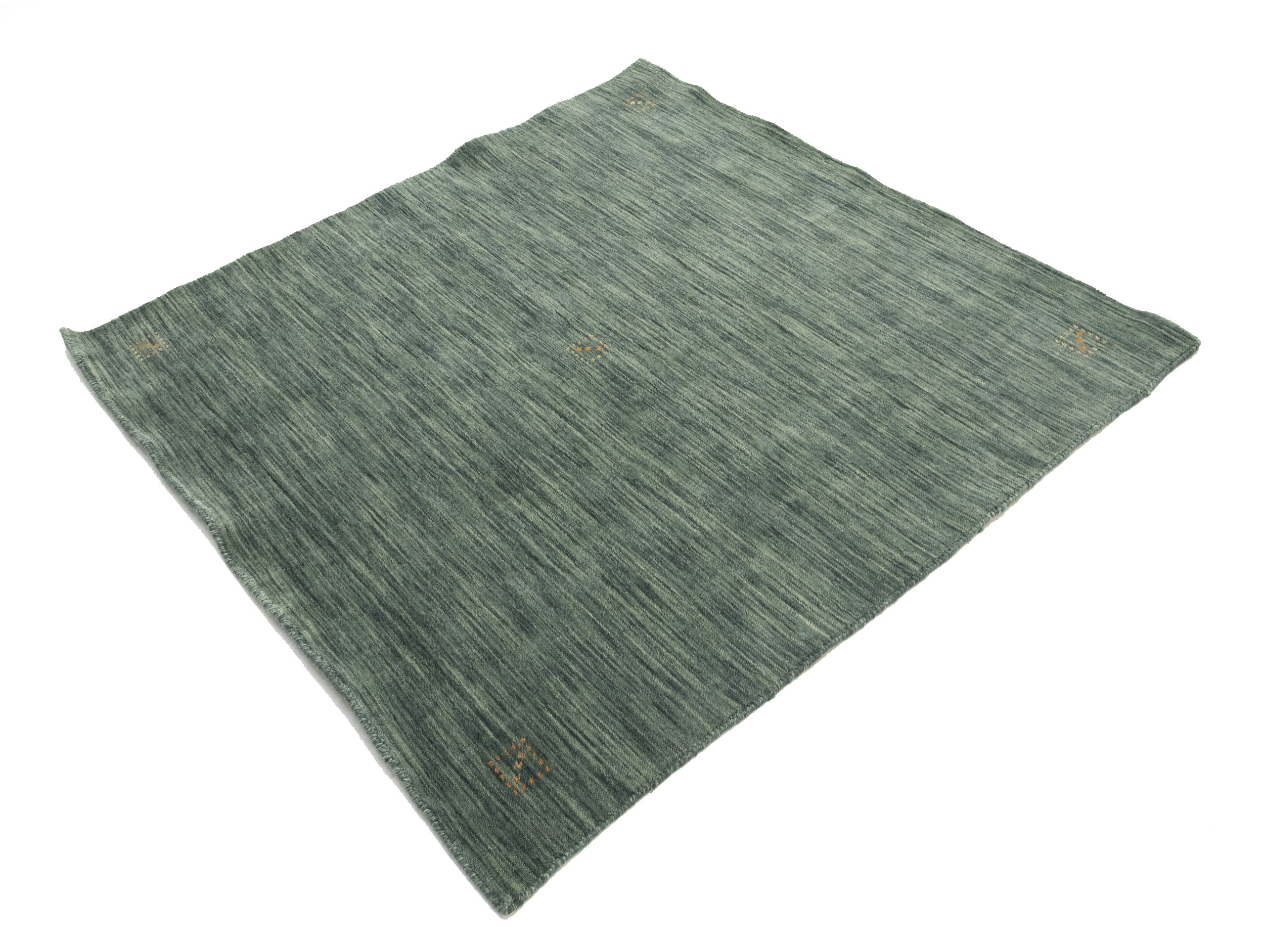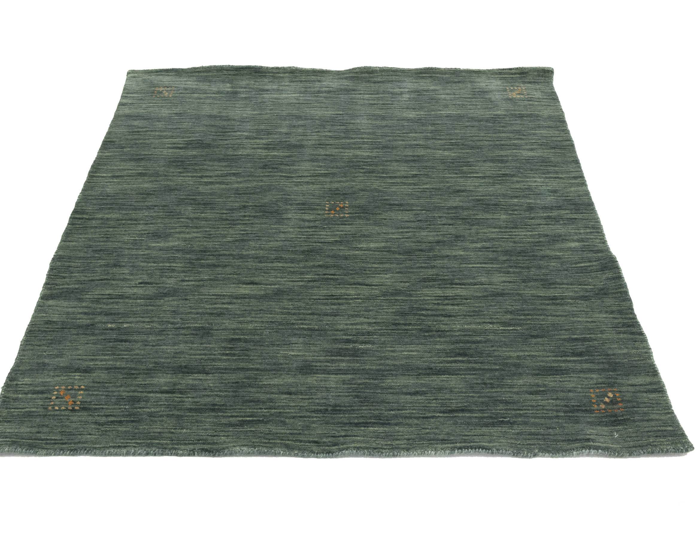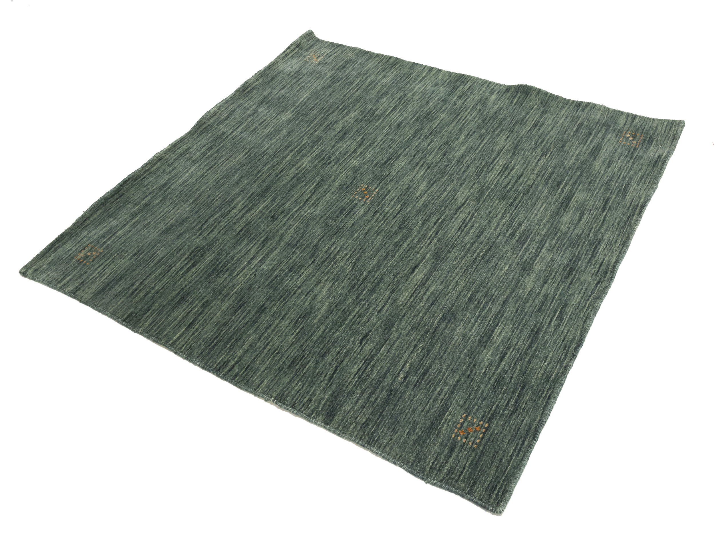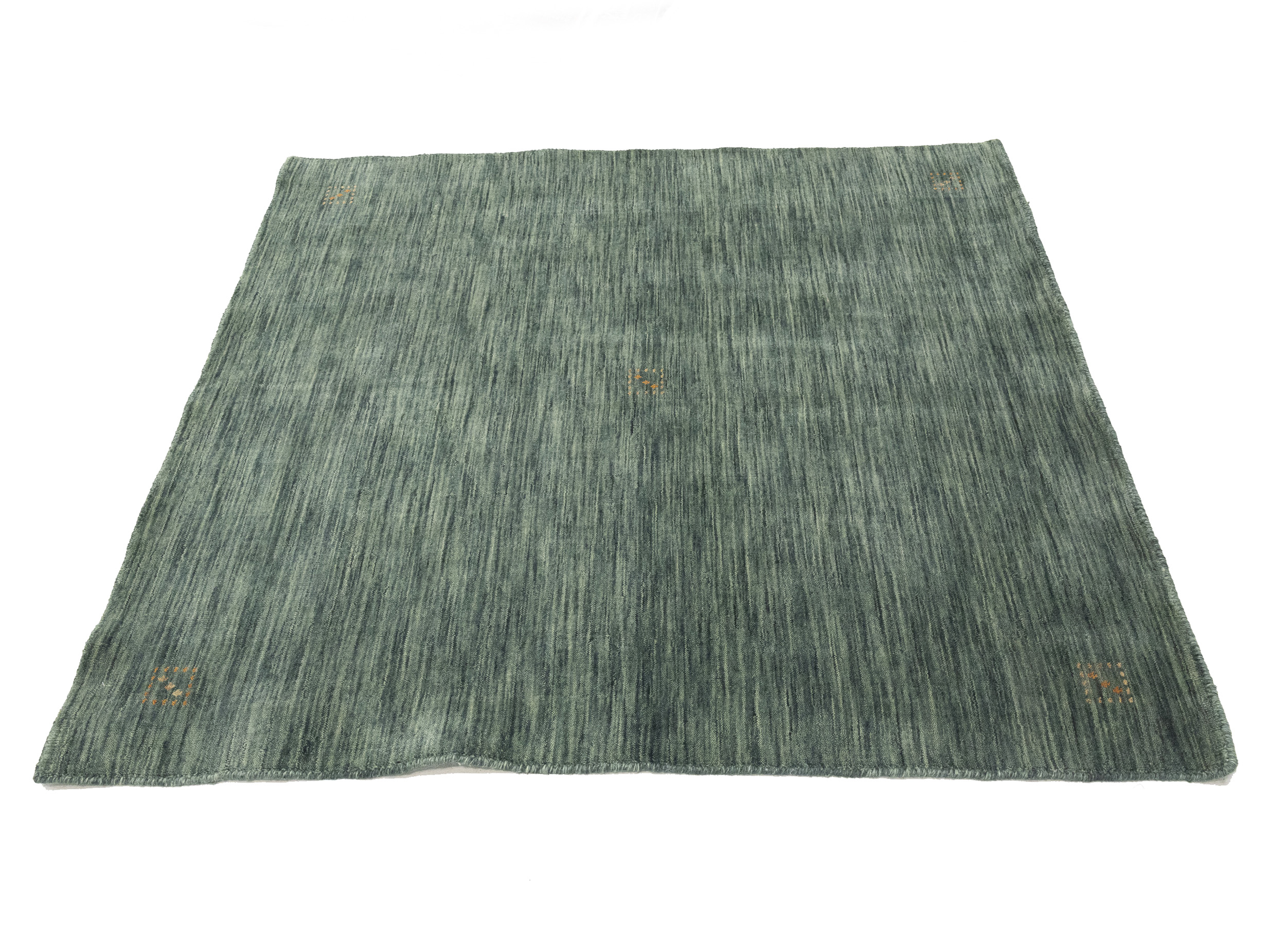 Hand-loomed 5X5 solid green Oriental rug made with vegetable dyes (fine wool pile and cotton foundation), superior knot count, and appealing ancient designs. This Oriental rug never will go out of style and would be among your most valuable treasures.