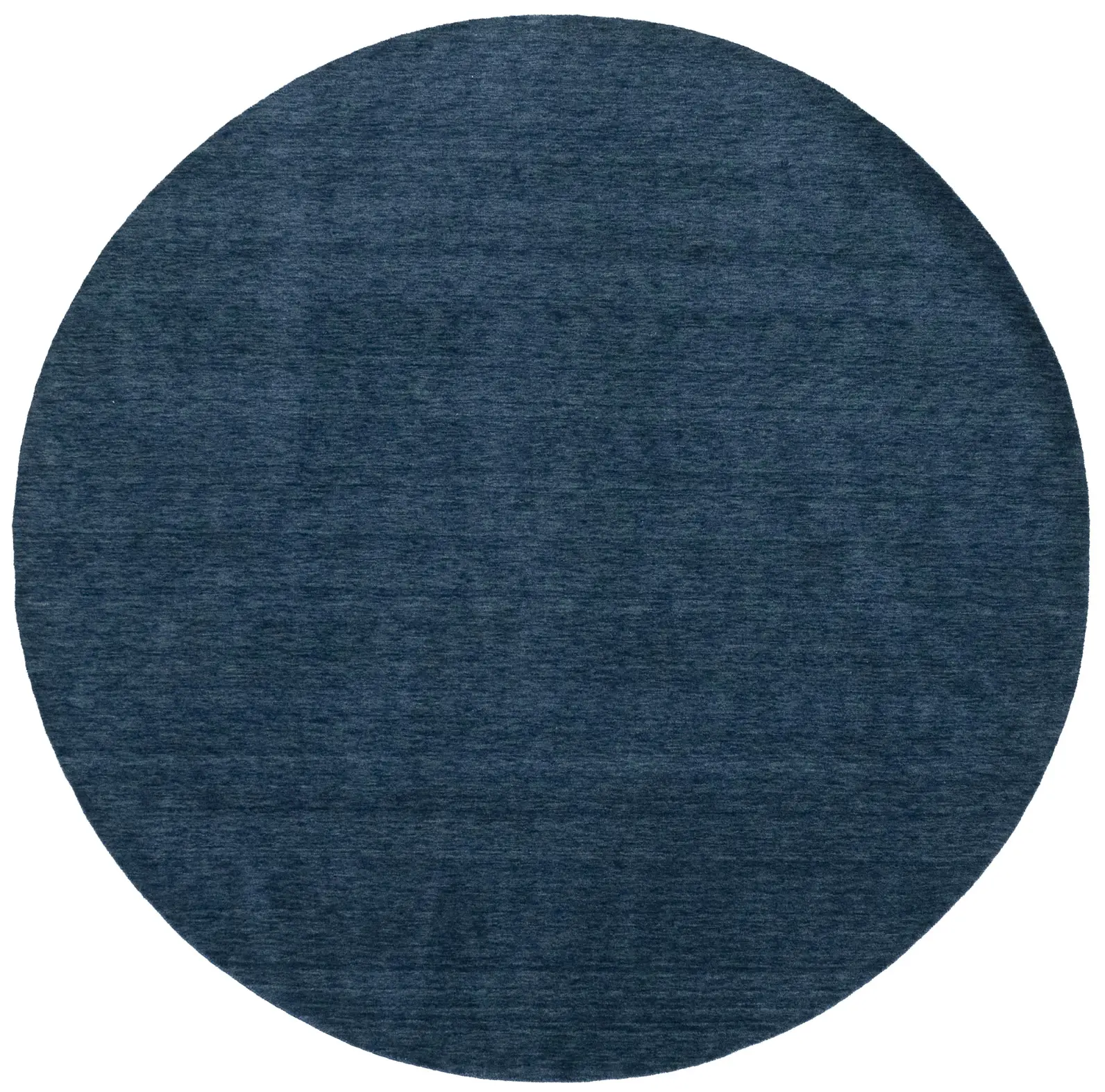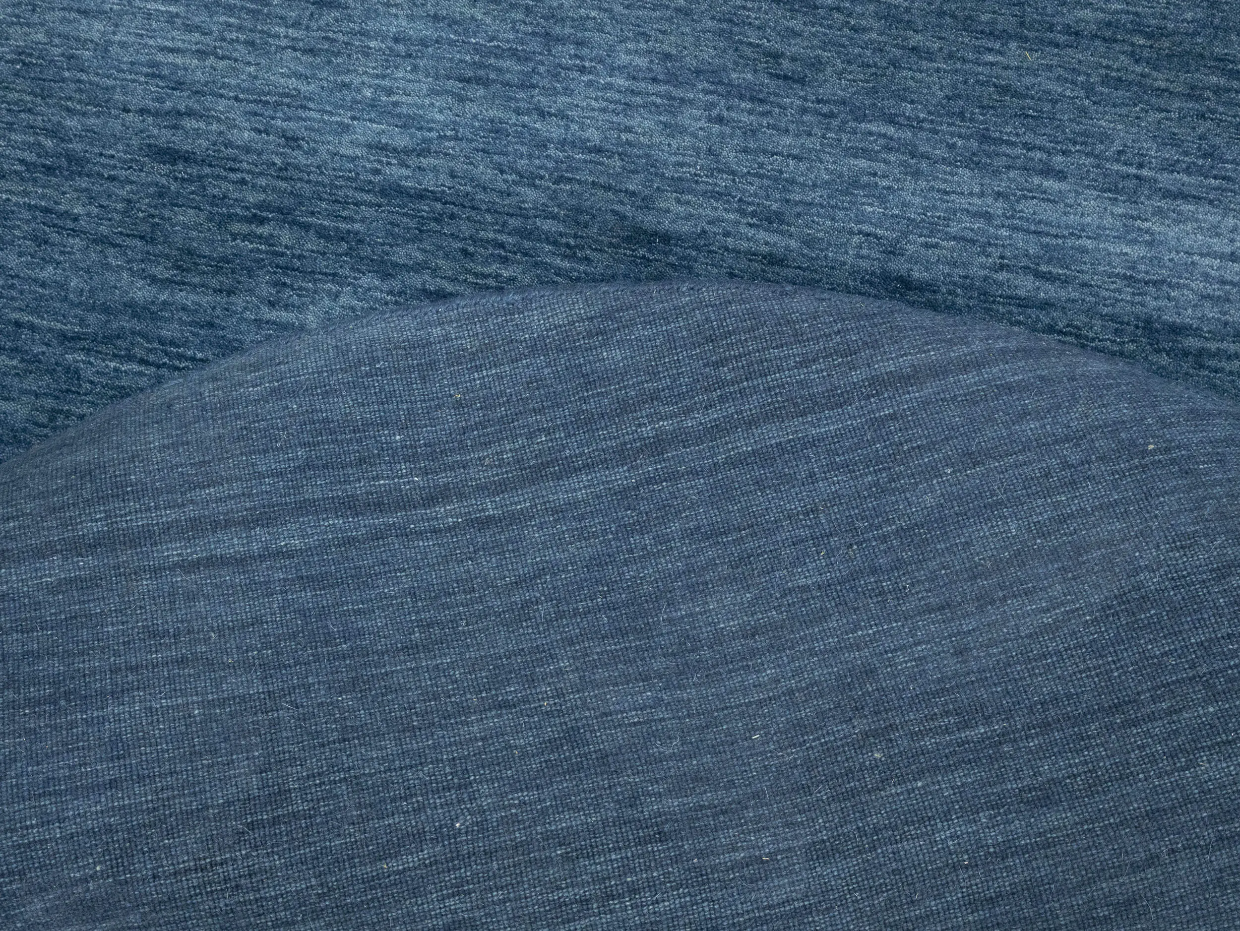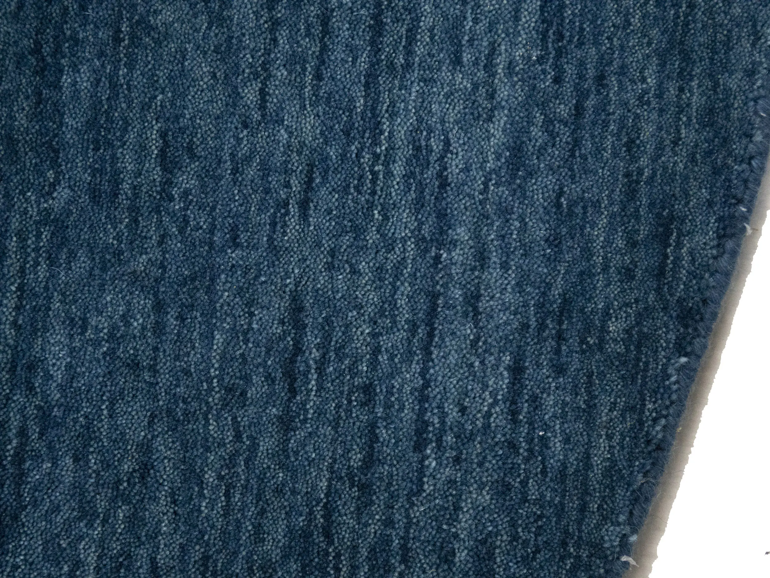 This hand-loomed 6X6 Steel Blue Oriental Round rug from India features a modern, Solid design that seamlessly integrates traditional craftsmanship with contemporary style, showcasing a striking Steel Blue primary color. It provides a luxuriant softness and durability underfoot, as it is constructed from premium wool with a cotton foundation. The rug is optimized for high-traffic areas due to its medium pile height and knot density of 100 knots per square inch, which ensures durability and comfort. This rug, which is in exceptional condition and was recently manufactured, is an ideal complement to any contemporary setting, providing both versatility and timeless elegance.