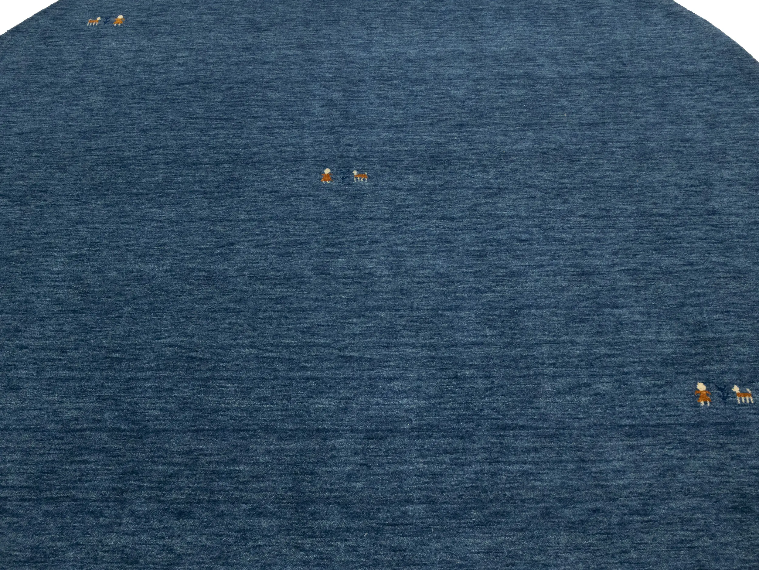 Steel Blue Tribal 8X8 Gabbeh Modern Round Rug