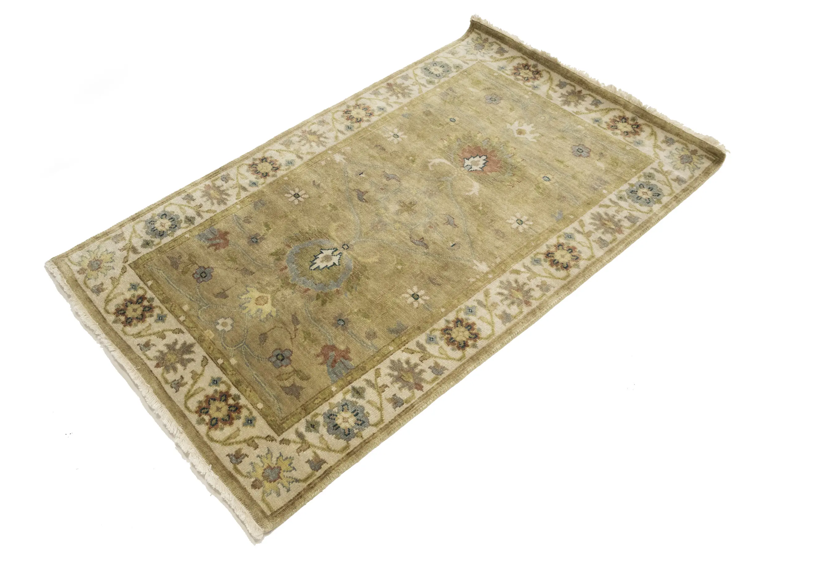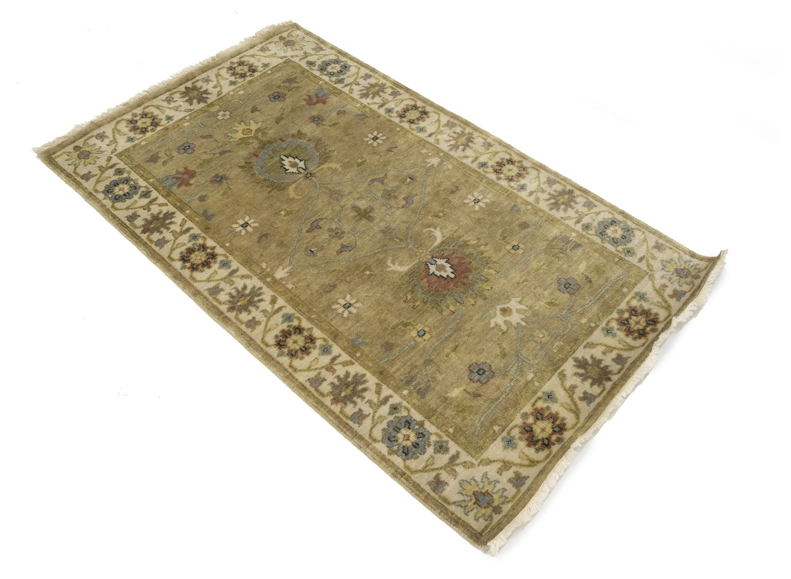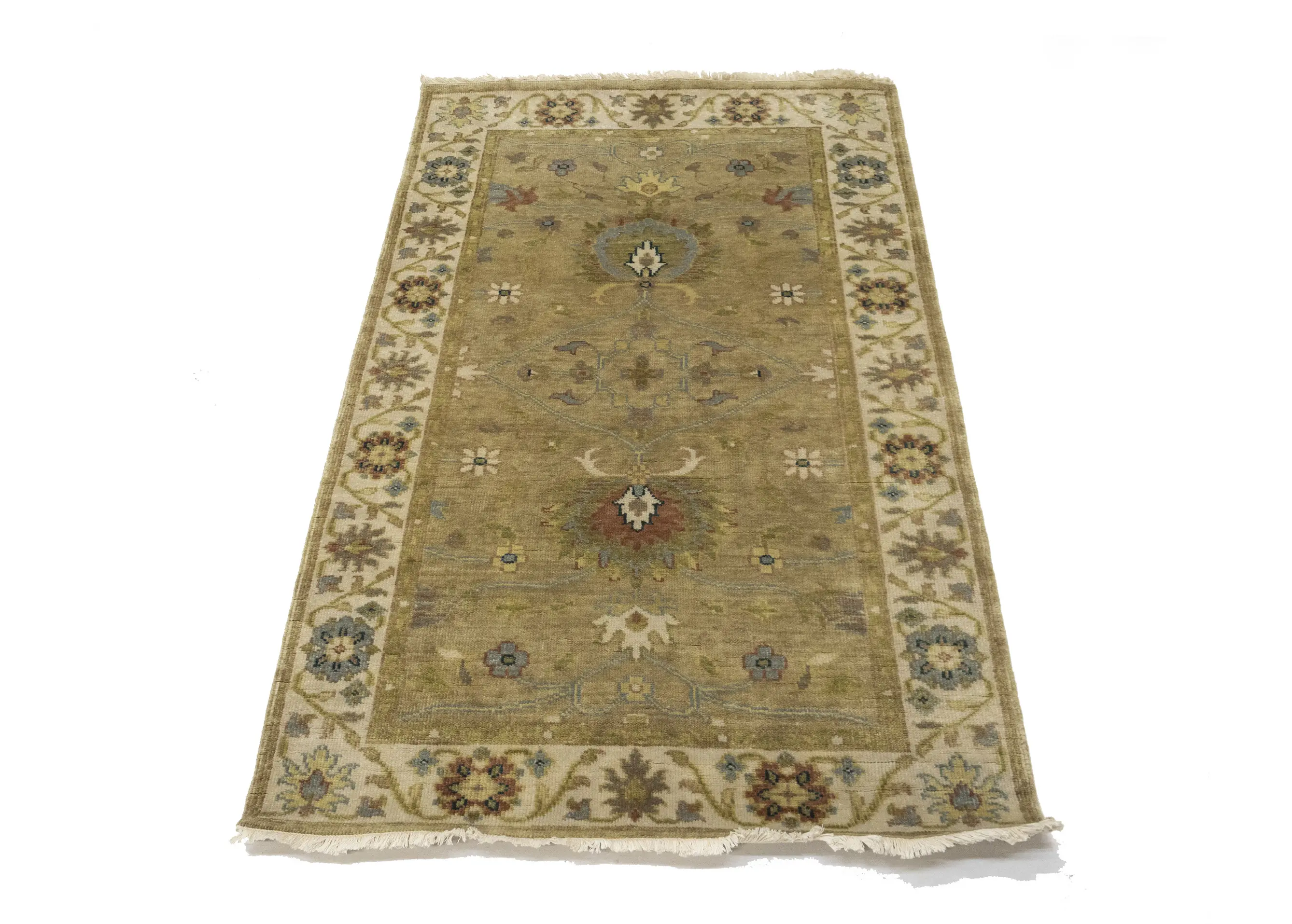 Tan Floral Traditional 3X5 Oushak Chobi Peshawar Oriental Rug