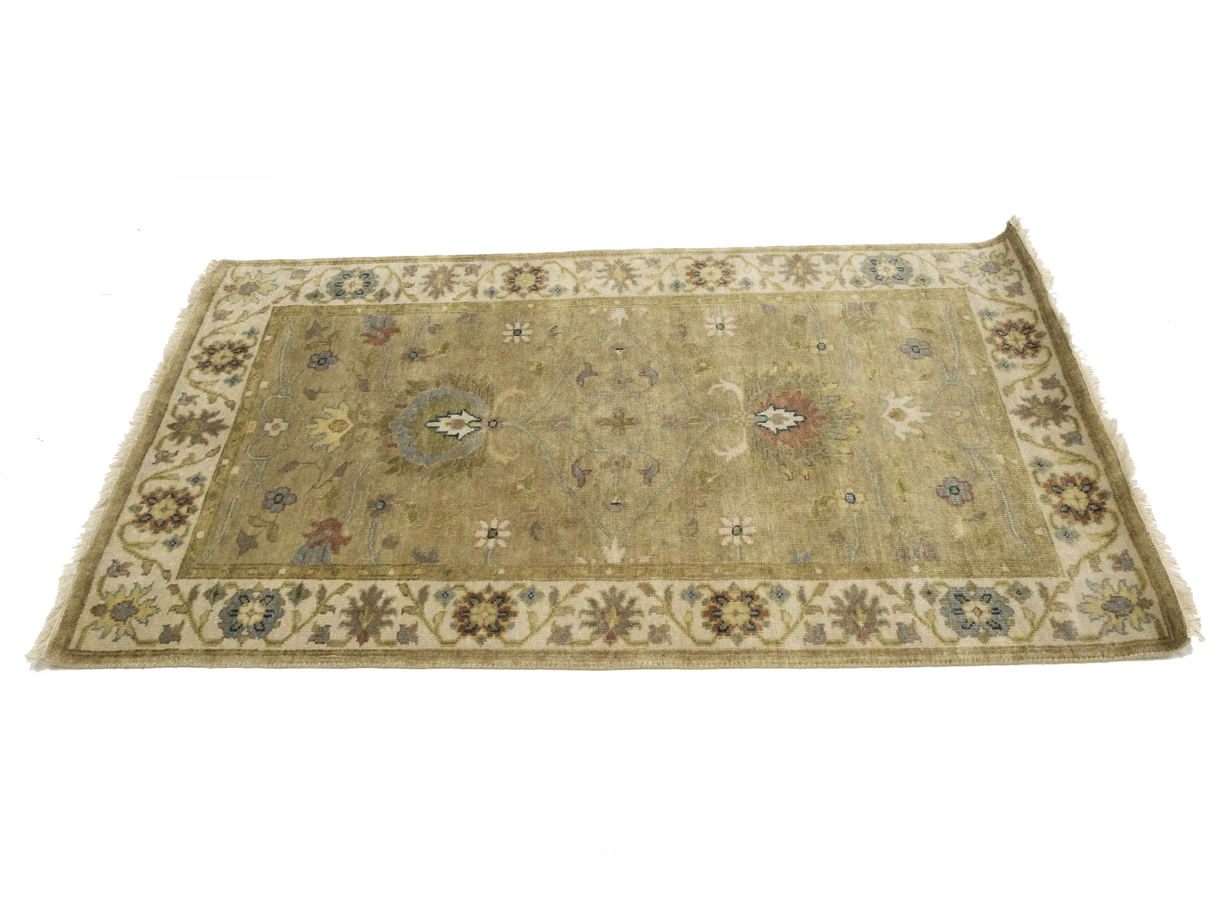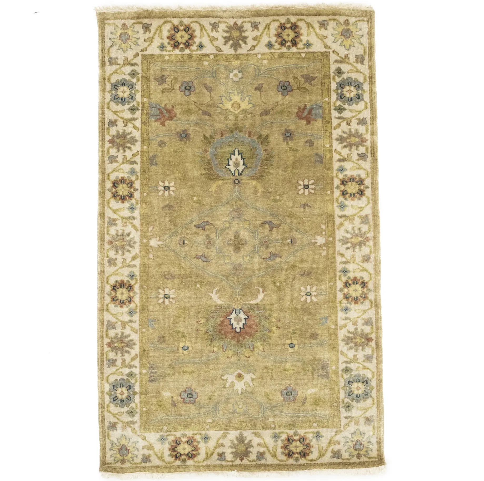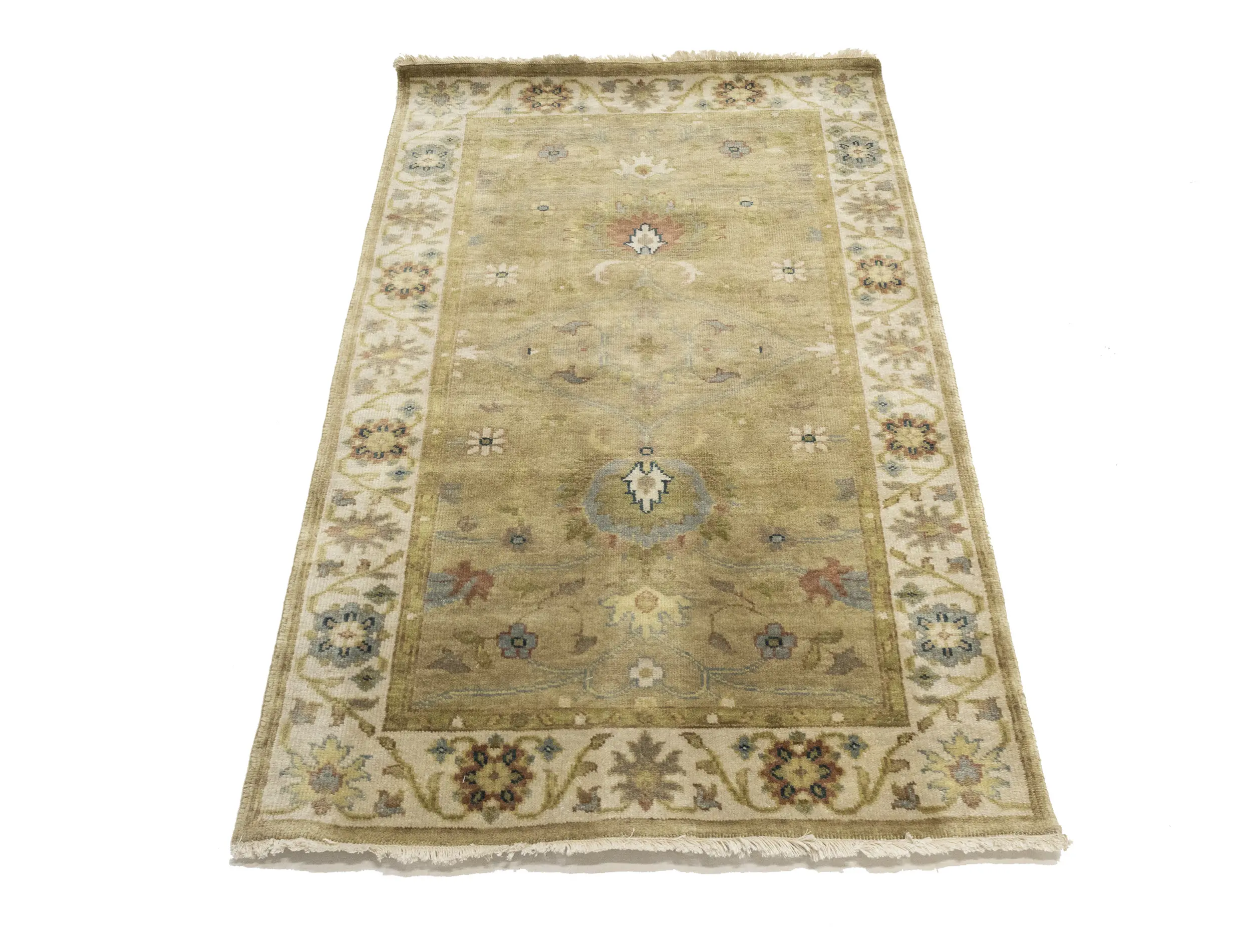 Tan Floral Traditional 3X5 Oushak Chobi Peshawar Oriental Rug