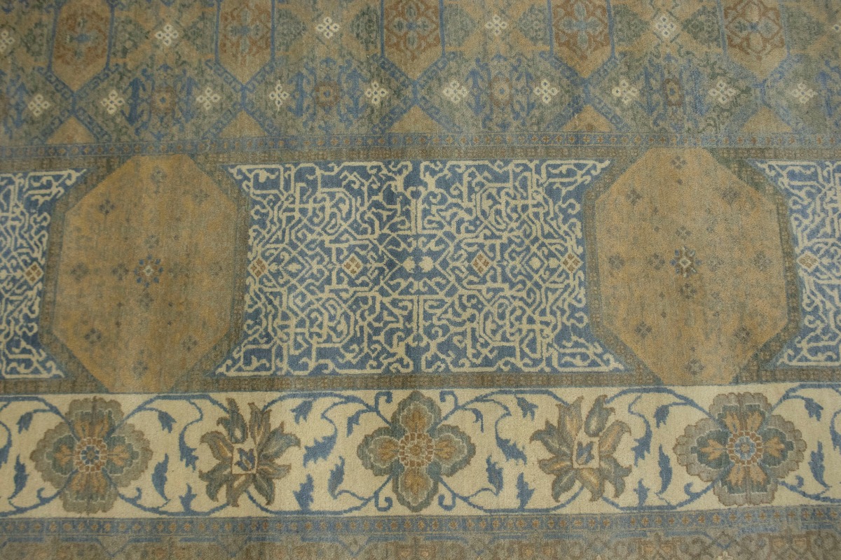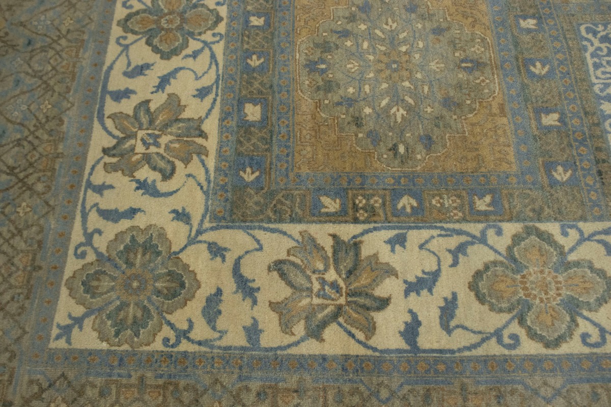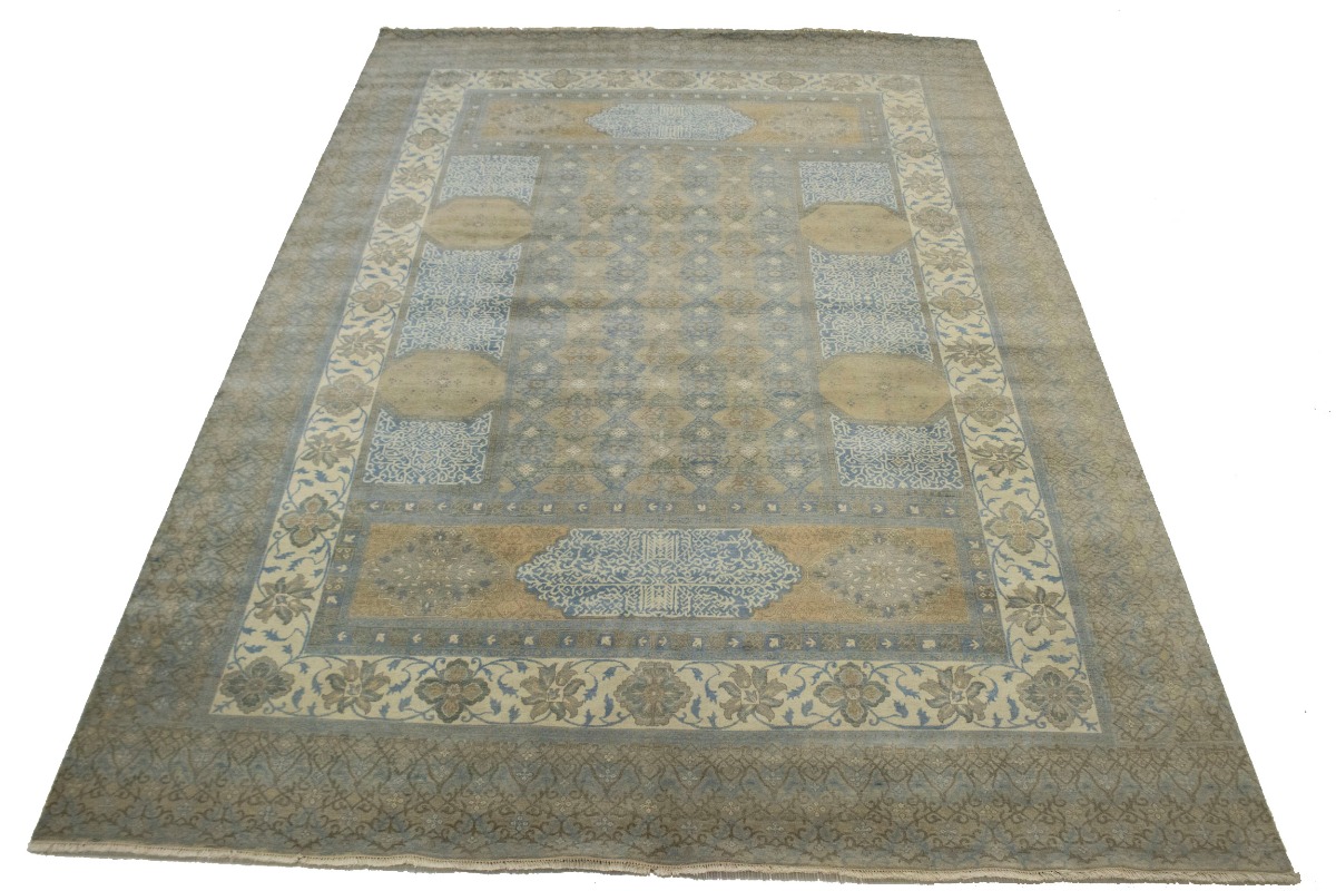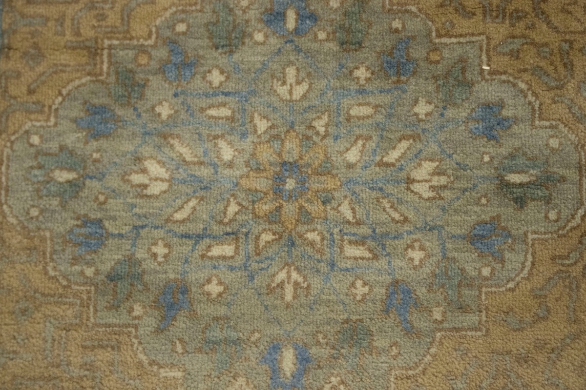 This genuine 10X15 tan new Oriental rug was made by the hands of gifted weavers inspired by a variety of spectacular artistic designs, to recreate the aged look of the original piece with a richness of color and ornately patterned background field. What set this vintage style Oriental area rug from the others are the material and dye used (wool pile and cotton foundation), knot count, ancient designs, fantastic grades, and its regional historical connection: it has deep roots, from the story of the people who produced it to the meaning of the symbols and colors displayed across its canvas that have been praised for centuries. This Indian home décor carpet will be completely cozy and inviting that never will go out of style! Also, this Oriental rug would be among your most valuable treasures, it is a great investment that accrues value over time, and it will last for generations because was woven with high-quality, all-natural wool. Environmentally friendly, opulent yet affordable; this rug/runner will give you a thorough amount of character to help define your living space with elegance and warmth that will capture the eyes and attention of your audience (homeowners, designers, decorators, family and friends). OT-3239