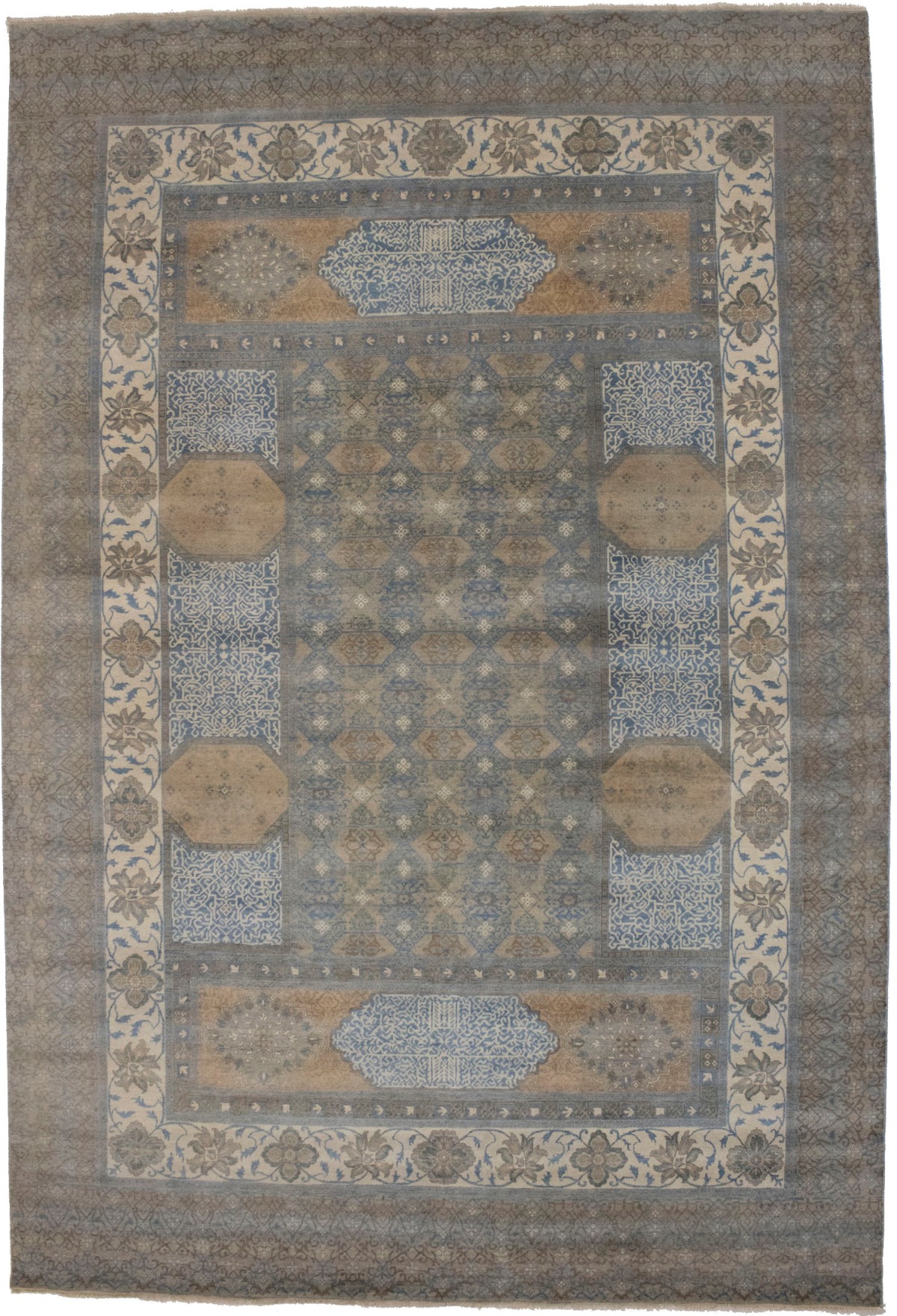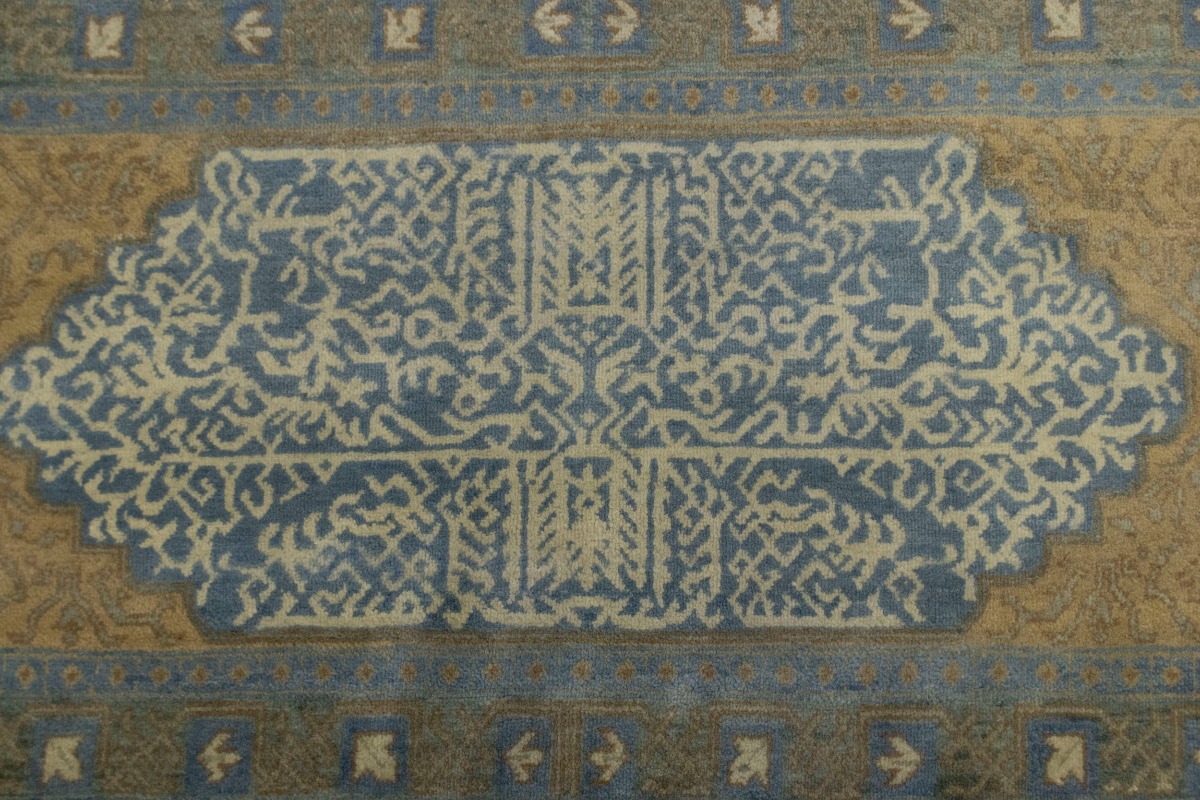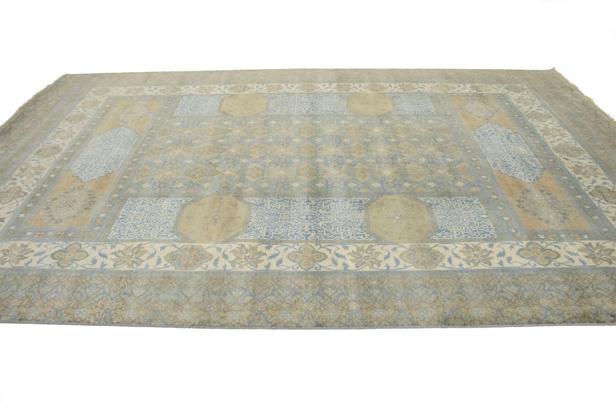 This genuine 10X15 tan new Oriental rug was made by the hands of gifted weavers inspired by a variety of spectacular artistic designs, to recreate the aged look of the original piece with a richness of color and ornately patterned background field. What set this vintage style Oriental area rug from the others are the material and dye used (wool pile and cotton foundation), knot count, ancient designs, fantastic grades, and its regional historical connection: it has deep roots, from the story of the people who produced it to the meaning of the symbols and colors displayed across its canvas that have been praised for centuries. This Indian home décor carpet will be completely cozy and inviting that never will go out of style! Also, this Oriental rug would be among your most valuable treasures, it is a great investment that accrues value over time, and it will last for generations because was woven with high-quality, all-natural wool. Environmentally friendly, opulent yet affordable; this rug/runner will give you a thorough amount of character to help define your living space with elegance and warmth that will capture the eyes and attention of your audience (homeowners, designers, decorators, family and friends). OT-3239