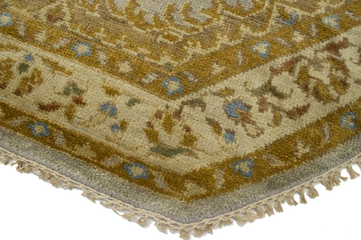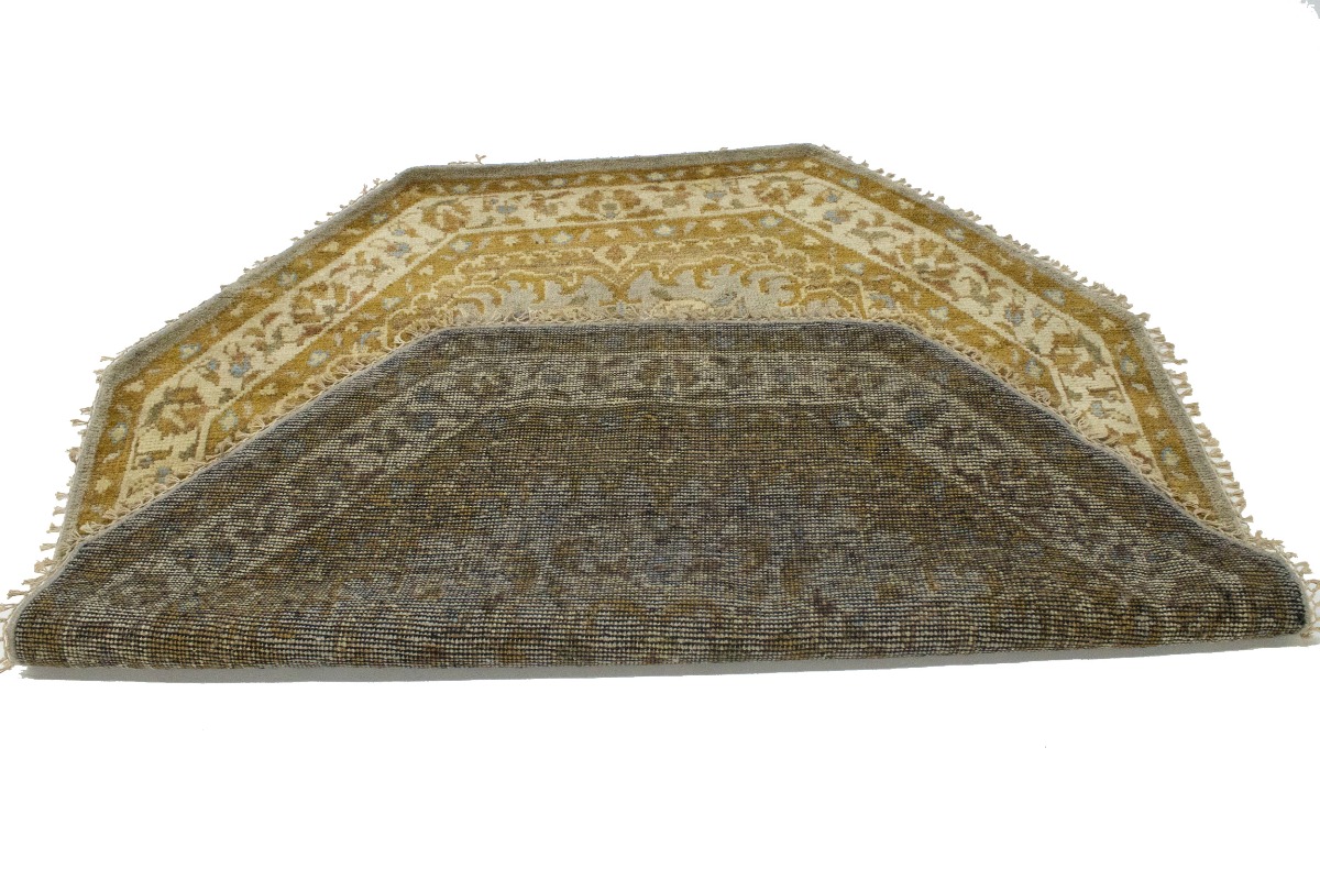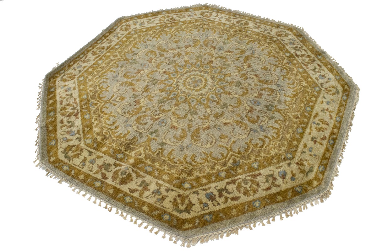Tan & Gold Floral 6X6 Oushak Oriental Octagon Rug