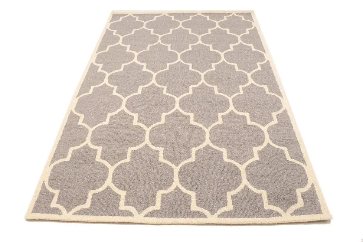 Taupe & Cream Trellis 5X8 Hand-Tufted Modern Rug