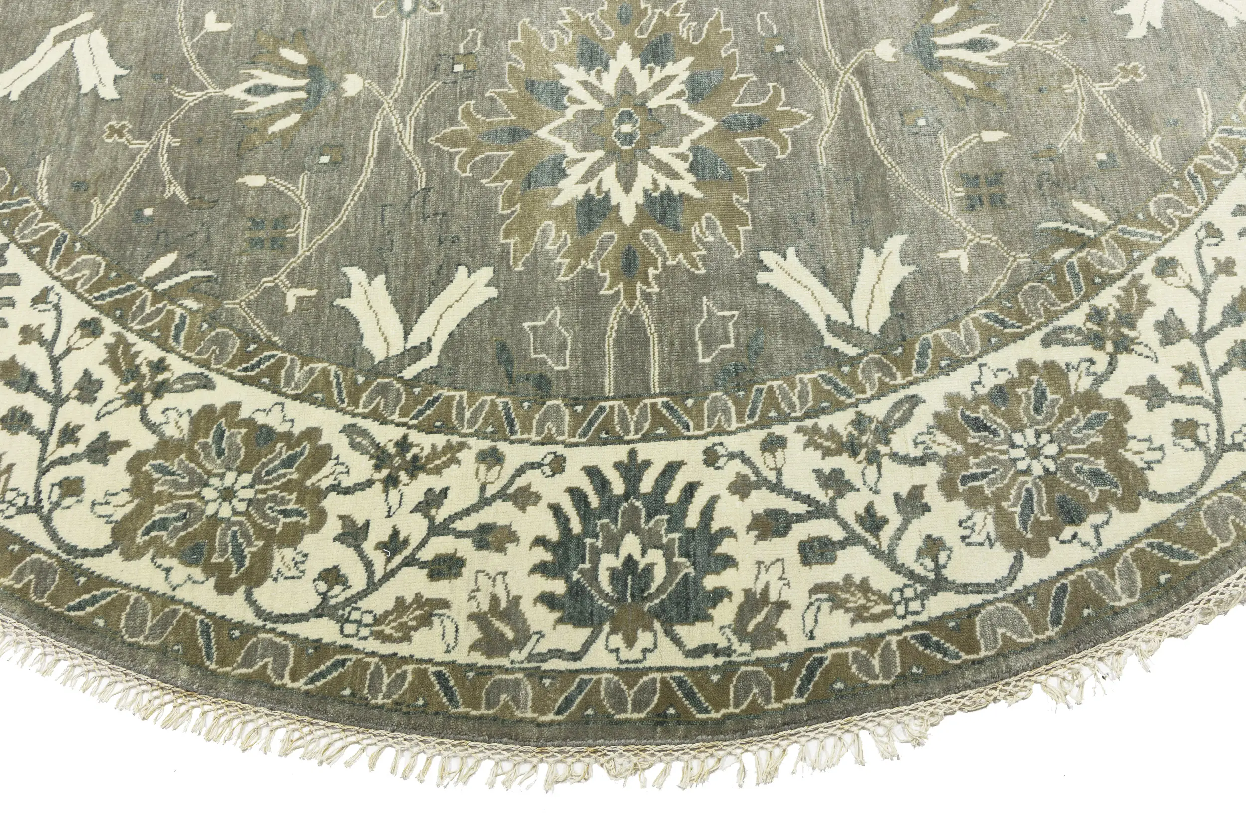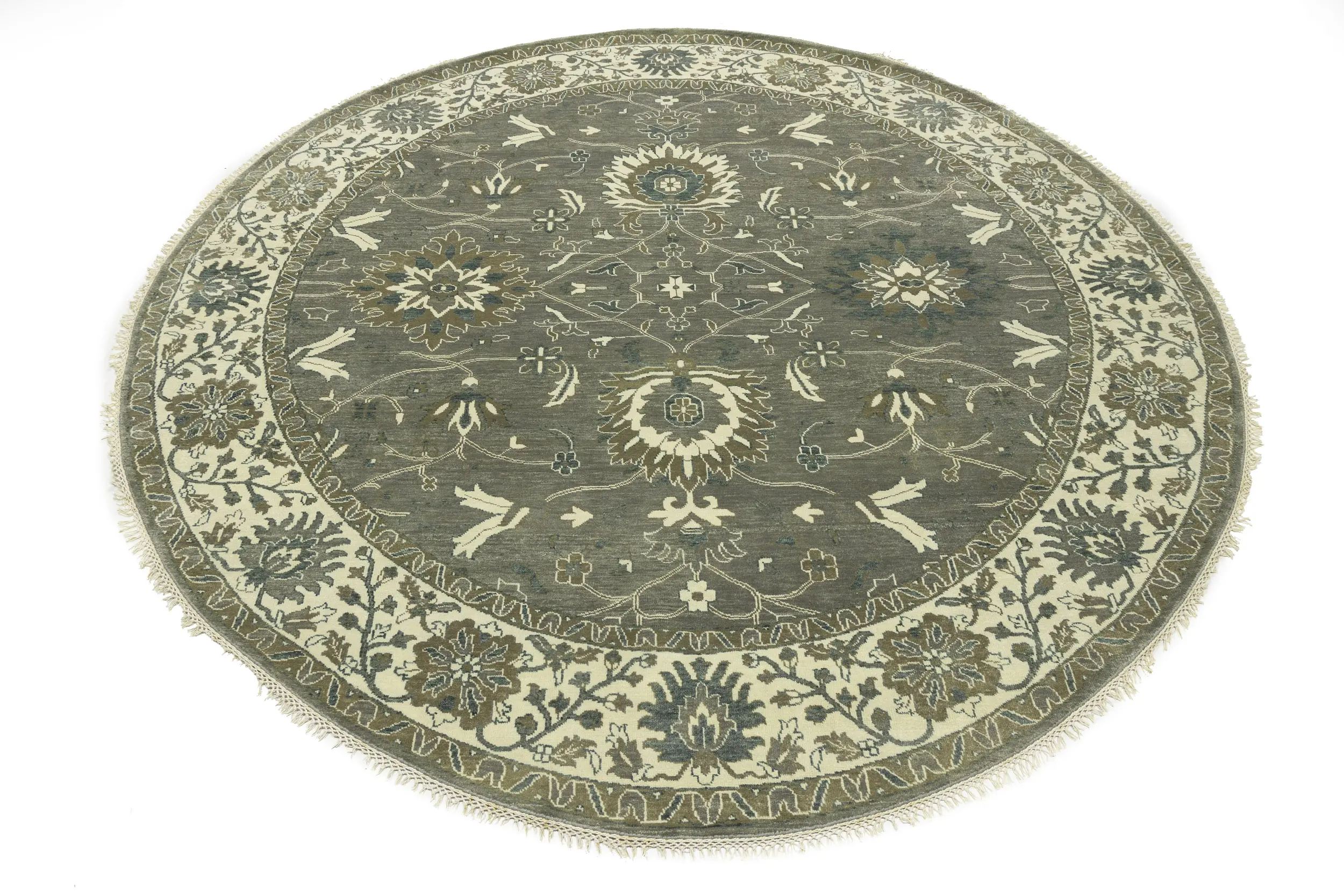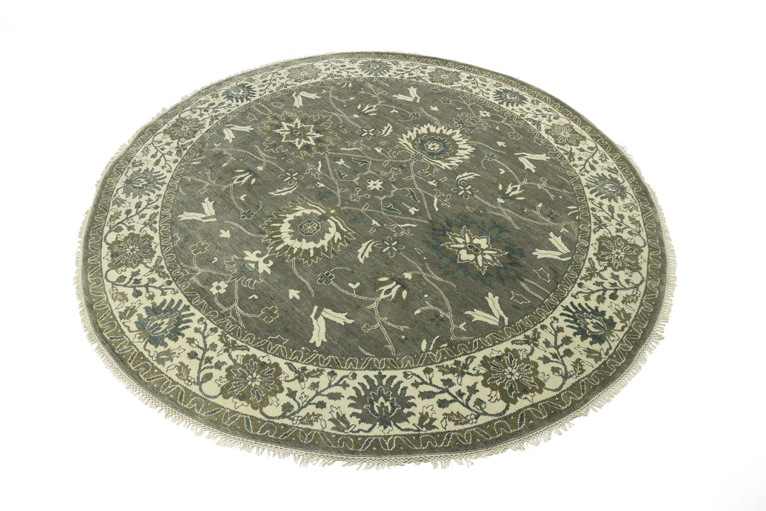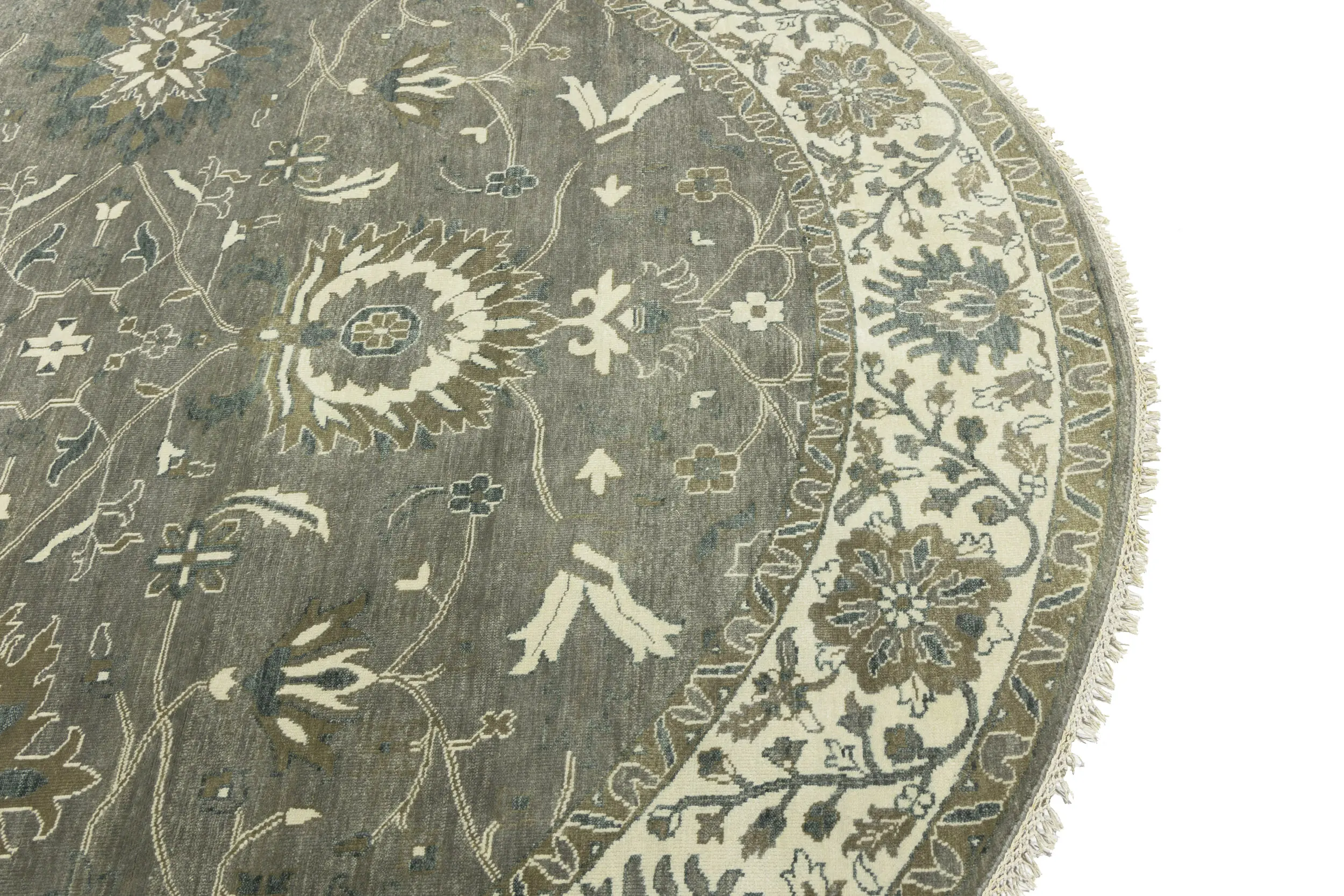 Taupe Floral 10X10 Osh Chobi Peshawar Oriental Round Rug