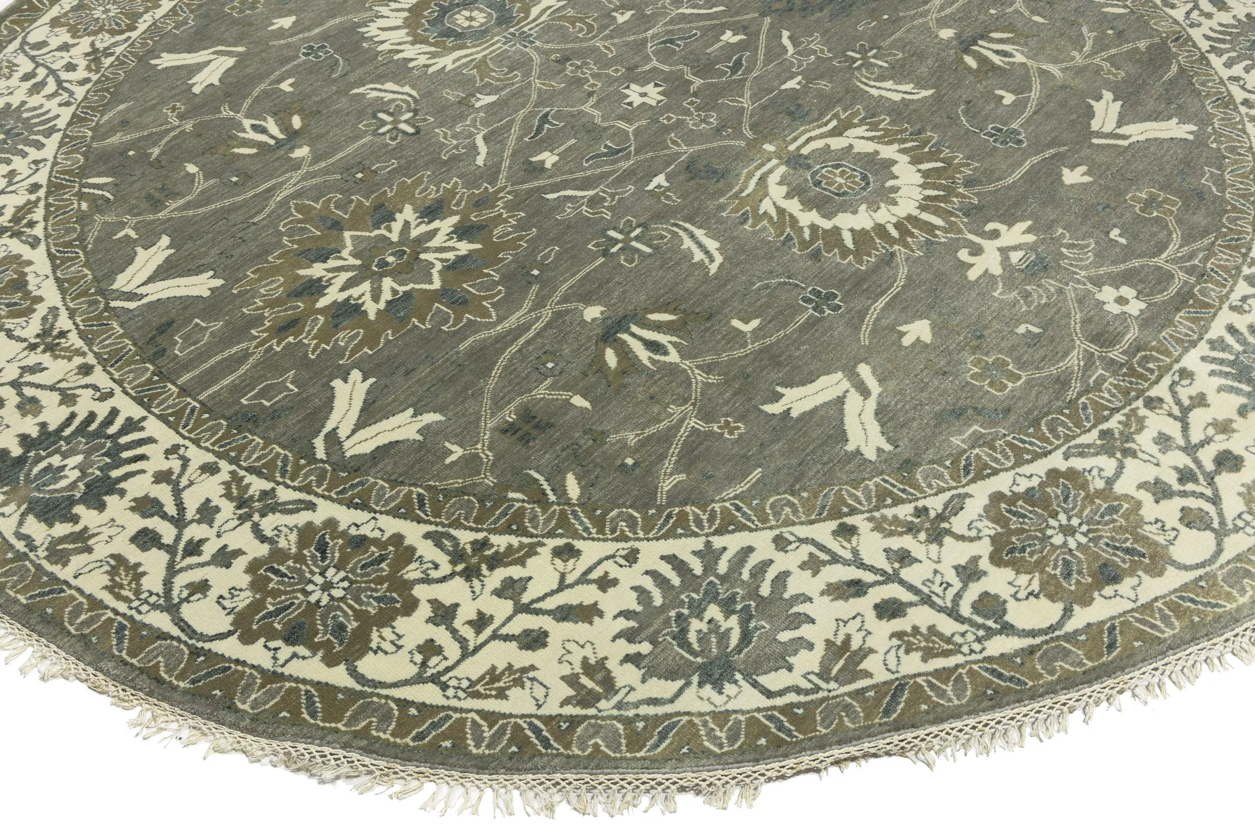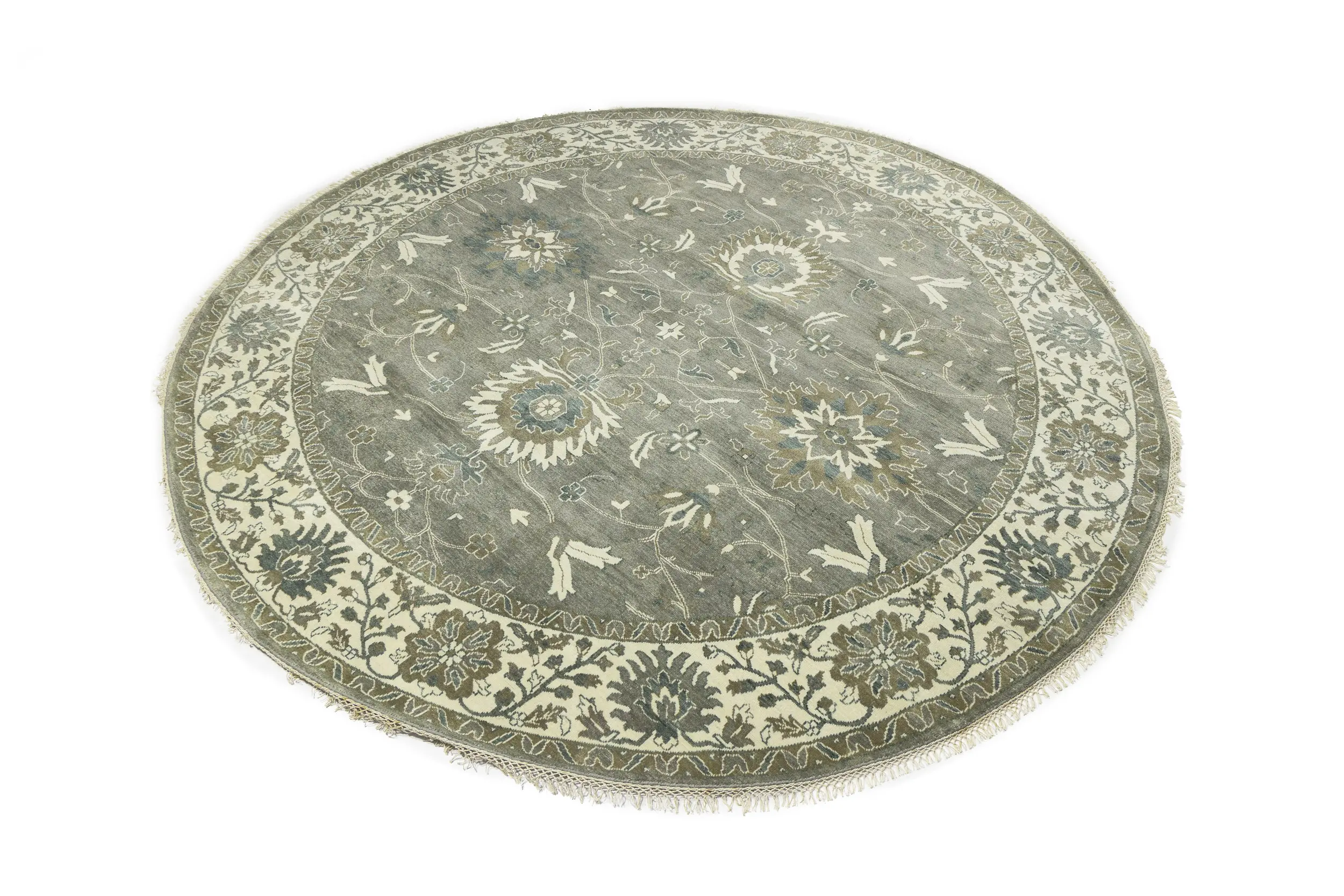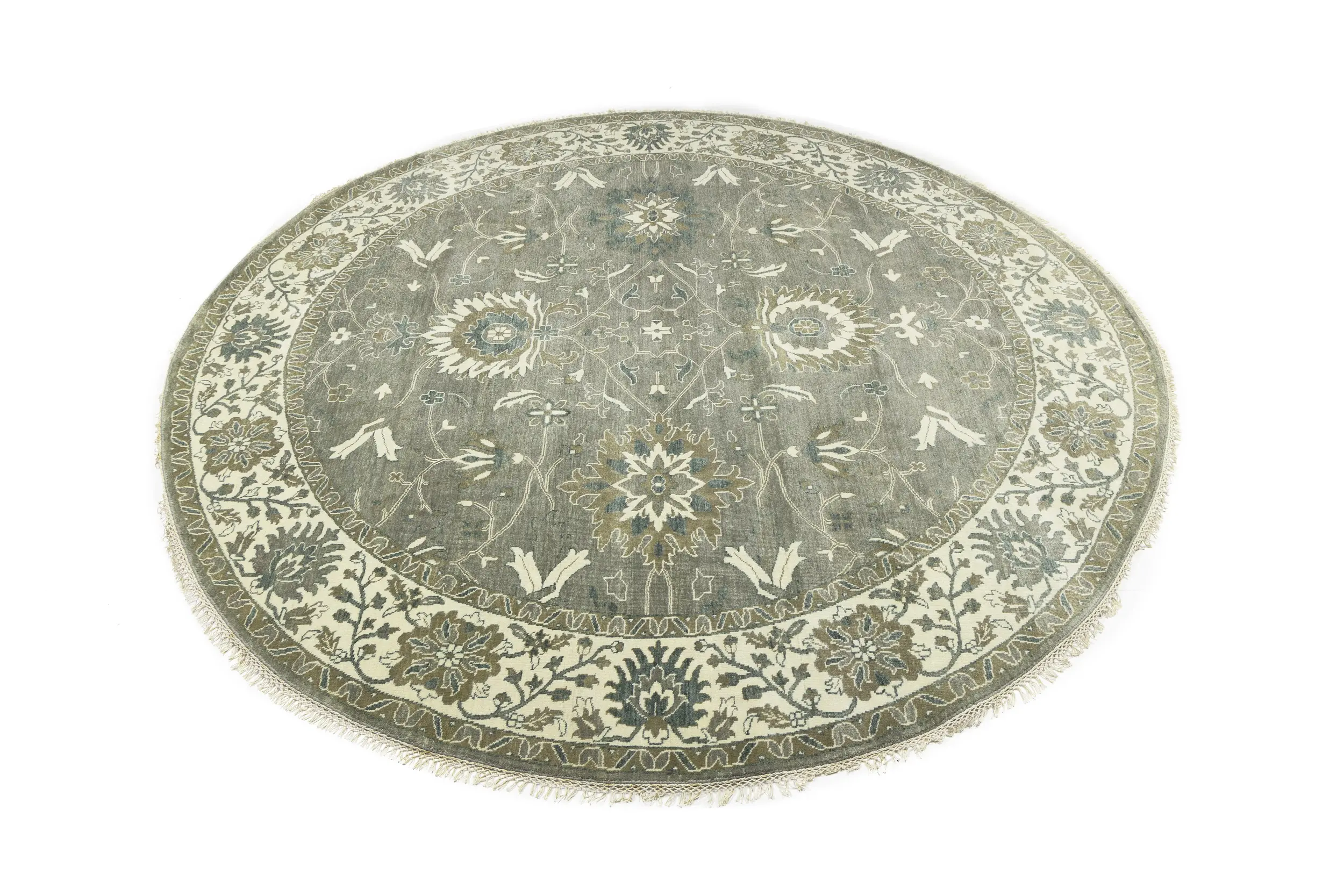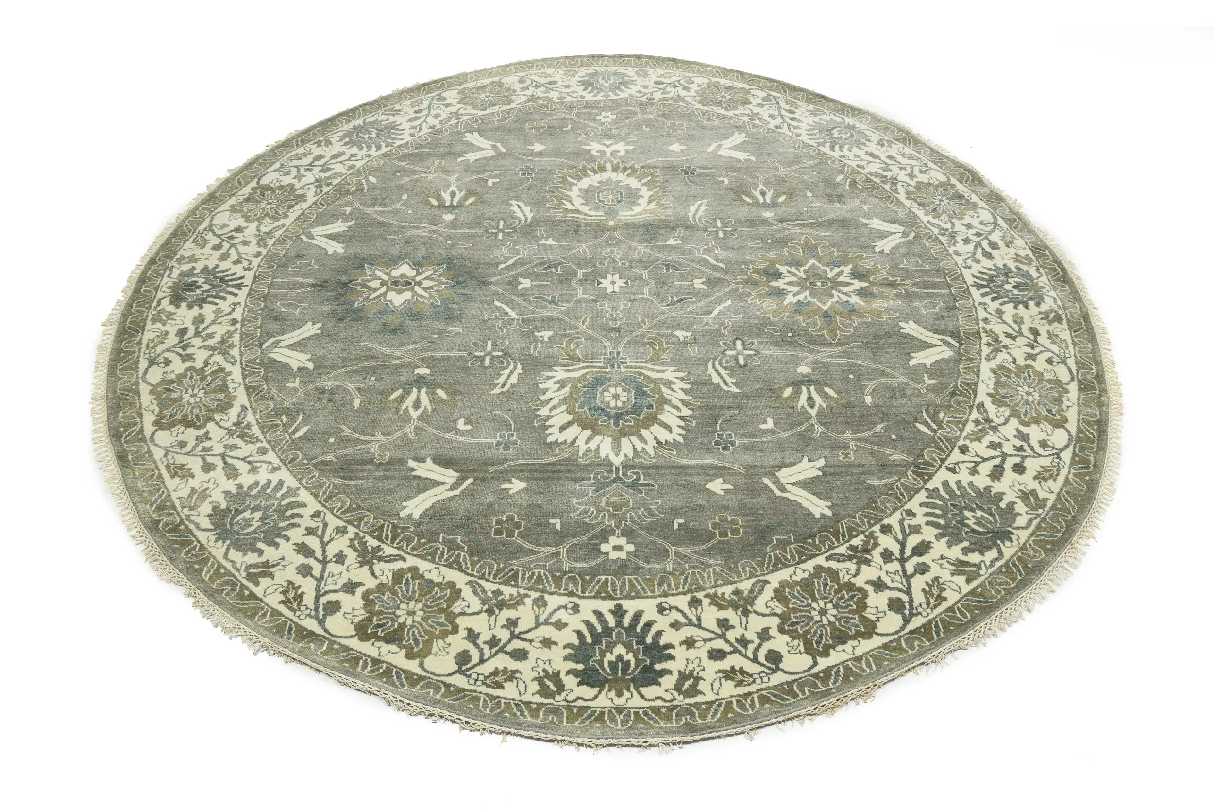 Taupe Floral 10X10 Osh Chobi Peshawar Oriental Round Rug