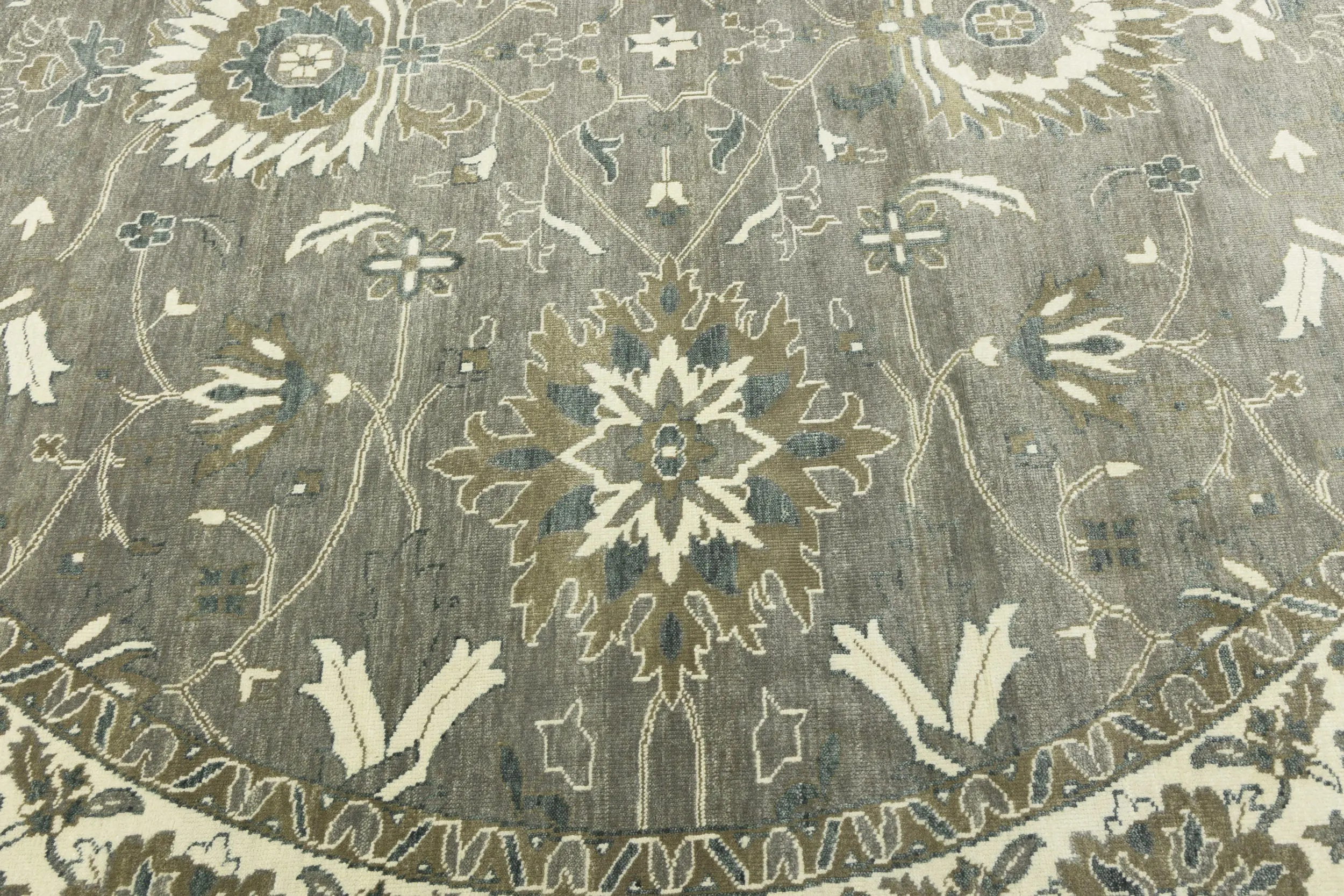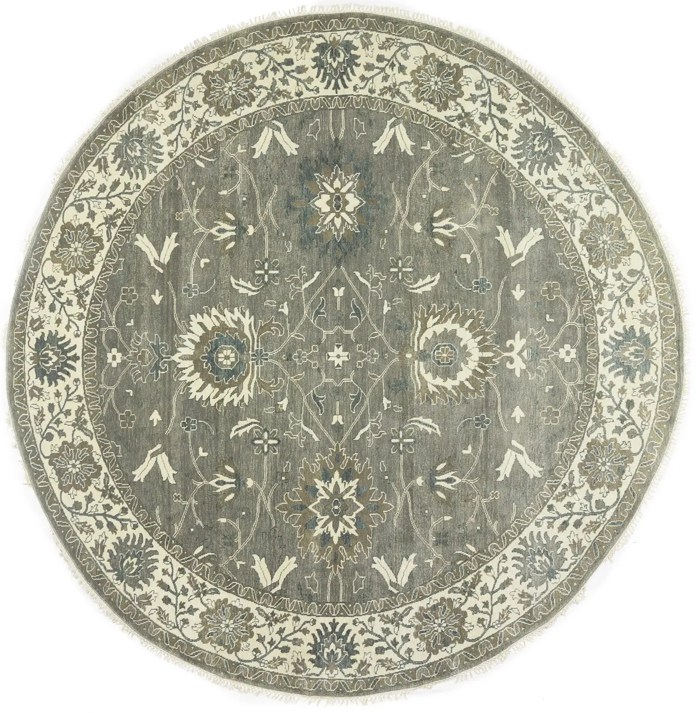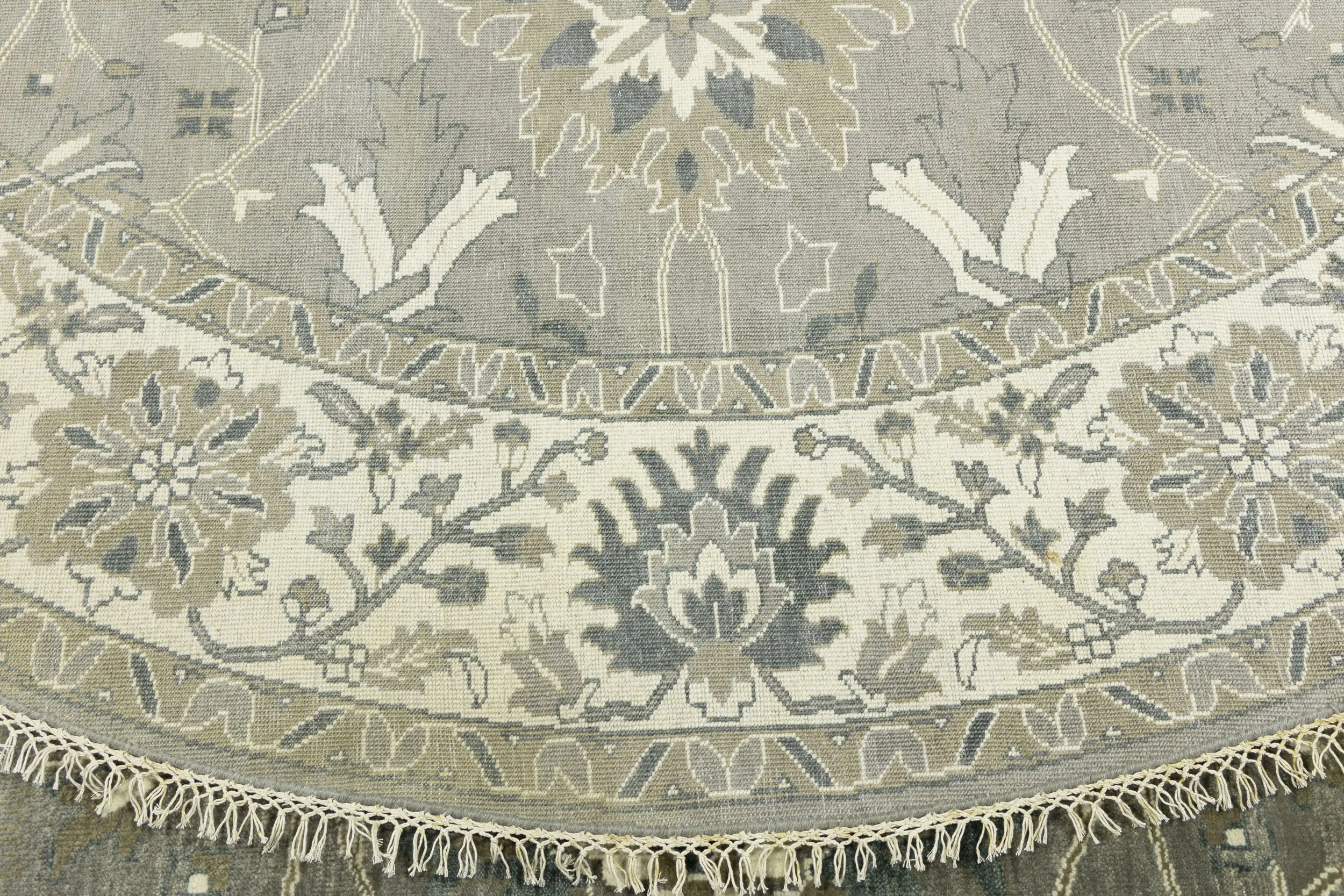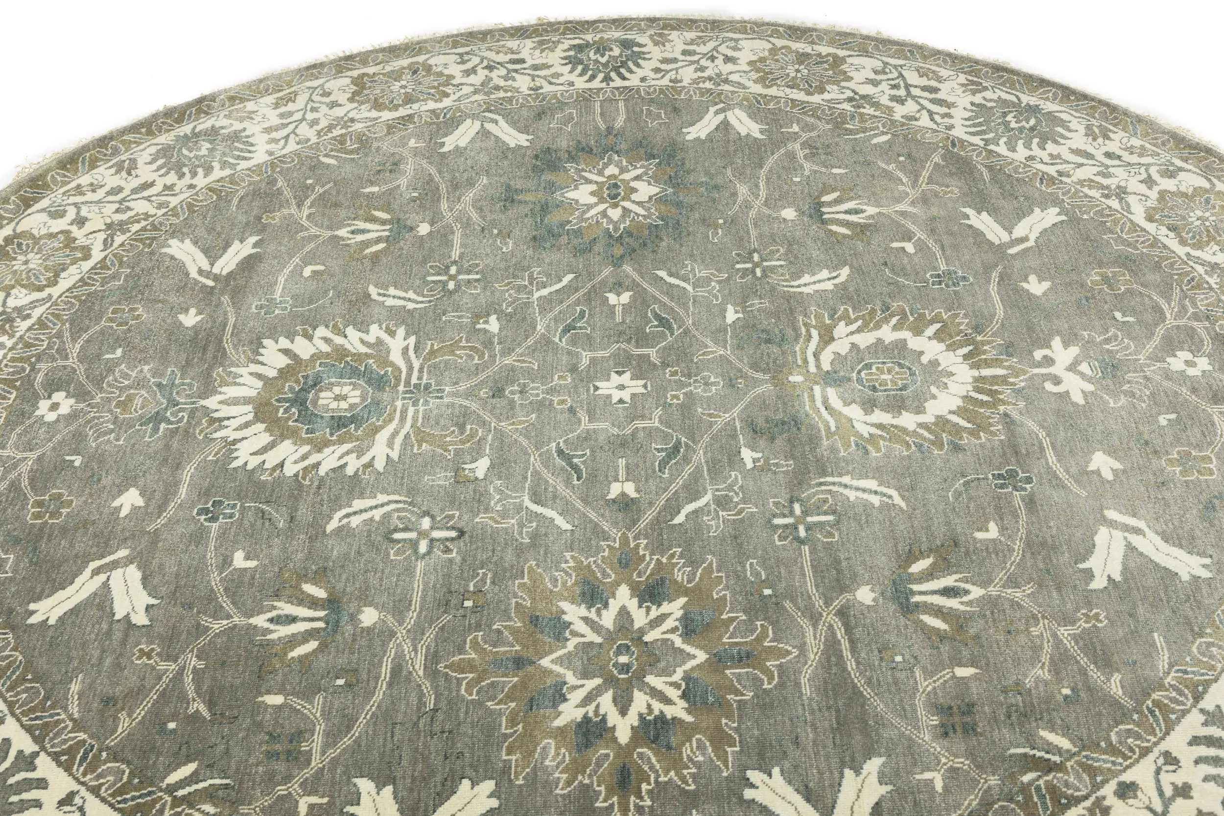 Taupe Floral 10X10 Osh Chobi Peshawar Oriental Round Rug