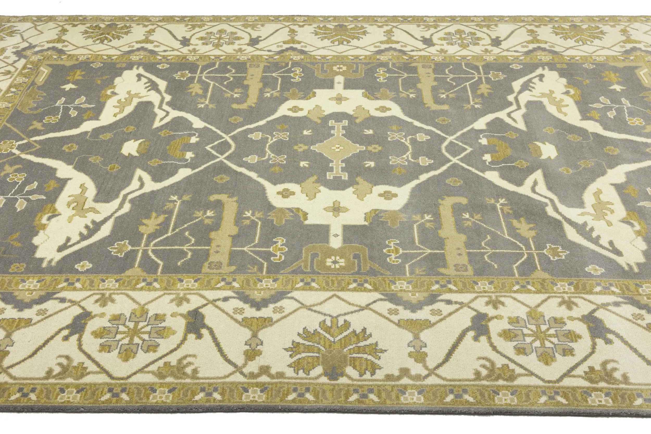 This genuine 10X14 gray new Oriental rug was made by the hands of gifted weavers inspired by a variety of spectacular artistic designs, to recreate the aged look of the original piece with a richness of color and ornately patterned background field. What set this vintage style Oriental area rug from the others are the material and dye used (wool pile and cotton foundation), knot count, ancient designs, fantastic grades, and its regional historical connection: it has deep roots, from the story of the people who produced it to the meaning of the symbols and colors displayed across its canvas that have been praised for centuries. This Indian home décor carpet will be completely cozy and inviting that never will go out of style! Also, this Oriental rug would be among your most valuable treasures, it is a great investment that accrues value over time, and it will last for generations because was woven with high-quality, all-natural wool. Environmentally friendly, opulent yet affordable; this rug will give you a thorough amount of character to help define your living space with elegance and warmth that will capture the eyes and attention of your audience (homeowners, designers, decorators, family and friends).