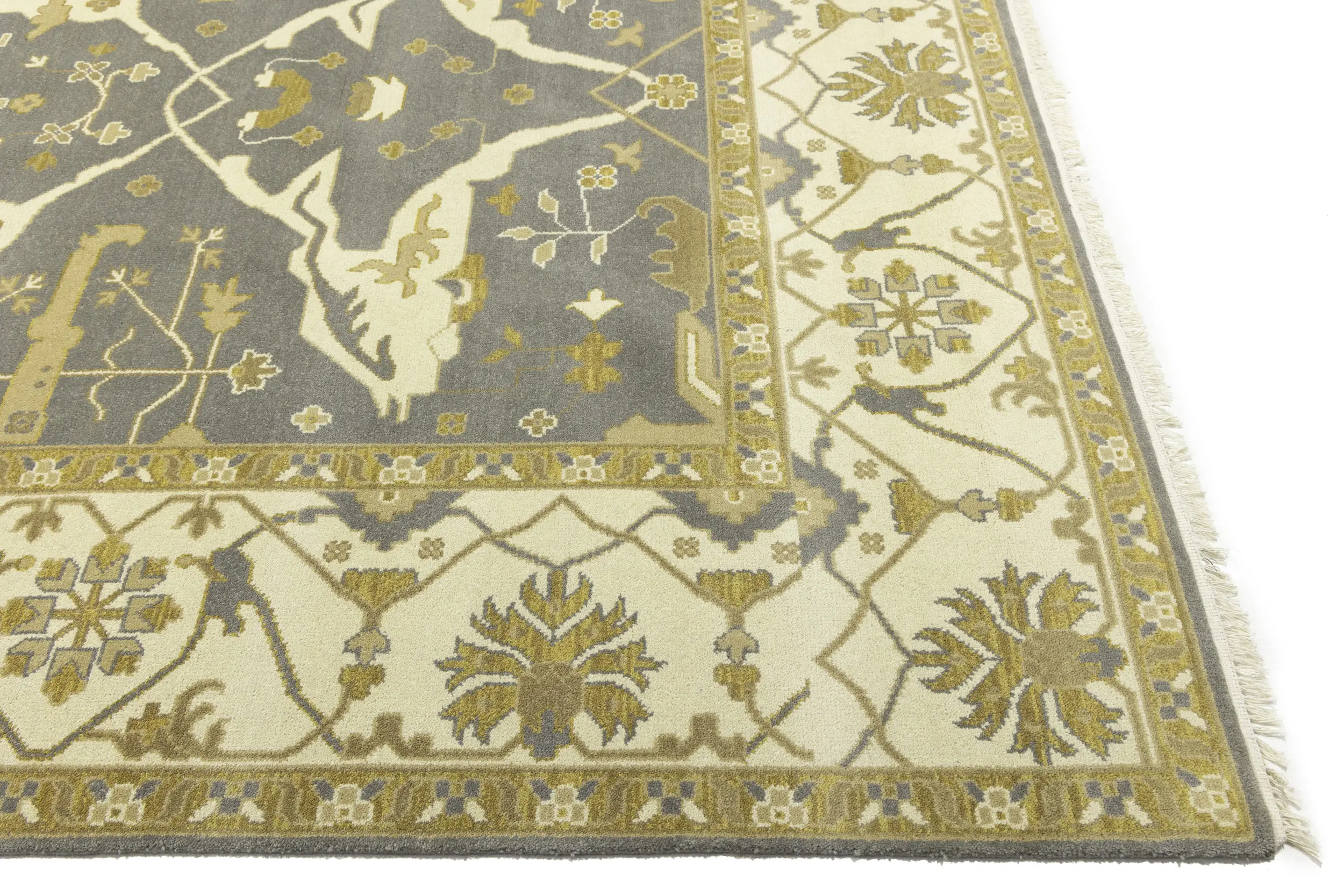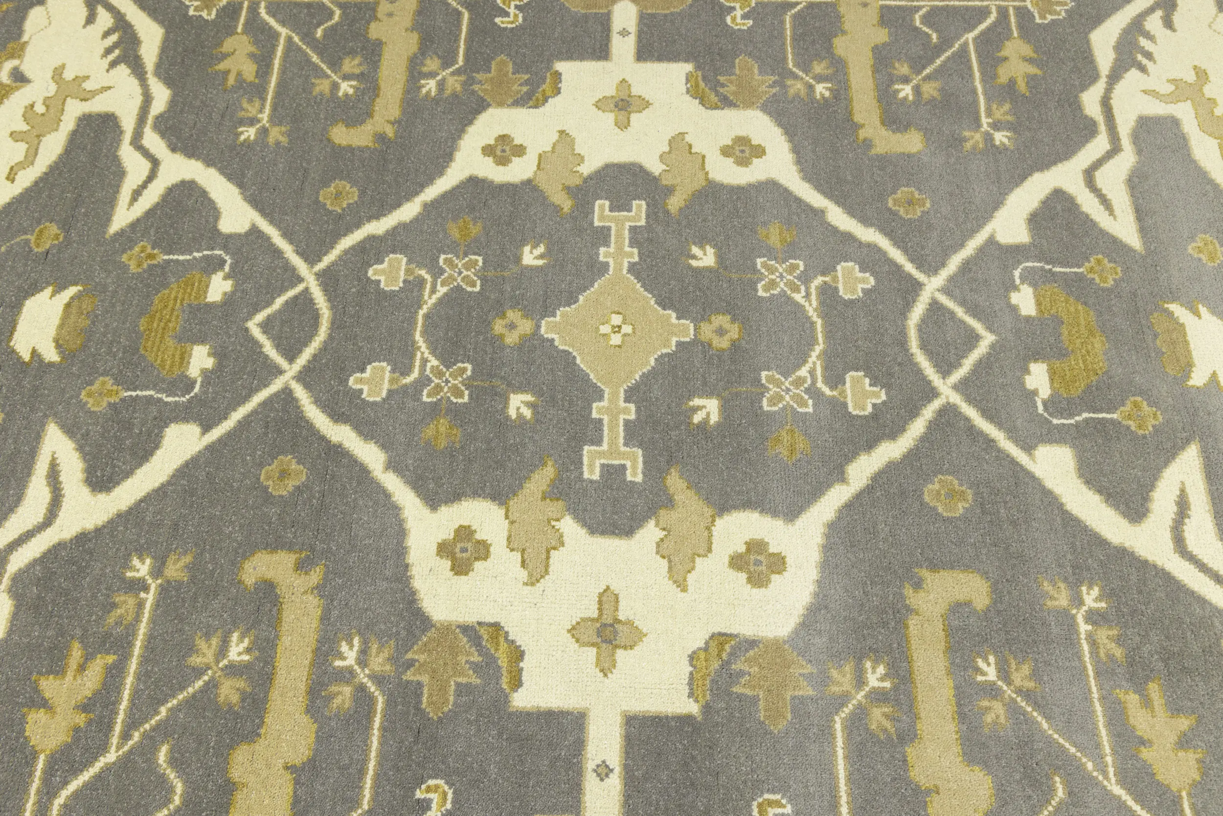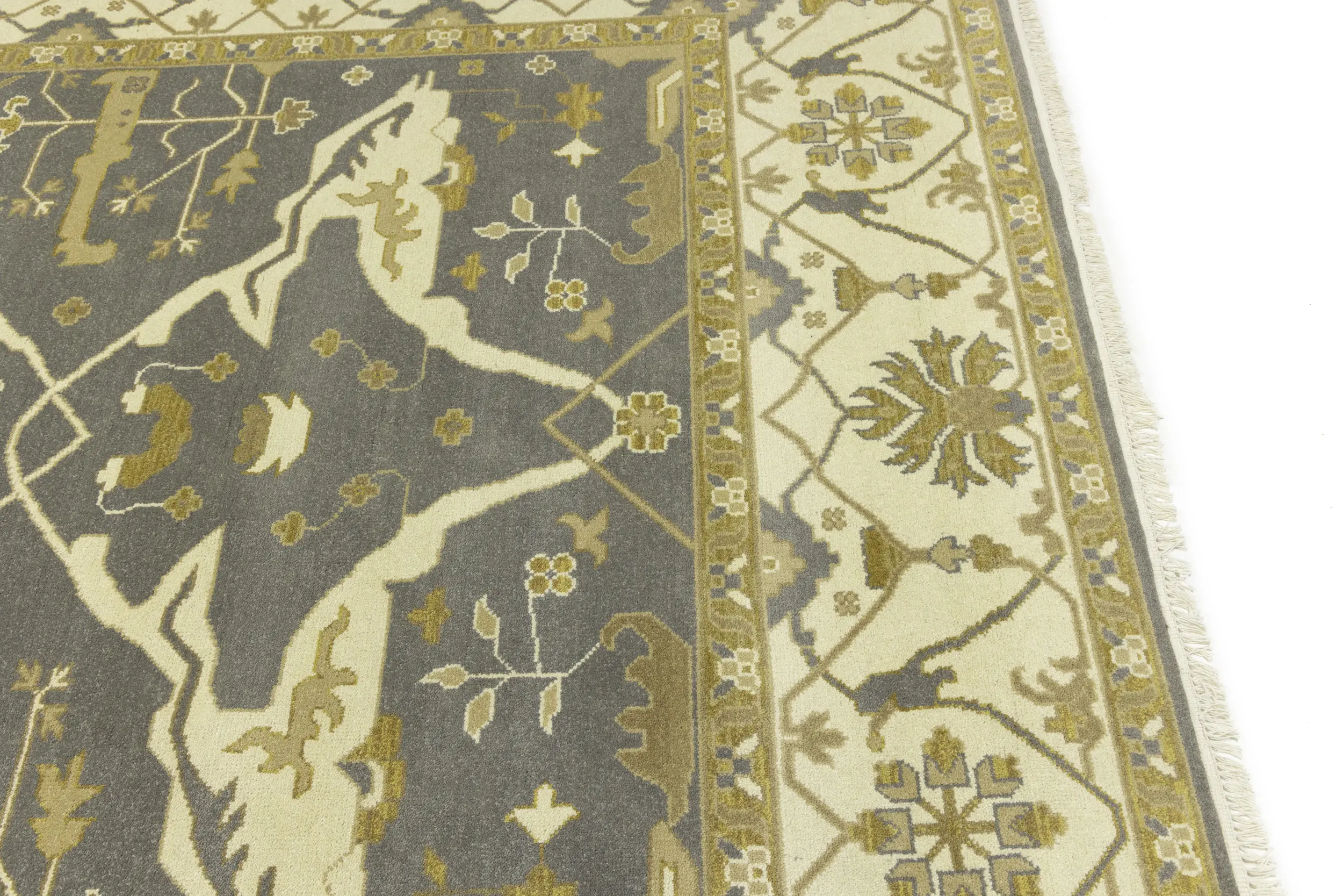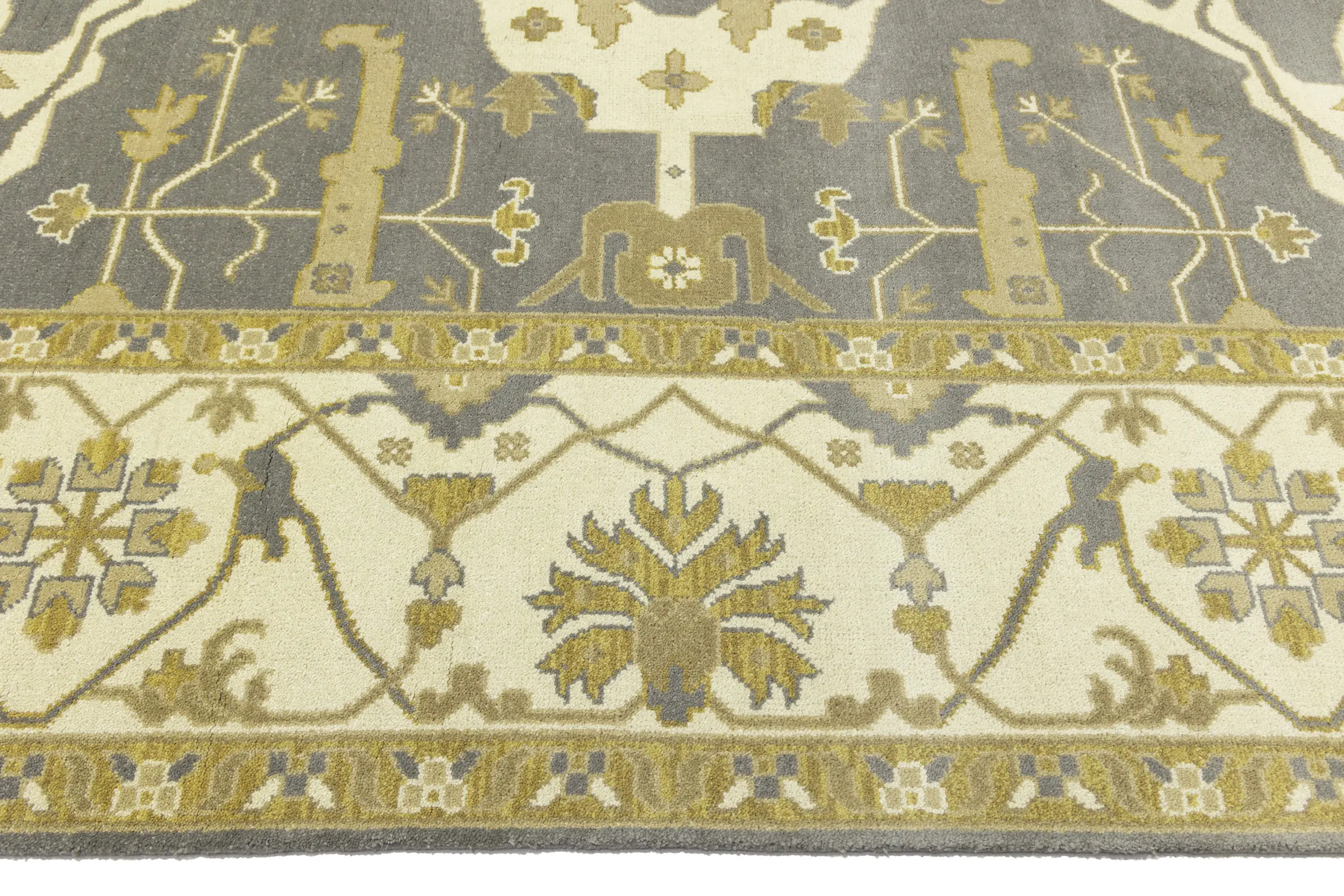 Handmade 10X14 gray oriental rug made with vegetable dyes (fine wool pile and cotton foundation), superior knot count, and appealing ancient designs. This Oriental rug never will go out of style and would be among your most valuable treasures.