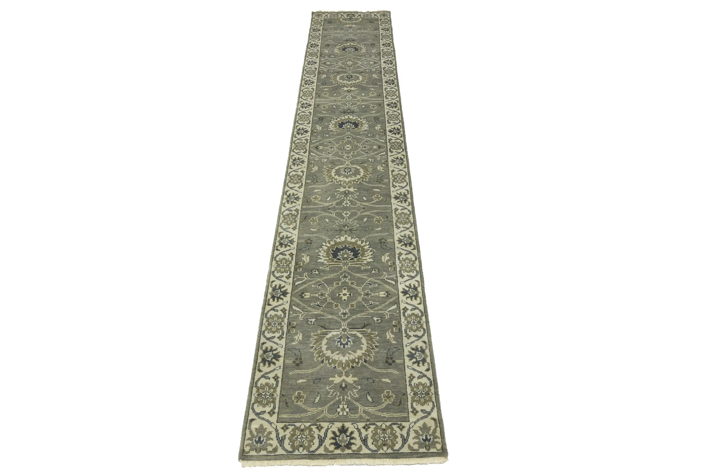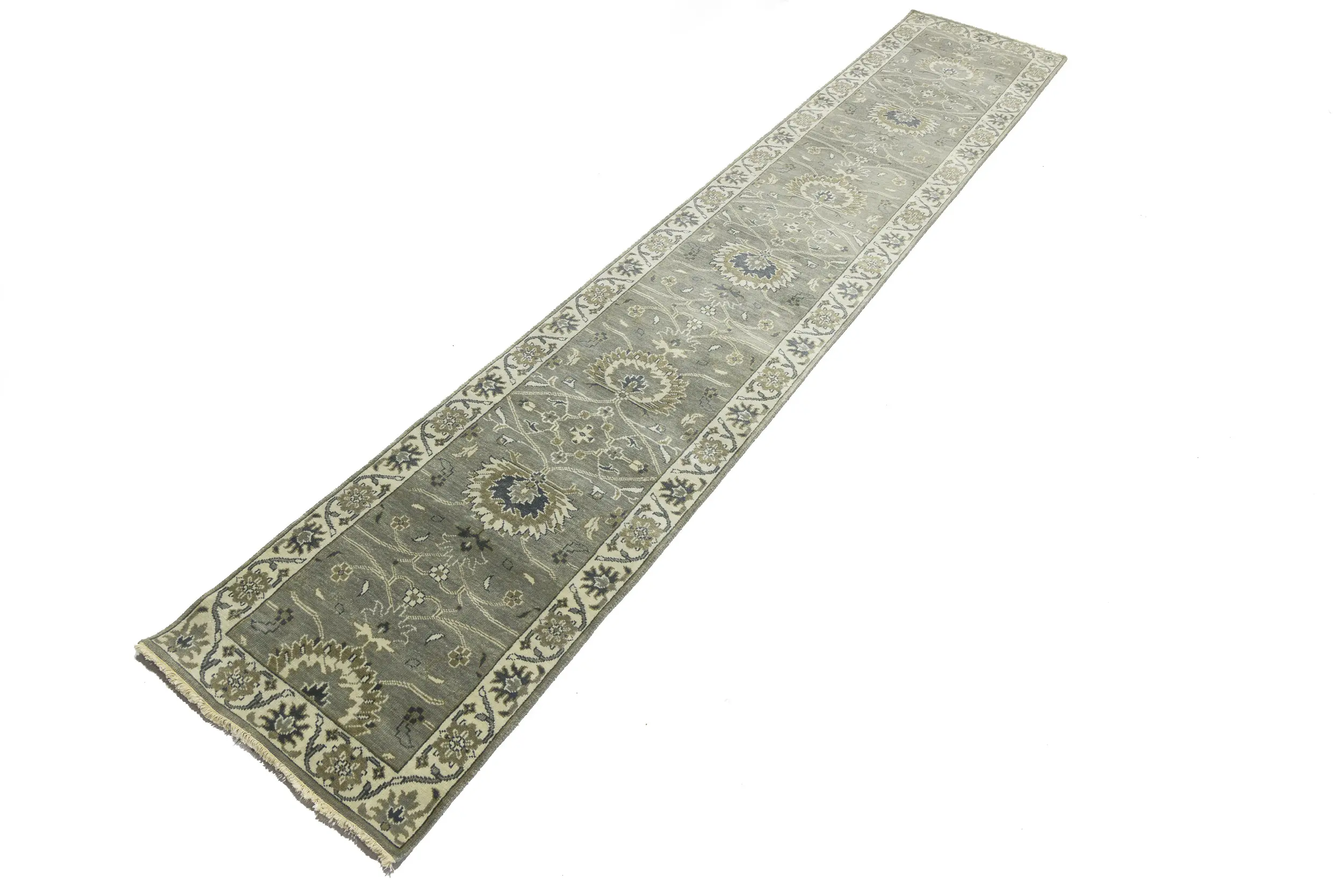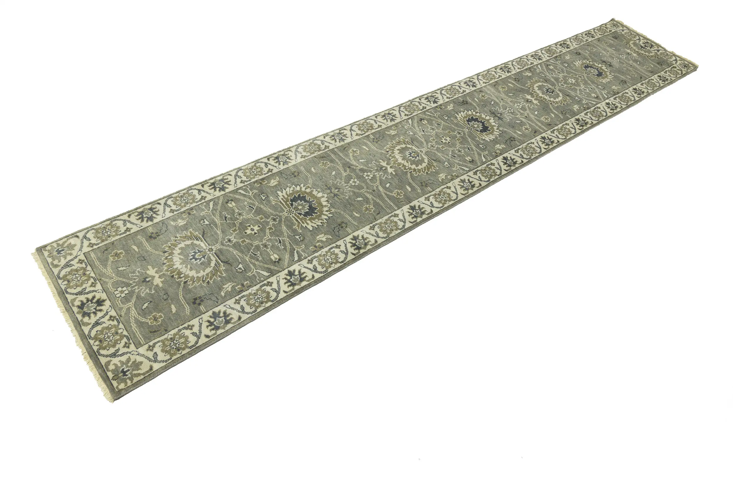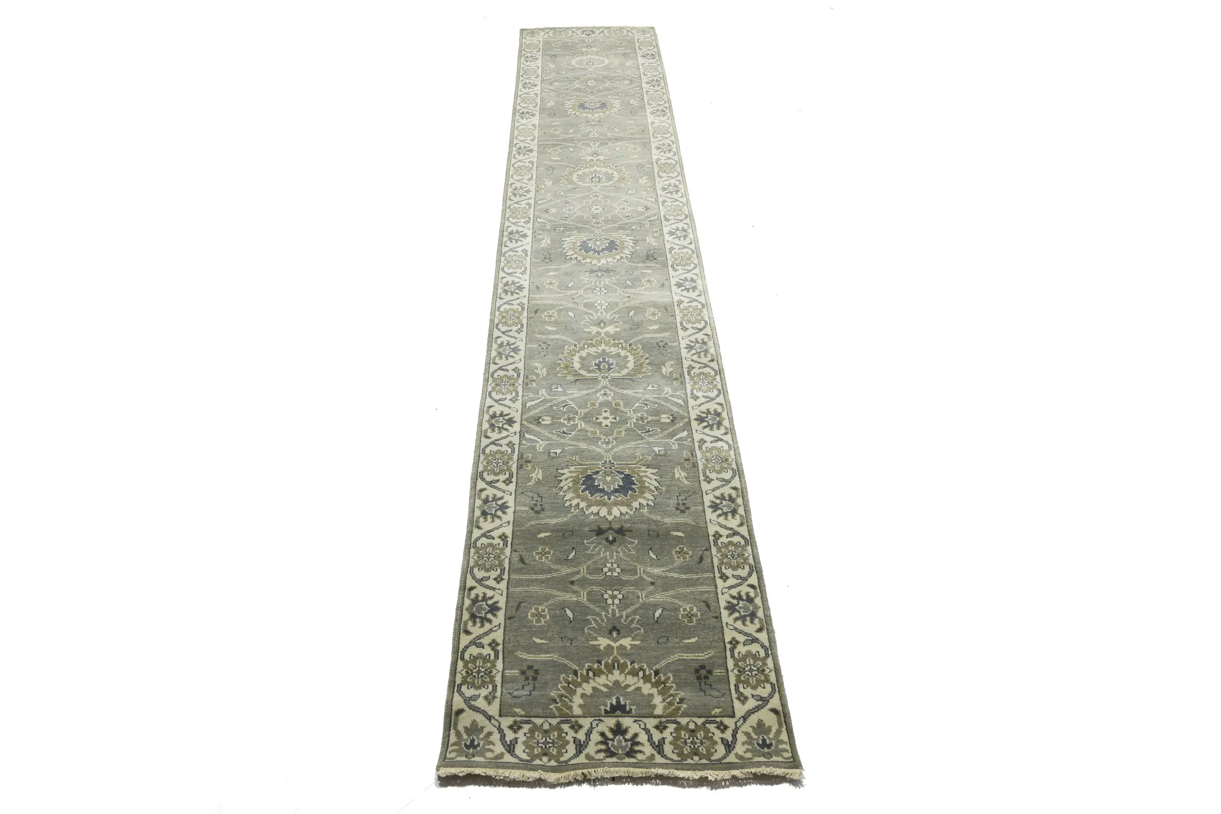 Handmade 2'5X13'5 Taupe Oriental runner made with vegetable dyes (fine wool pile and cotton foundation), superior knot count, and alluring ancient designs. This Oriental runner never will go out of style and would be among your most valuable treasures.