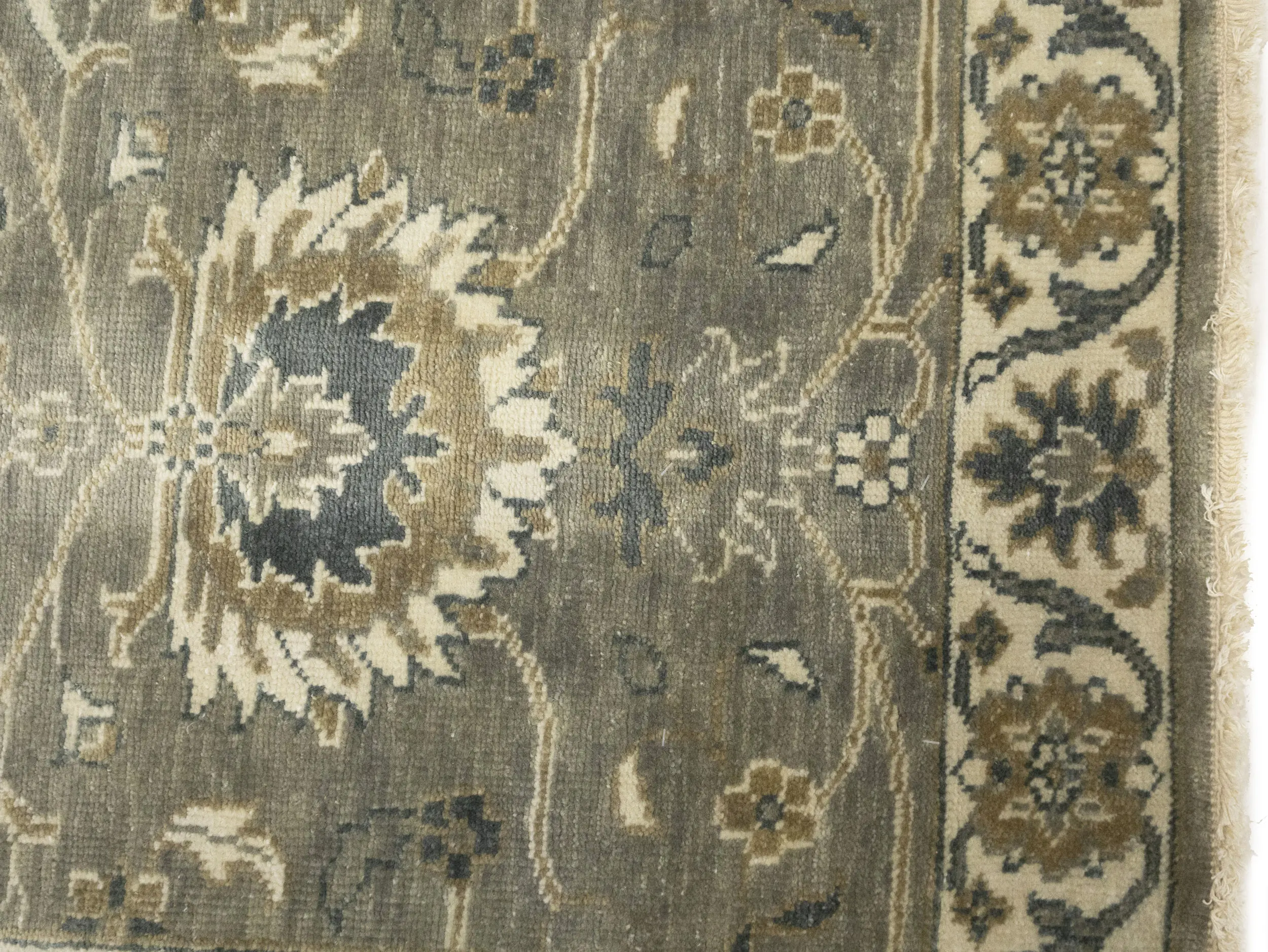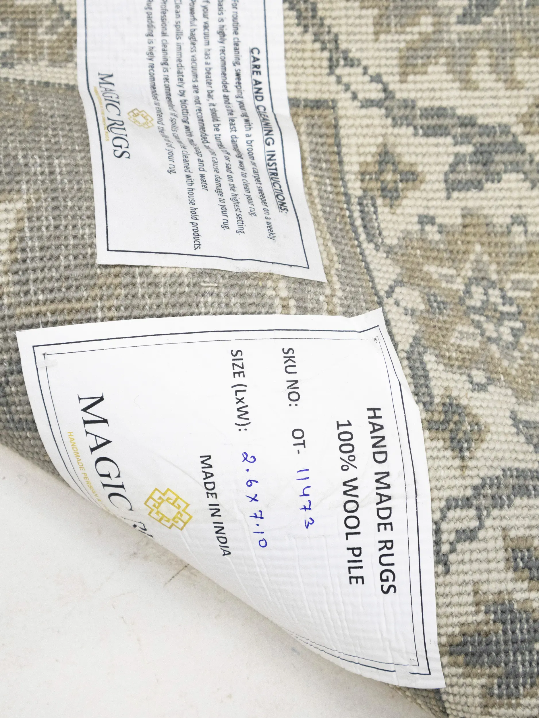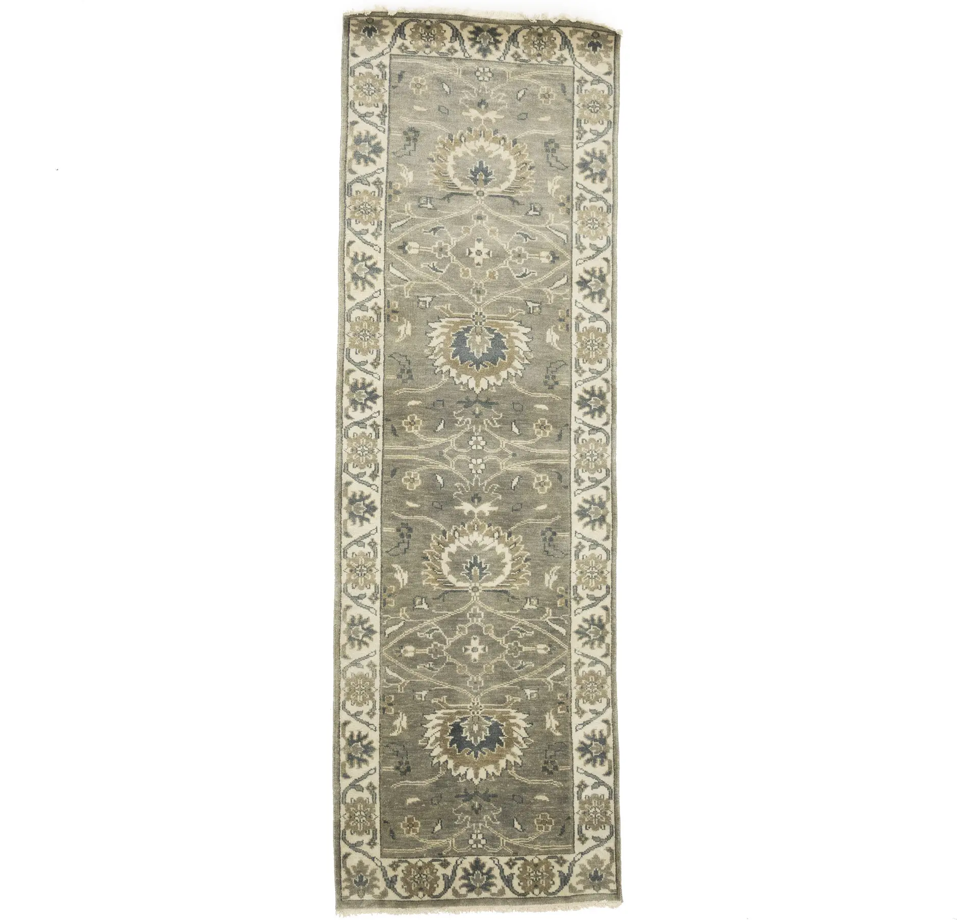 This genuine 2'6X8 taupe new Oriental runner was made by the hands of gifted weavers inspired by a variety of spectacular artistic designs, to recreate the aged look of the original piece with a richness of color and ornately patterned background field. What set this vintage style Oriental area runner from the others are the material and dye used (wool pile and cotton foundation), knot count, ancient designs, fantastic grades, and its regional historical connection: it has deep roots, from the story of the people who produced it to the meaning of the symbols and colors displayed across its canvas that have been praised for centuries. This Indian home décor carpet will be completely cozy and inviting that never will go out of style! Also, this Oriental runner would be among your most valuable treasures, it is a great investment that accrues value over time, and it will last for generations because was woven with high-quality, all-natural wool. Environmentally friendly, opulent yet affordable; this rug will give you a thorough amount of character to help define your living space with elegance and warmth that will capture the eyes and attention of your audience (homeowners, designers, decorators, family and friends).