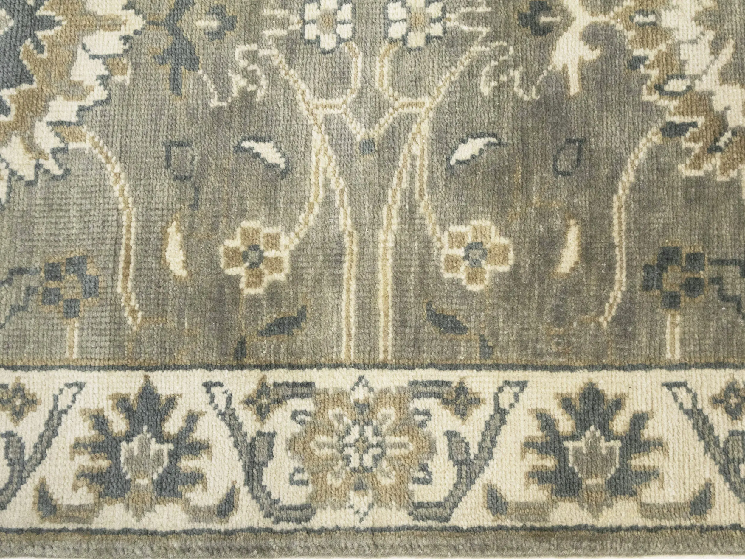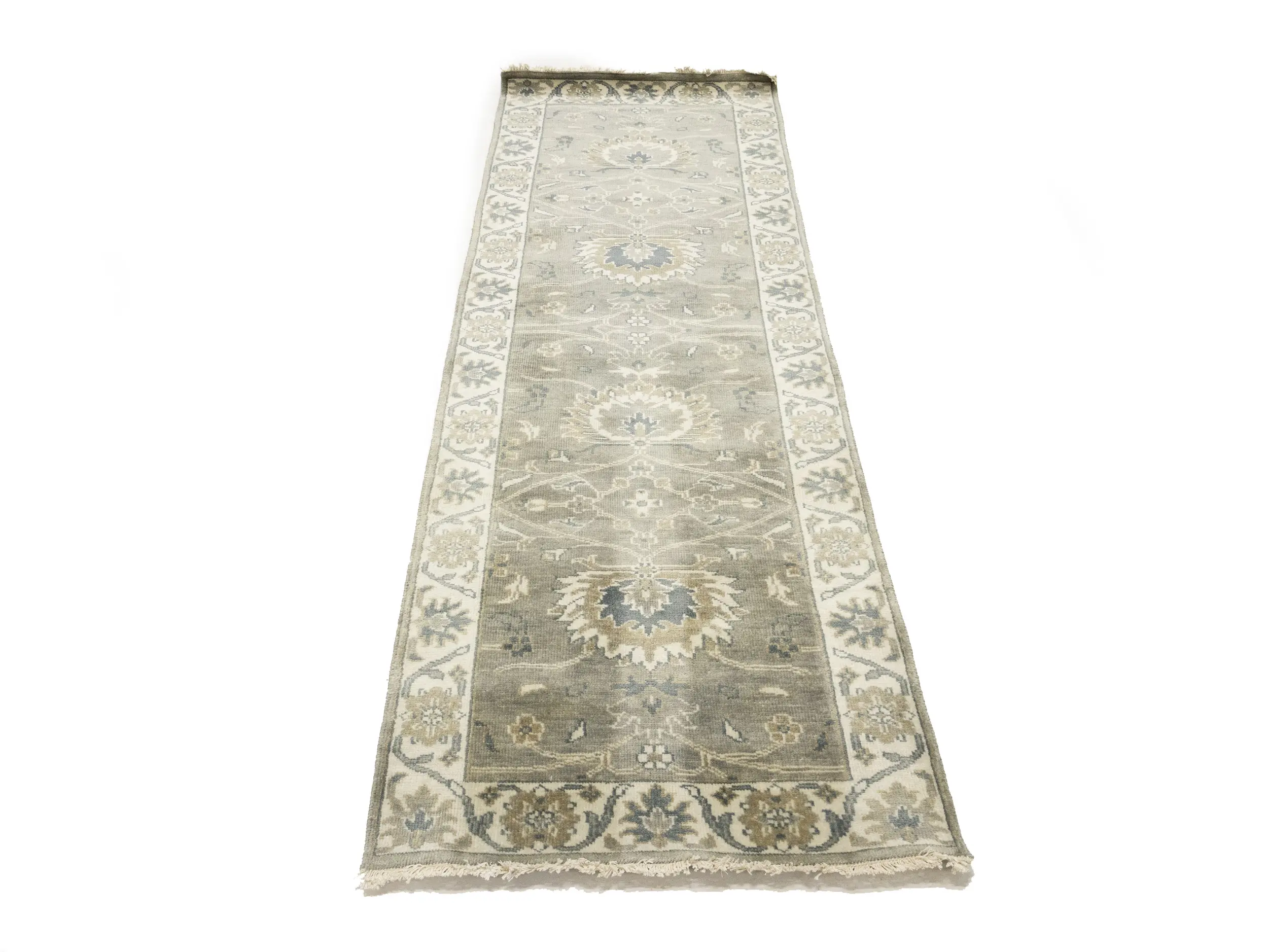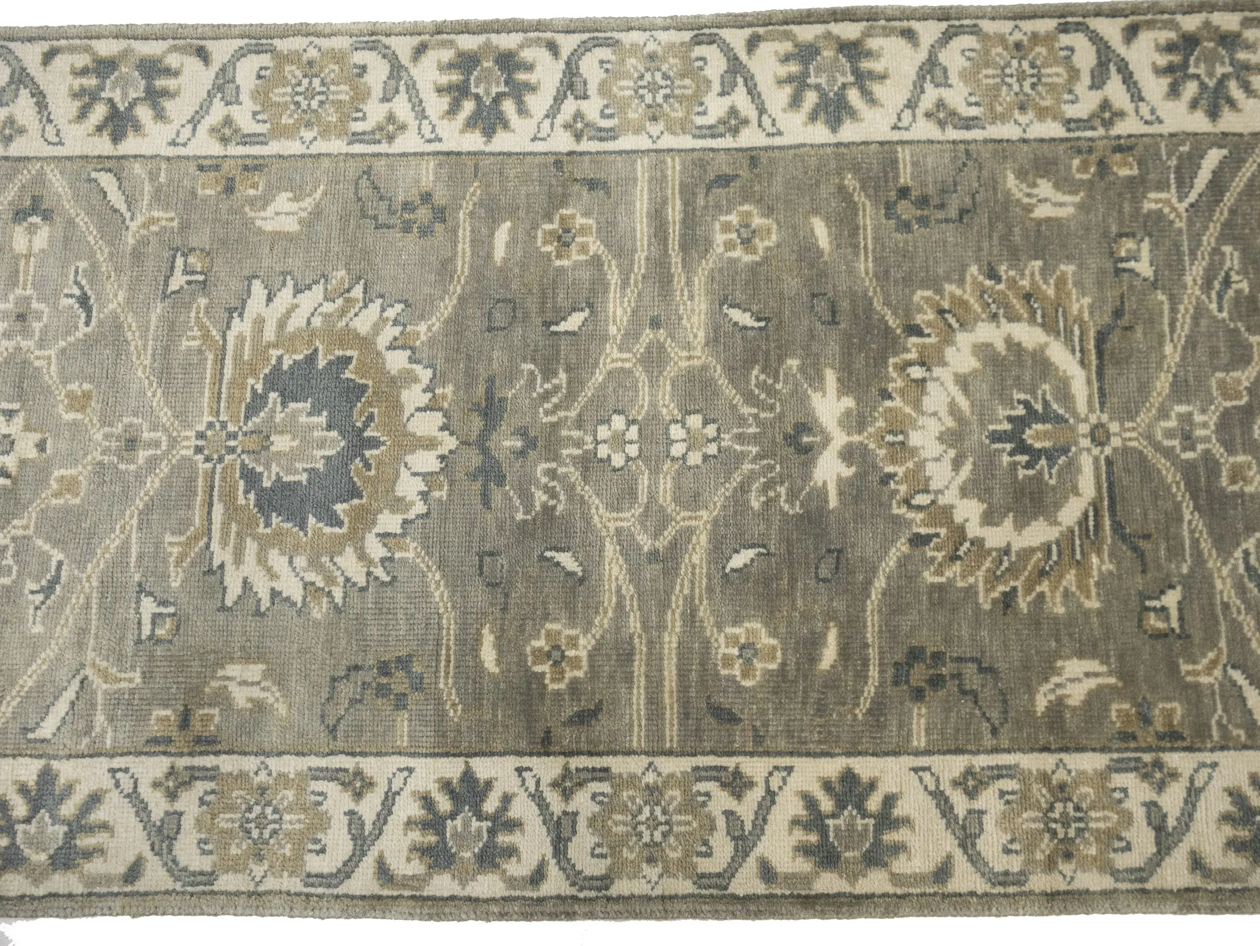 This genuine 2'6X8 taupe new Oriental runner was made by the hands of gifted weavers inspired by a variety of spectacular artistic designs, to recreate the aged look of the original piece with a richness of color and ornately patterned background field. What set this vintage style Oriental area runner from the others are the material and dye used (wool pile and cotton foundation), knot count, ancient designs, fantastic grades, and its regional historical connection: it has deep roots, from the story of the people who produced it to the meaning of the symbols and colors displayed across its canvas that have been praised for centuries. This Indian home décor carpet will be completely cozy and inviting that never will go out of style! Also, this Oriental runner would be among your most valuable treasures, it is a great investment that accrues value over time, and it will last for generations because was woven with high-quality, all-natural wool. Environmentally friendly, opulent yet affordable; this rug will give you a thorough amount of character to help define your living space with elegance and warmth that will capture the eyes and attention of your audience (homeowners, designers, decorators, family and friends).