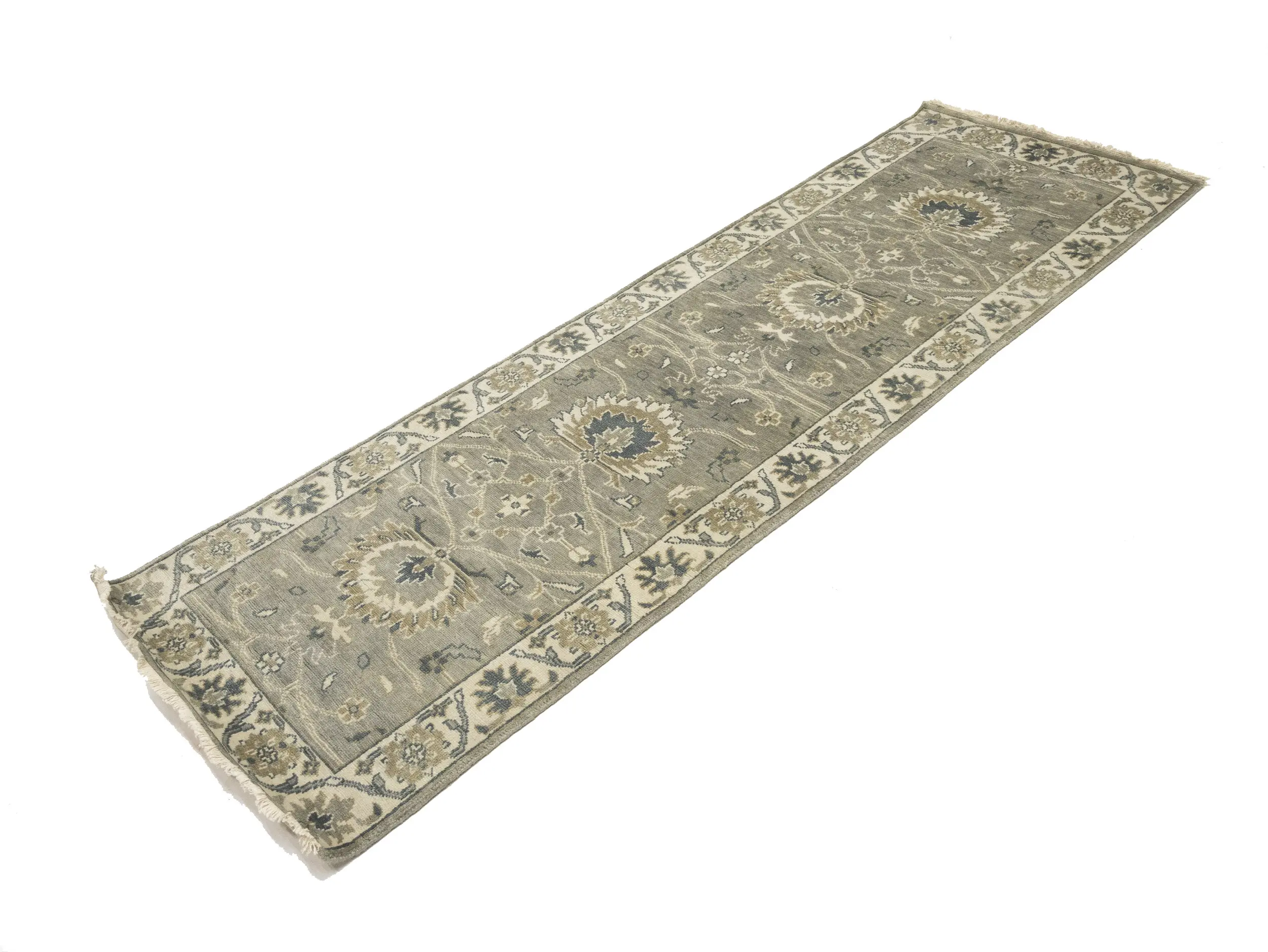 Handmade 2'6X8 taupe oriental runner made with vegetable dyes (fine wool pile and cotton foundation), superior knot count, and appealing ancient designs. This Oriental runner never will go out of style and would be among your most valuable treasures.