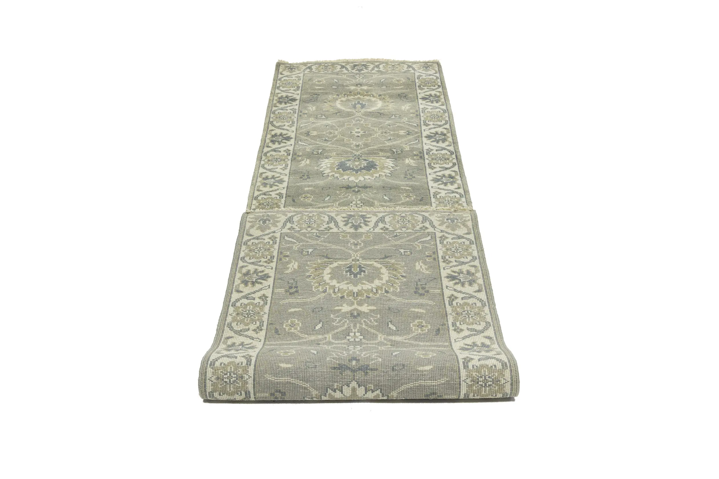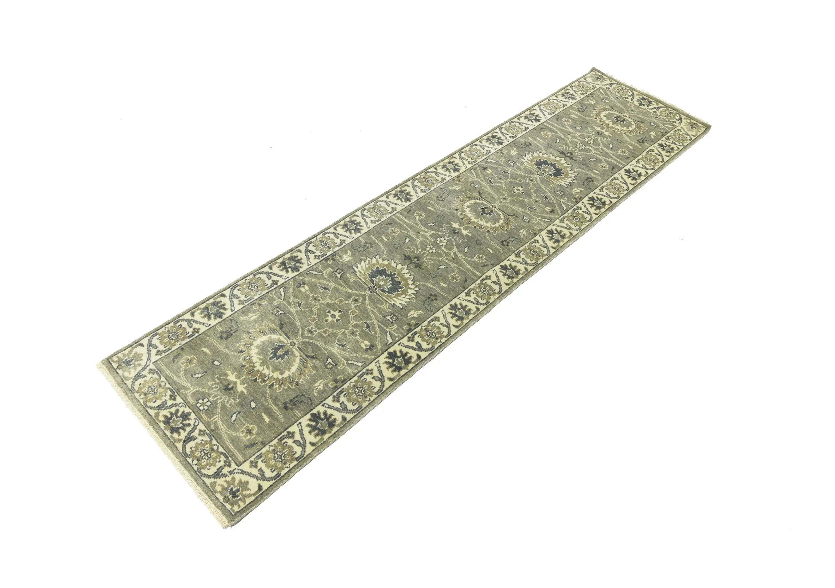 Handmade 2'6X9'8 Taupe Oriental runner made with vegetable dyes (fine wool pile and cotton foundation), superior knot count, and alluring ancient designs. This Oriental runner never will go out of style and would be among your most valuable treasures.