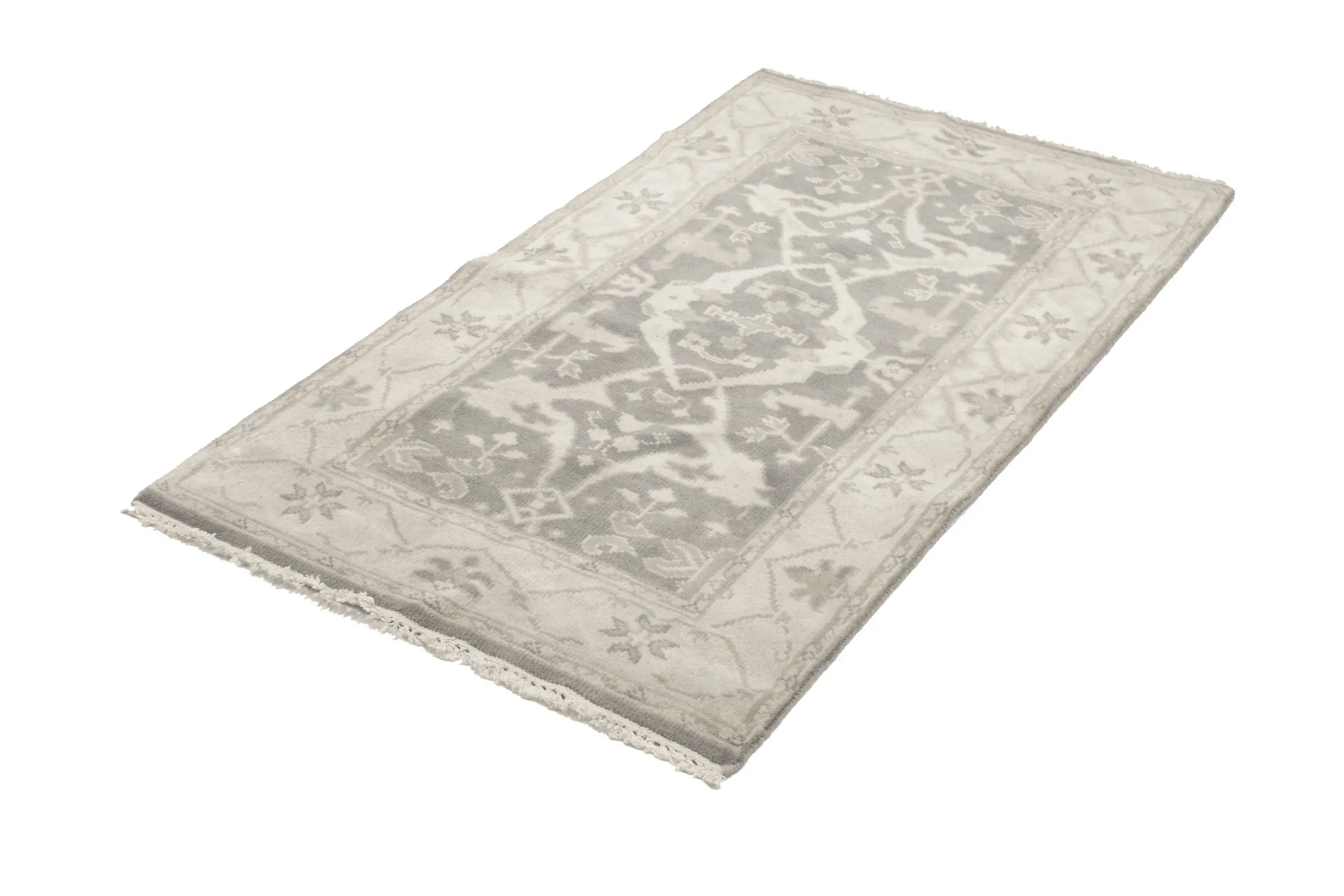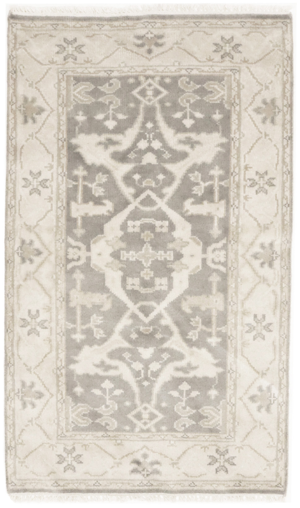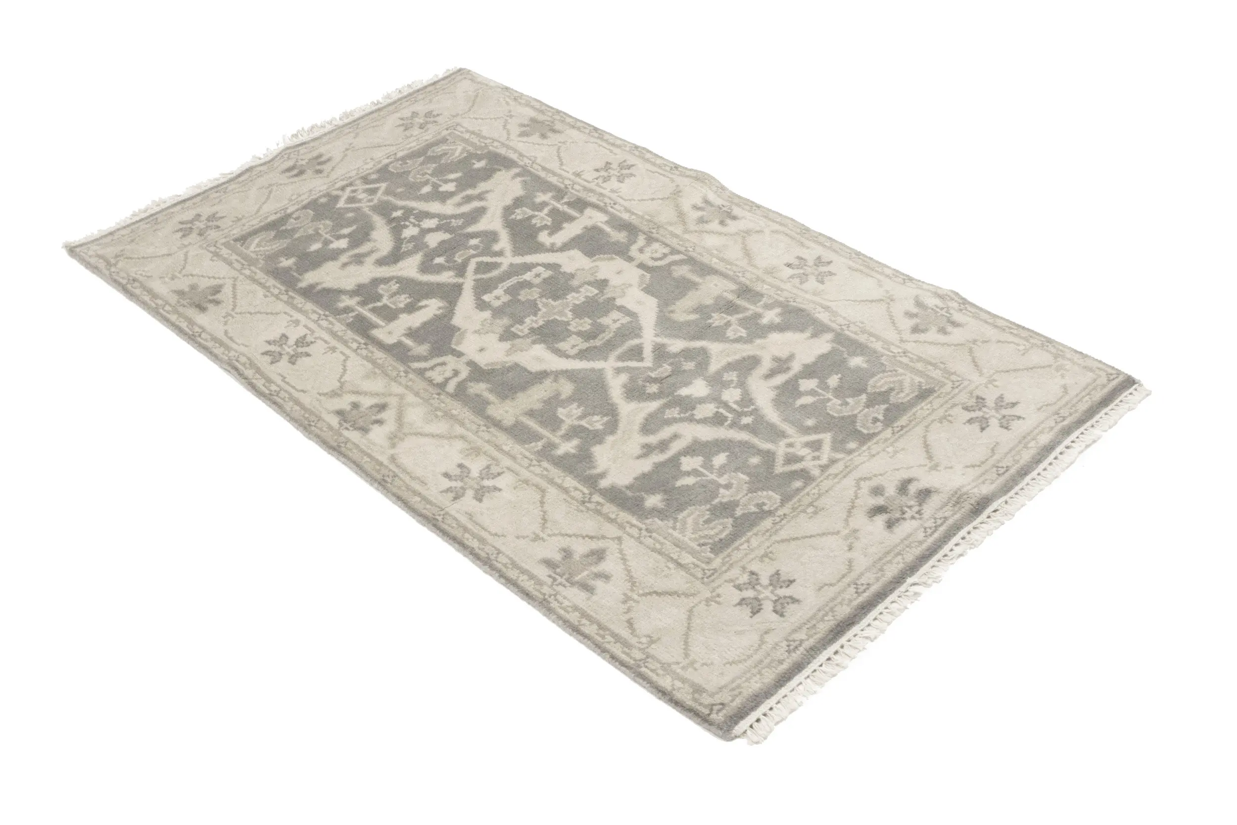 This original 3X5 gray new Oriental rug was finely knotted by the hands of weavers influenced by a variety of amazing artistic designs, to recreate the aged look of the exceptional piece with a richness of color and embellished background field. What set this vintage style Oriental area rug from the others are the material and dye used (wool pile and cotton foundation), knot count, antique designs, fantastic grades, and its regional historical connection: it has deep roots, from the story of the people who produced it to the meaning of the symbols and colors displayed across its canvas that have been praised for centuries. This Indian home décor carpet will be completely cozy and inviting that never will go out of style! Also, this Oriental rug would be among your most valuable treasures, it is a great investment that increase in value over time, and it will last a lifetime because was woven with high-quality, all-natural wool. Eco-friendly, opulent yet affordable; this rug will give you an extra pop of character to help define your home environment with luxury and warmth that will capture the eyes and attention of your audience (homeowners, designers, decorators, family and friends). OT-5585