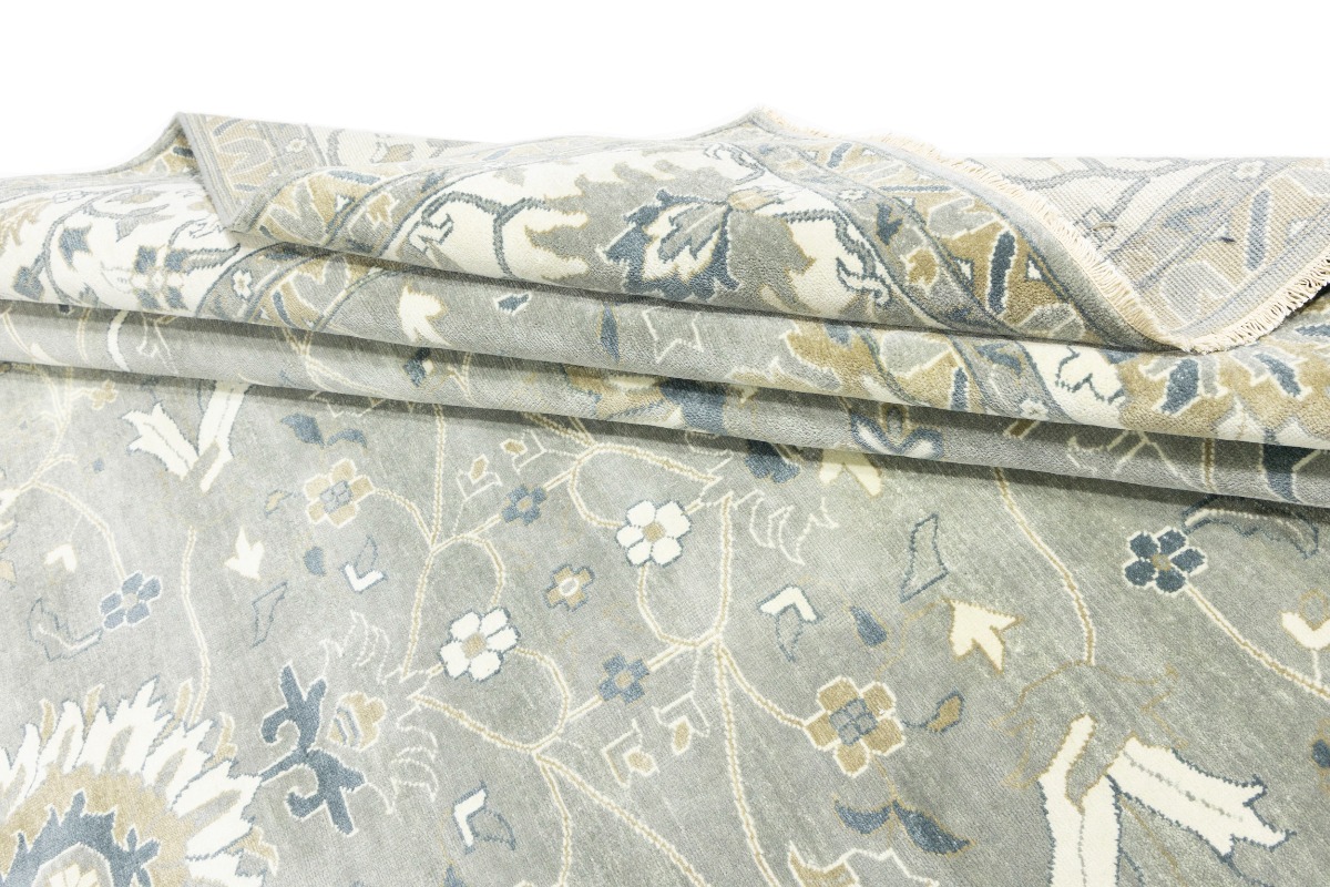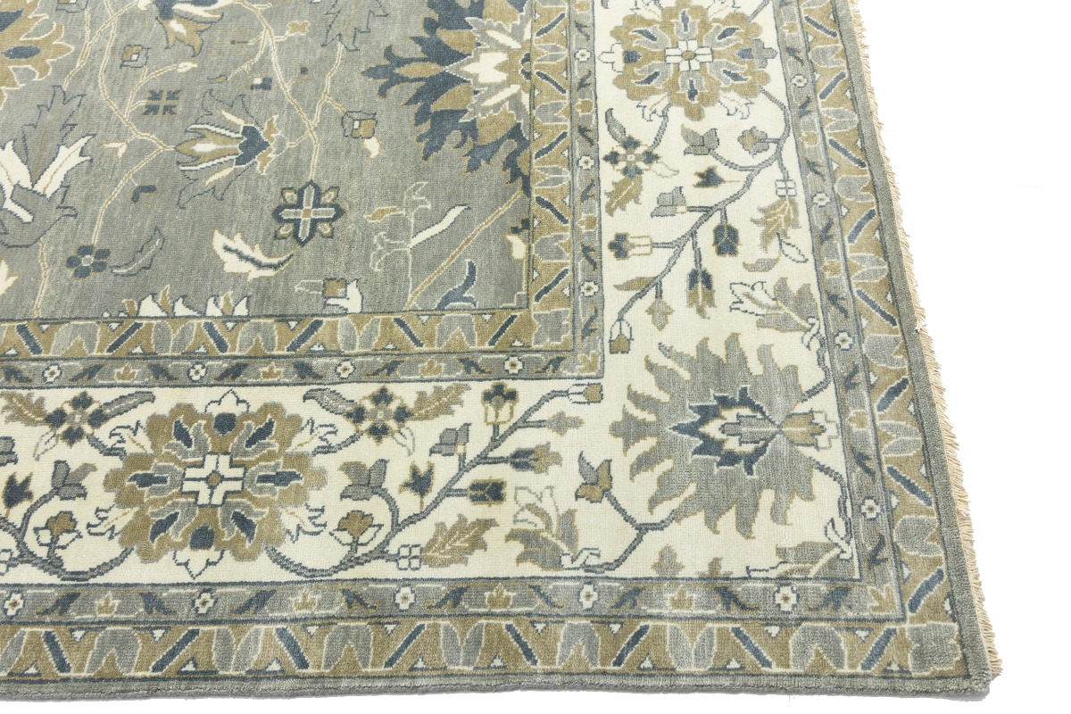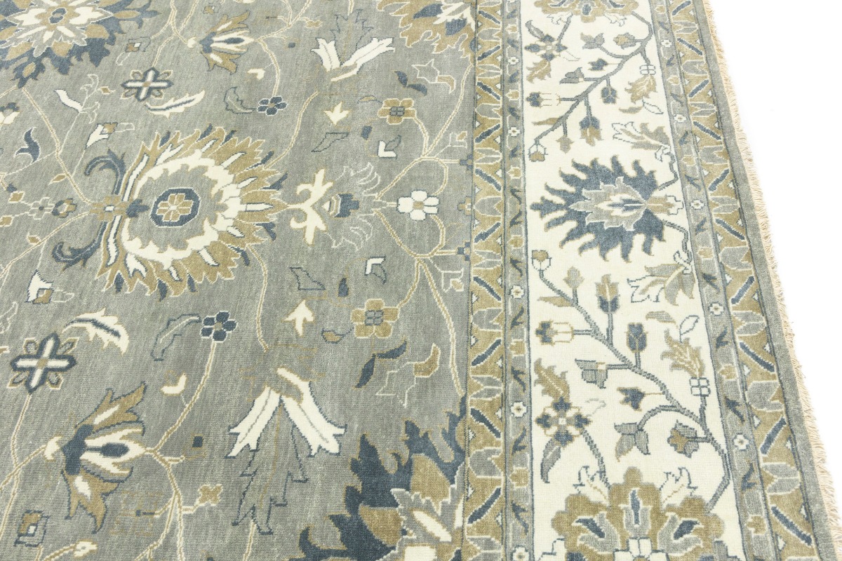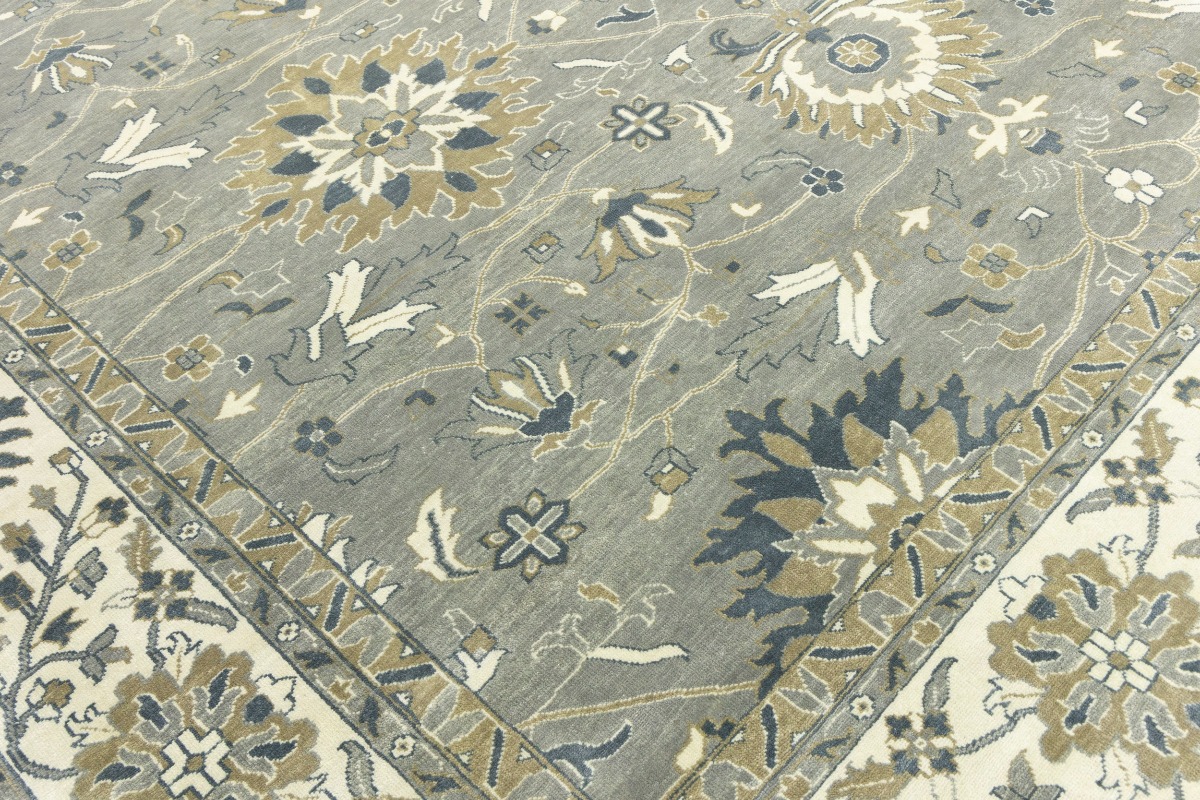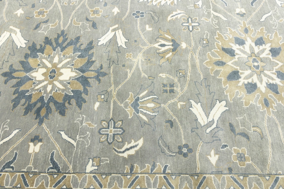 This genuine 12X15 gray new Oriental rug was made by the hands of gifted weavers inspired by a variety of spectacular artistic designs, to recreate the aged look of the original piece with a richness of color and ornately patterned background field. What set this vintage style Oriental area rug from the others are the material and dye used (wool pile and cotton foundation), knot count, ancient designs, fantastic grades, and its regional historical connection: it has deep roots, from the story of the people who produced it to the meaning of the symbols and colors displayed across its canvas that have been praised for centuries. This Indian home décor carpet will be completely cozy and inviting that never will go out of style! Also, this Oriental rug would be among your most valuable treasures, it is a great investment that accrues value over time, and it will last for generations because was woven with high-quality, all-natural wool. Environmentally friendly, opulent yet affordable; this rug will give you a thorough amount of character to help define your living space with elegance and warmth that will capture the eyes and attention of your audience (homeowners, designers, decorators, family and friends). OT-8327