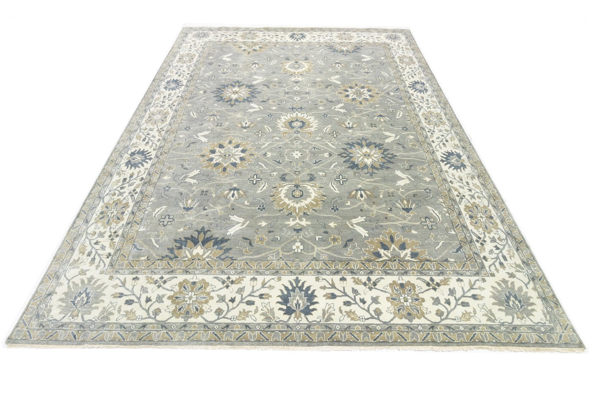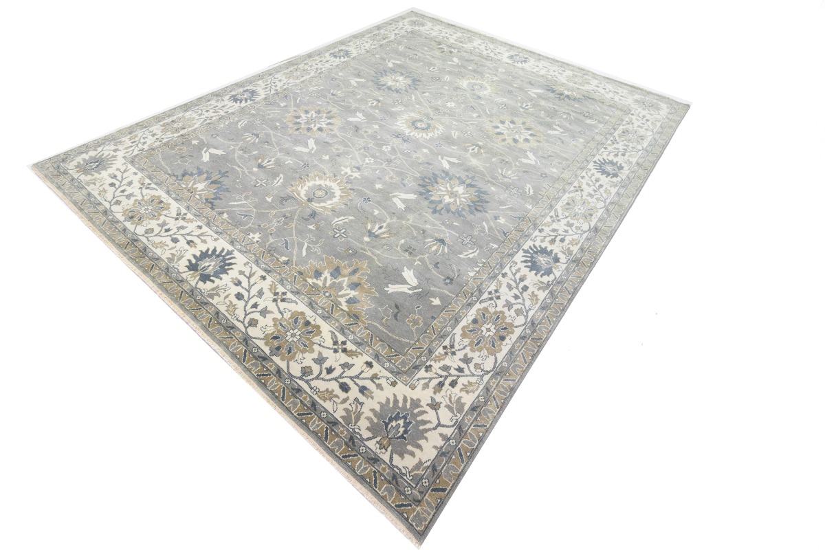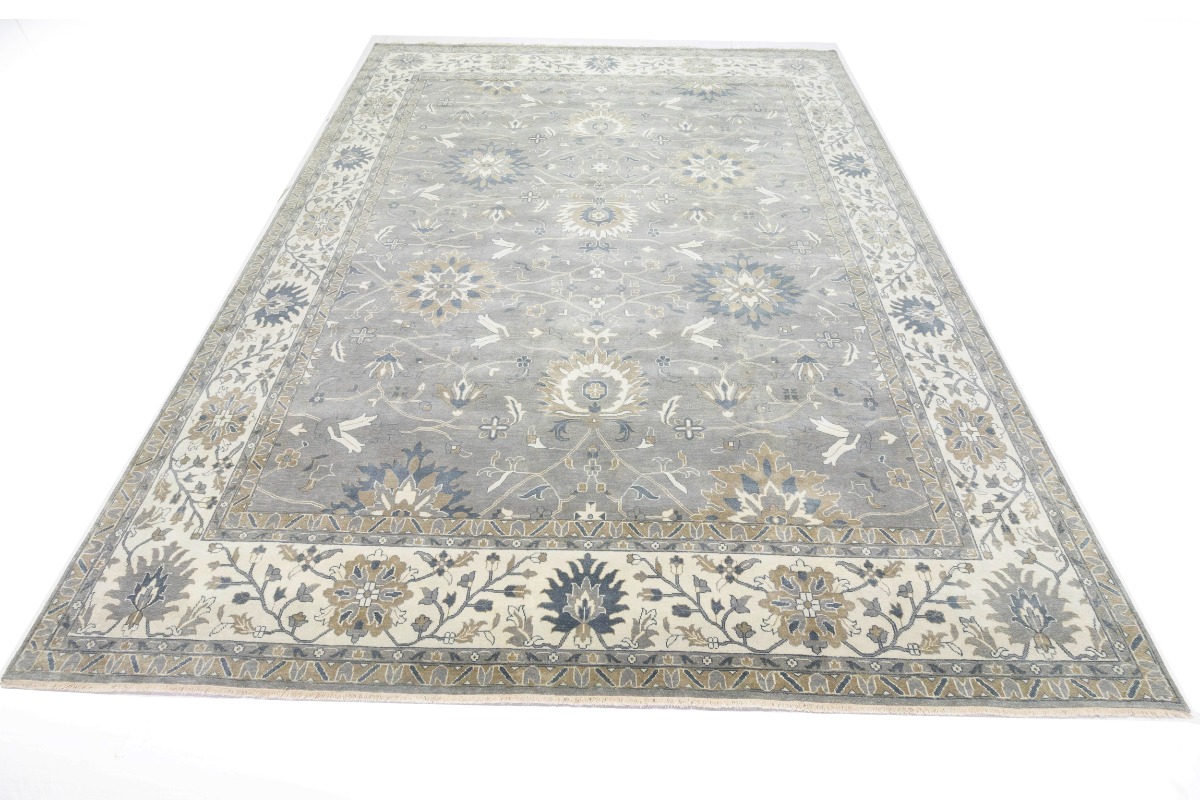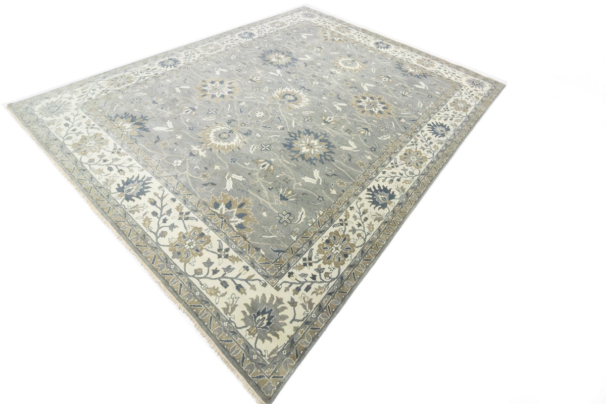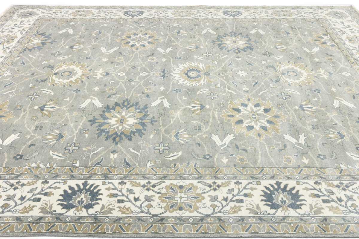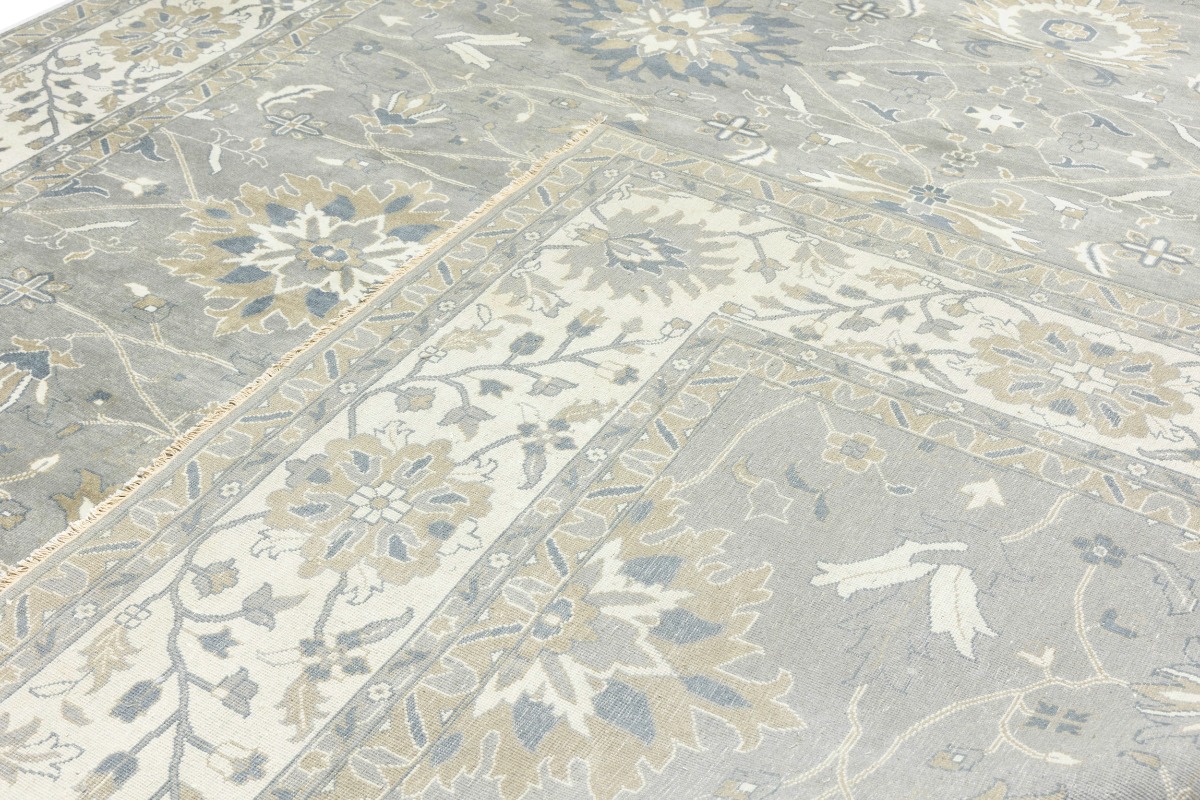 This genuine 12X15 gray new Oriental rug was made by the hands of gifted weavers inspired by a variety of spectacular artistic designs, to recreate the aged look of the original piece with a richness of color and ornately patterned background field. What set this vintage style Oriental area rug from the others are the material and dye used (wool pile and cotton foundation), knot count, ancient designs, fantastic grades, and its regional historical connection: it has deep roots, from the story of the people who produced it to the meaning of the symbols and colors displayed across its canvas that have been praised for centuries. This Indian home décor carpet will be completely cozy and inviting that never will go out of style! Also, this Oriental rug would be among your most valuable treasures, it is a great investment that accrues value over time, and it will last for generations because was woven with high-quality, all-natural wool. Environmentally friendly, opulent yet affordable; this rug will give you a thorough amount of character to help define your living space with elegance and warmth that will capture the eyes and attention of your audience (homeowners, designers, decorators, family and friends). OT-8327