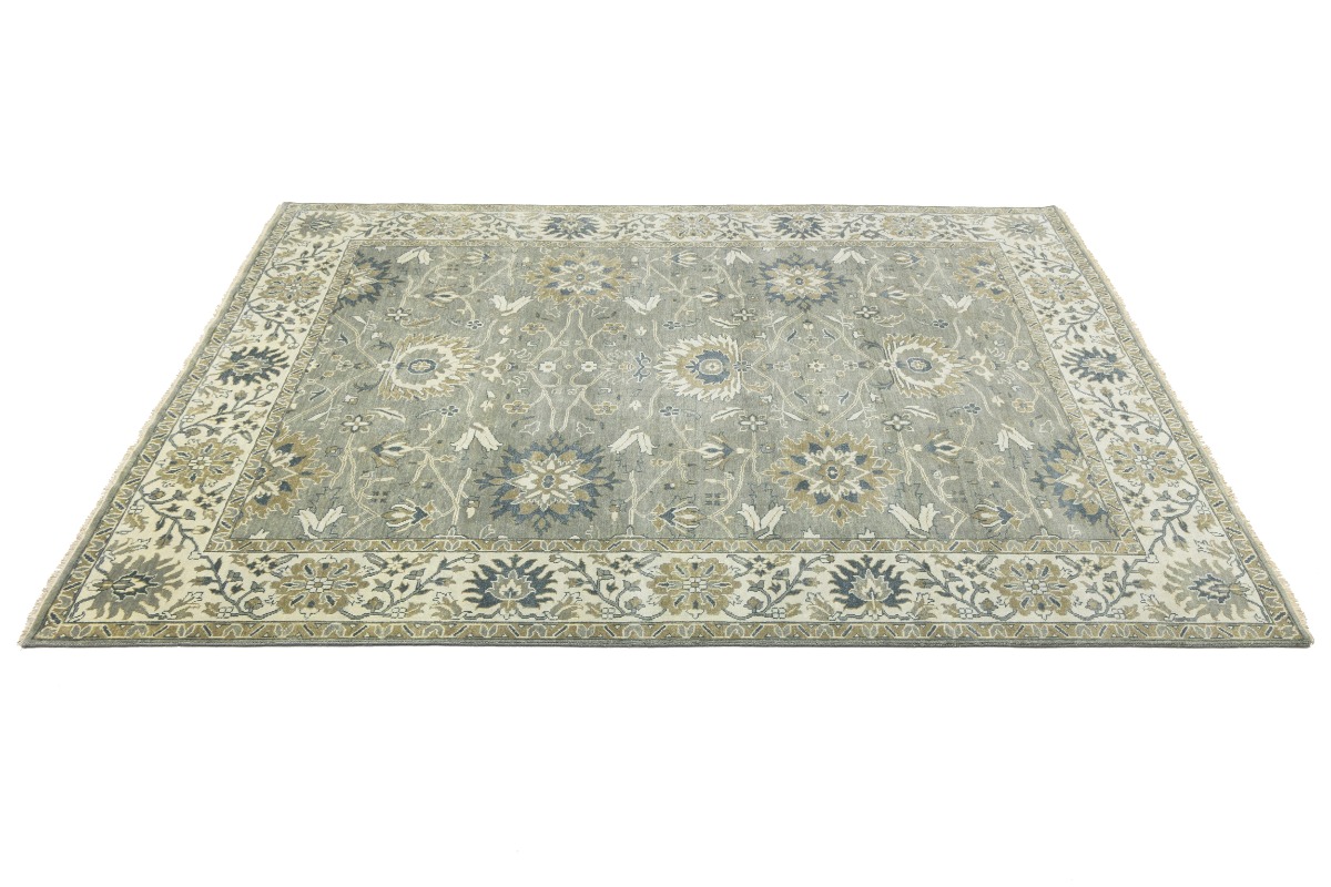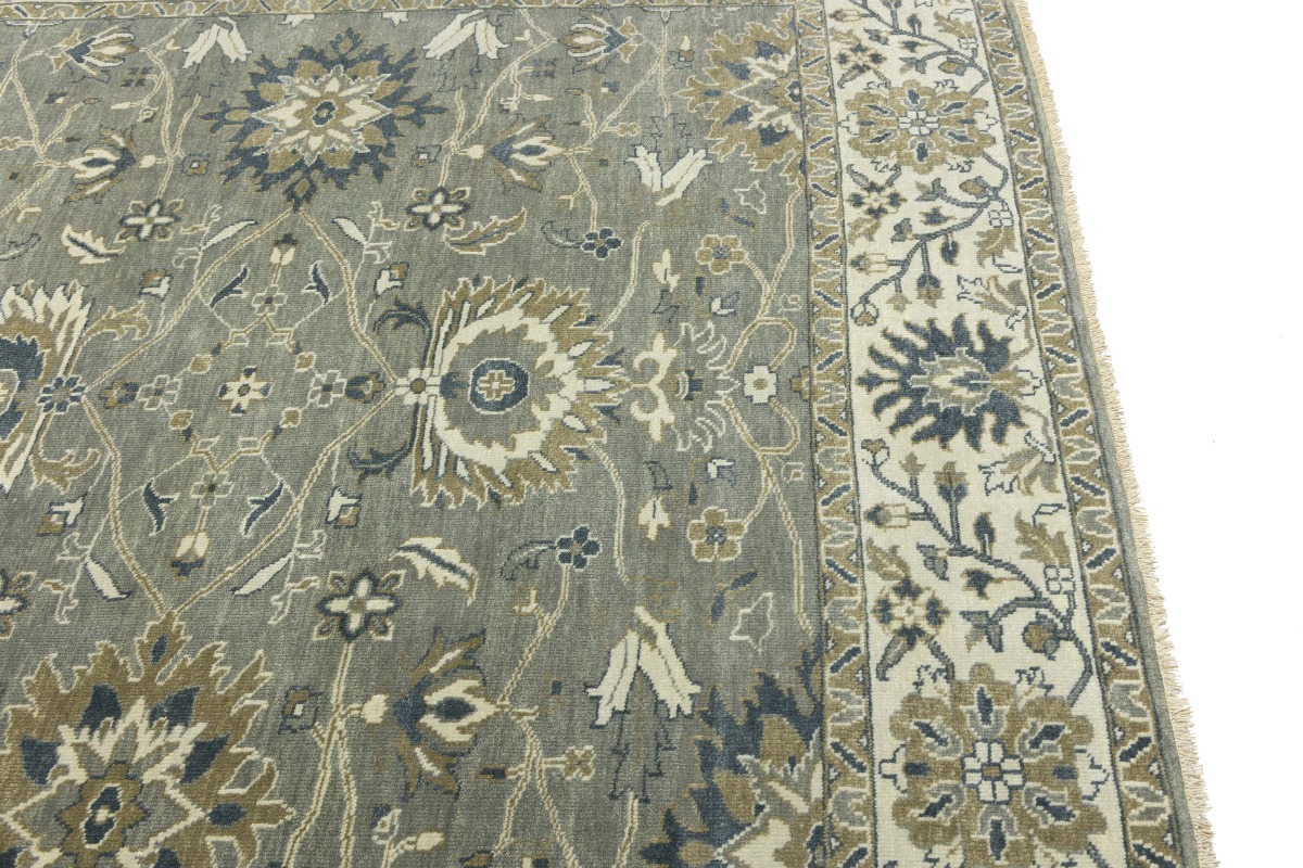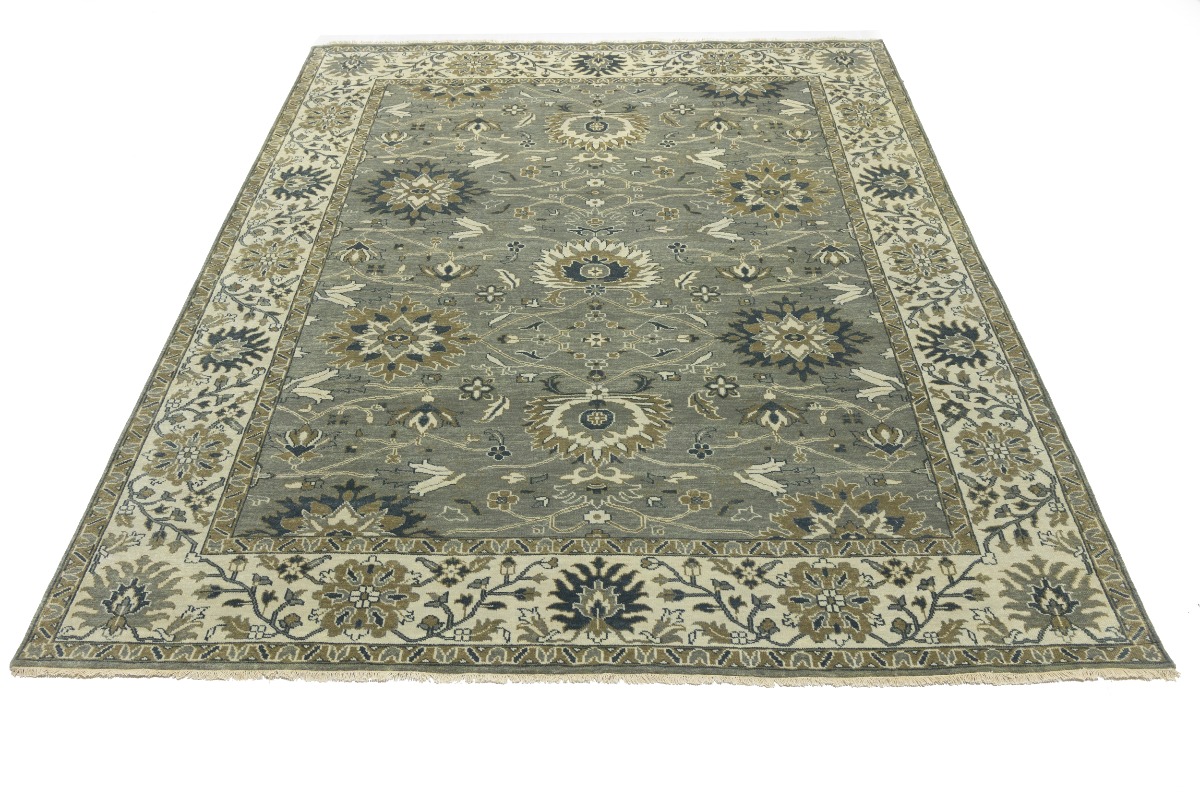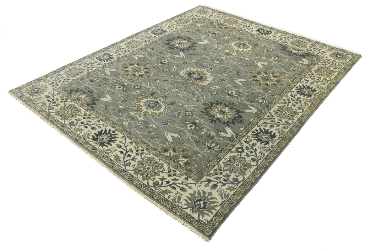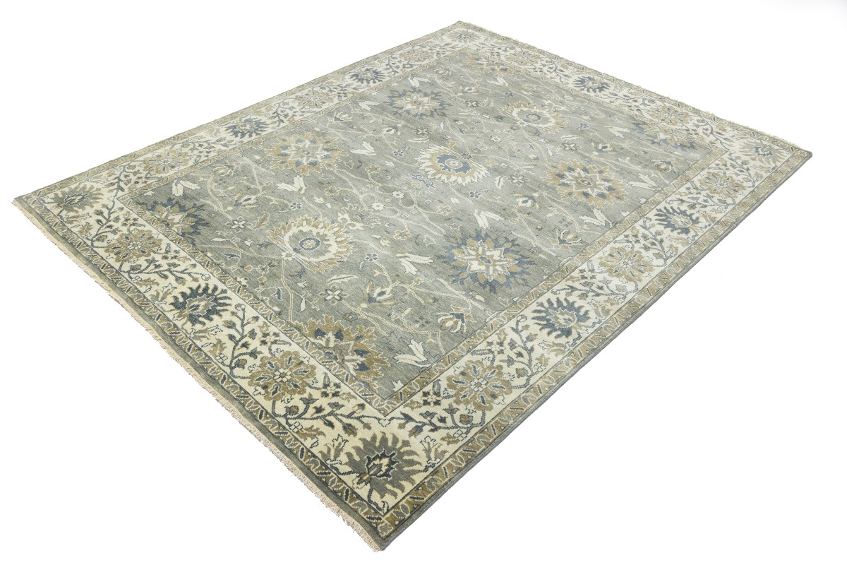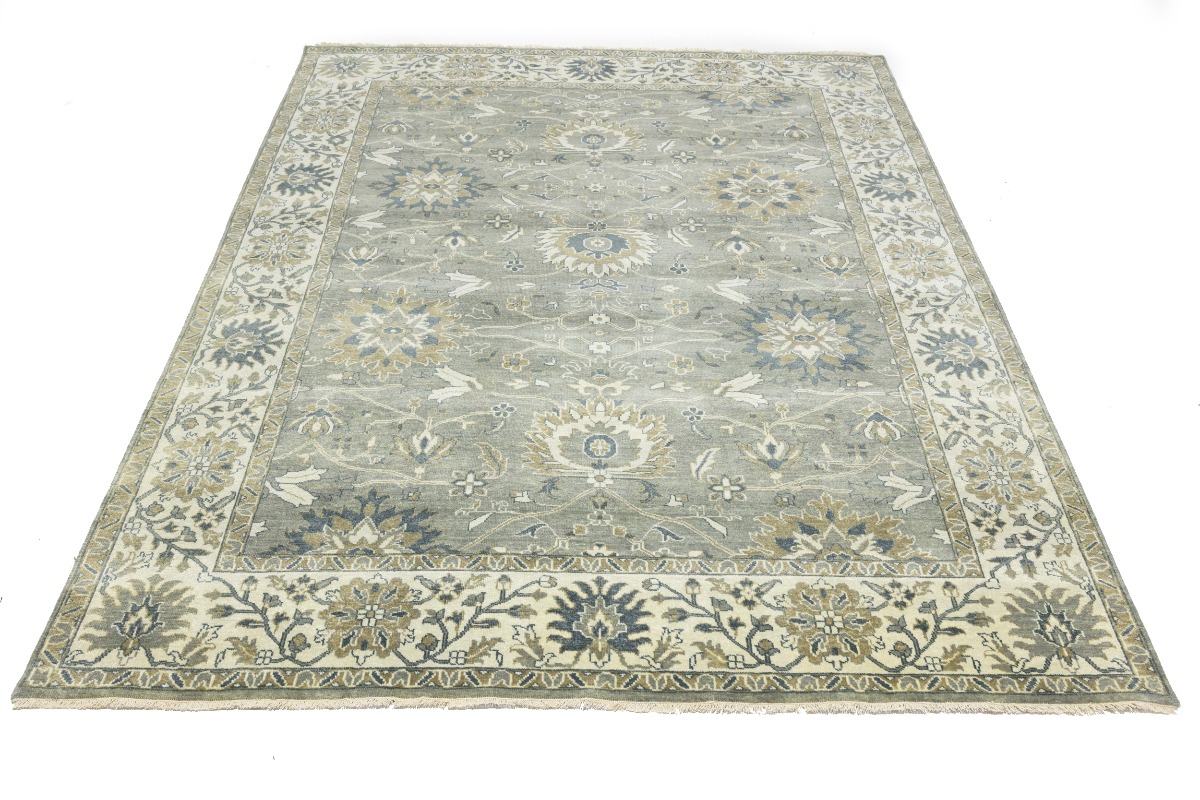 This genuine 8X10 gray new Oriental rug was made by the hands of gifted weavers inspired by a variety of spectacular artistic designs, to recreate the aged look of the original piece with a richness of color and ornately patterned background field. What set this vintage style Oriental area rug from the others are the material and dye used (wool pile and cotton foundation), knot count, ancient designs, fantastic grades, and its regional historical connection: it has deep roots, from the story of the people who produced it to the meaning of the symbols and colors displayed across its canvas that have been praised for centuries. This Indian home décor carpet will be completely cozy and inviting that never will go out of style! Also, this Oriental rug would be among your most valuable treasures, it is a great investment that accrues value over time, and it will last for generations because was woven with high-quality, all-natural wool. Environmentally friendly, opulent yet affordable; this rug will give you a thorough amount of character to help define your living space with elegance and warmth that will capture the eyes and attention of your audience (homeowners, designers, decorators, family and friends). OT-8324