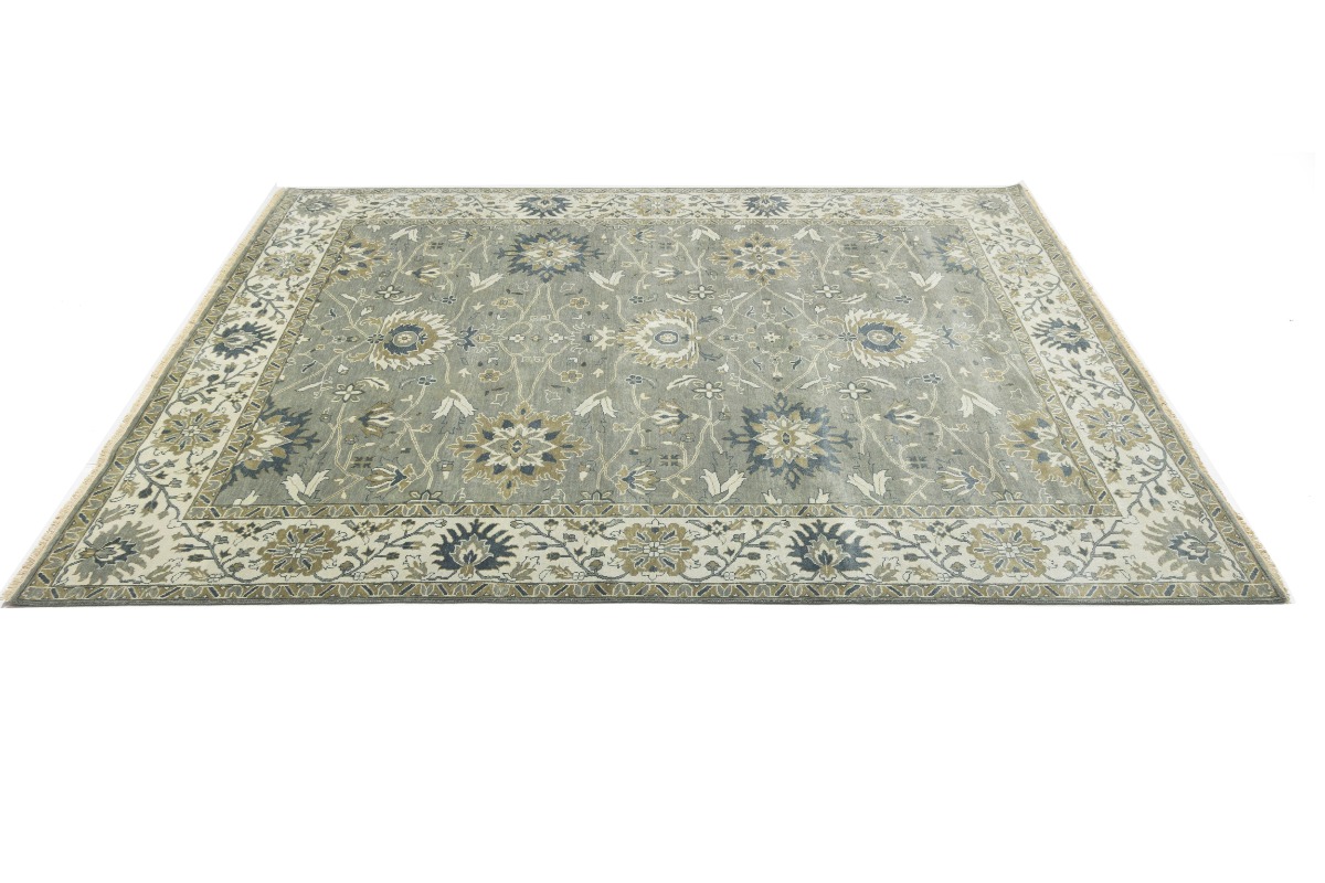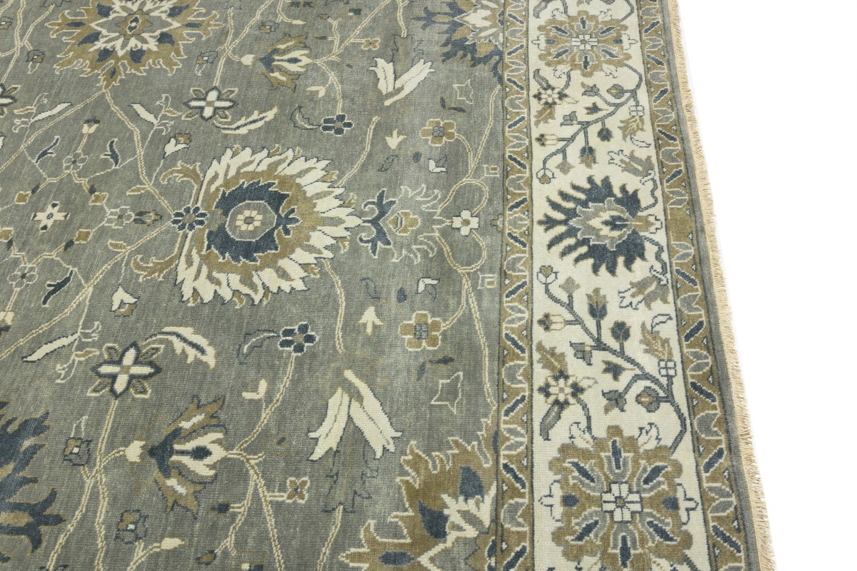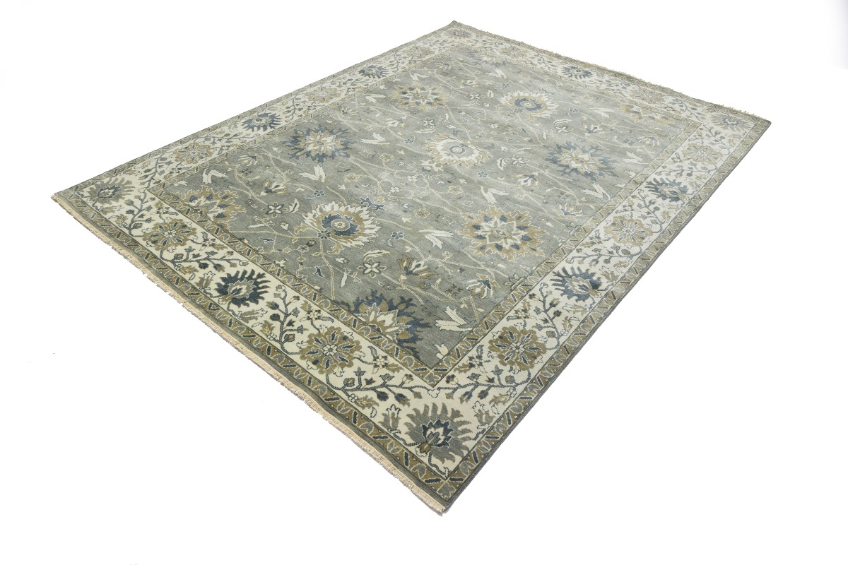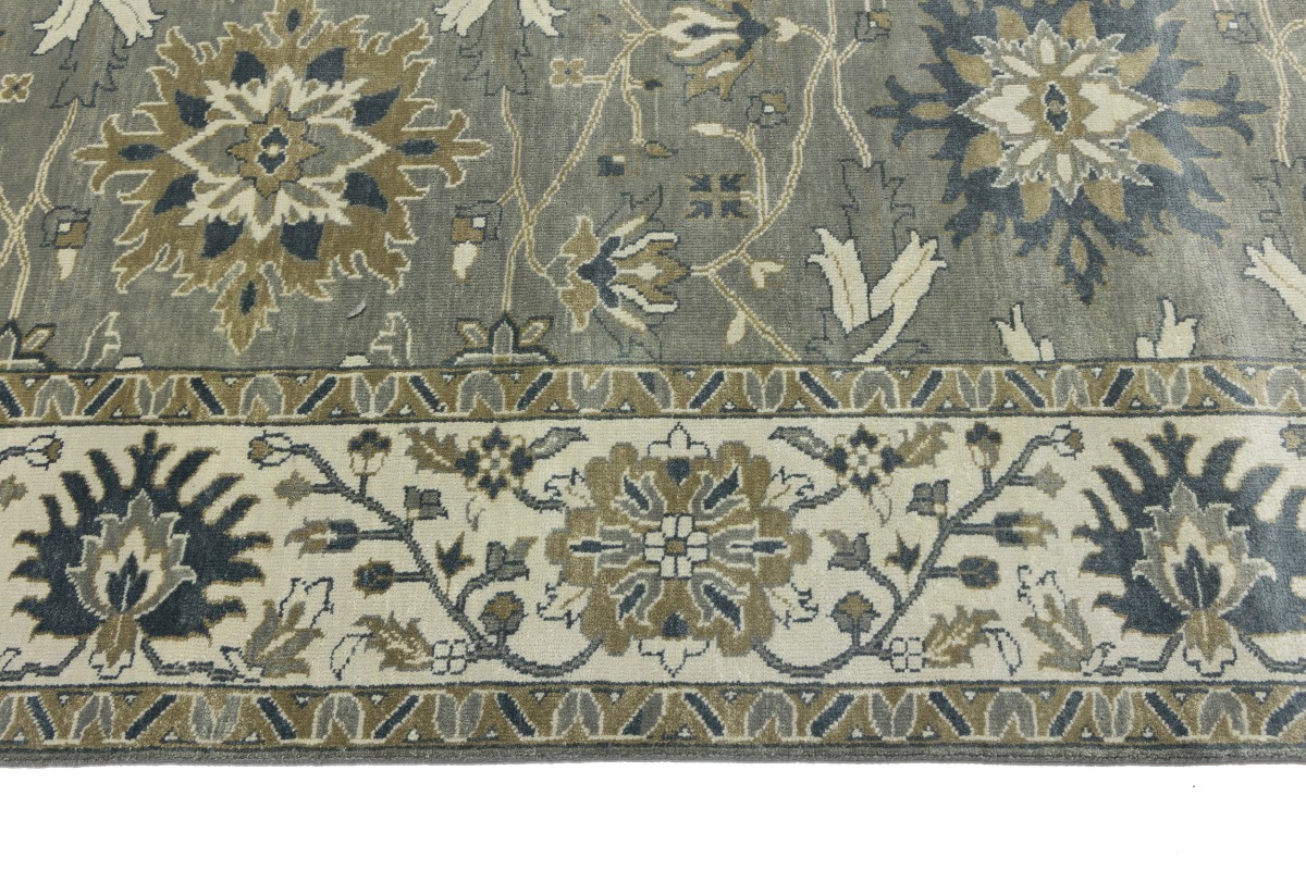 This genuine 9X12 gray new Oriental rug was made by the hands of gifted weavers inspired by a variety of spectacular artistic designs, to recreate the aged look of the original piece with a richness of color and ornately patterned background field. What set this vintage style Oriental area rug from the others are the material and dye used (wool pile and cotton foundation), knot count, ancient designs, fantastic grades, and its regional historical connection: it has deep roots, from the story of the people who produced it to the meaning of the symbols and colors displayed across its canvas that have been praised for centuries. This Indian home décor carpet will be completely cozy and inviting that never will go out of style! Also, this Oriental rug would be among your most valuable treasures, it is a great investment that accrues value over time, and it will last for generations because was woven with high-quality, all-natural wool. Environmentally friendly, opulent yet affordable; this rug will give you a thorough amount of character to help define your living space with elegance and warmth that will capture the eyes and attention of your audience (homeowners, designers, decorators, family and friends). OT-8325