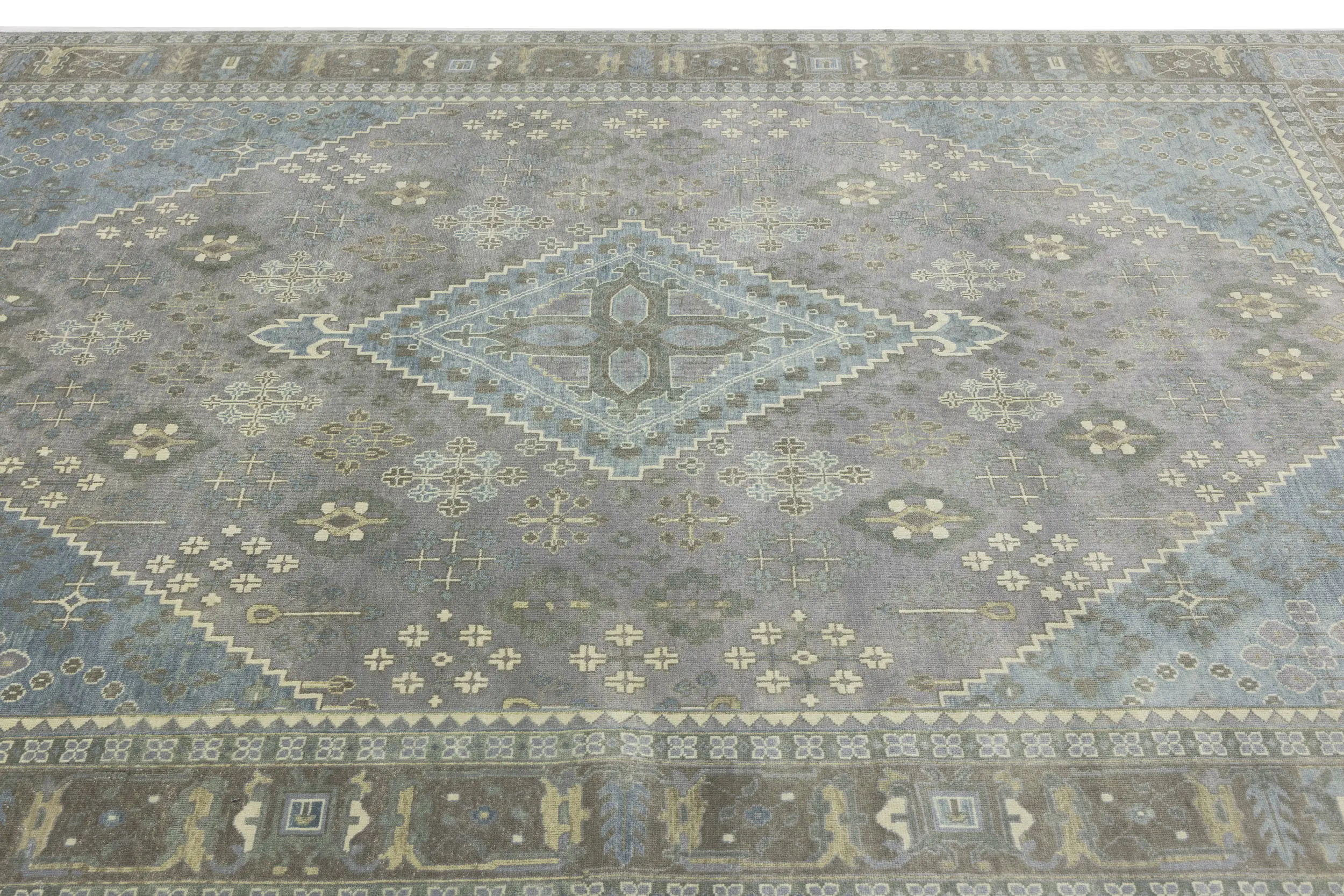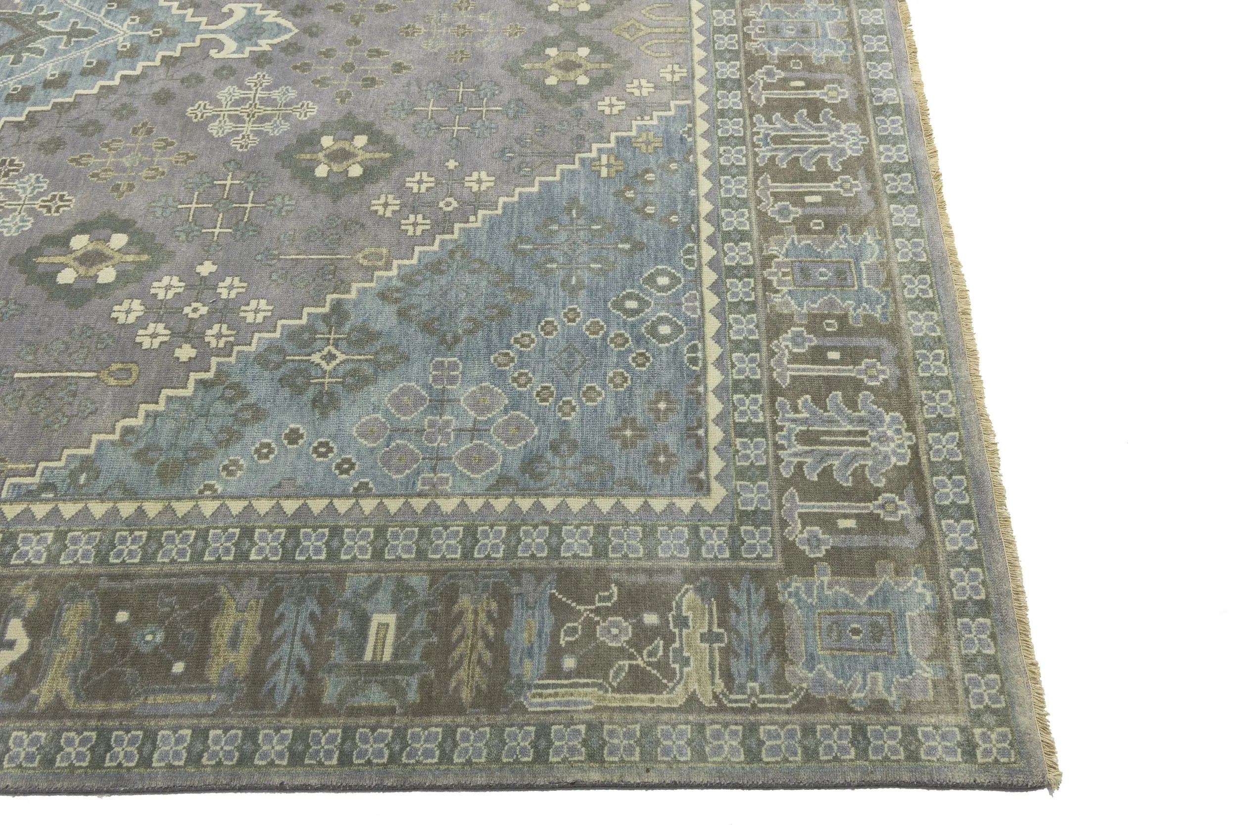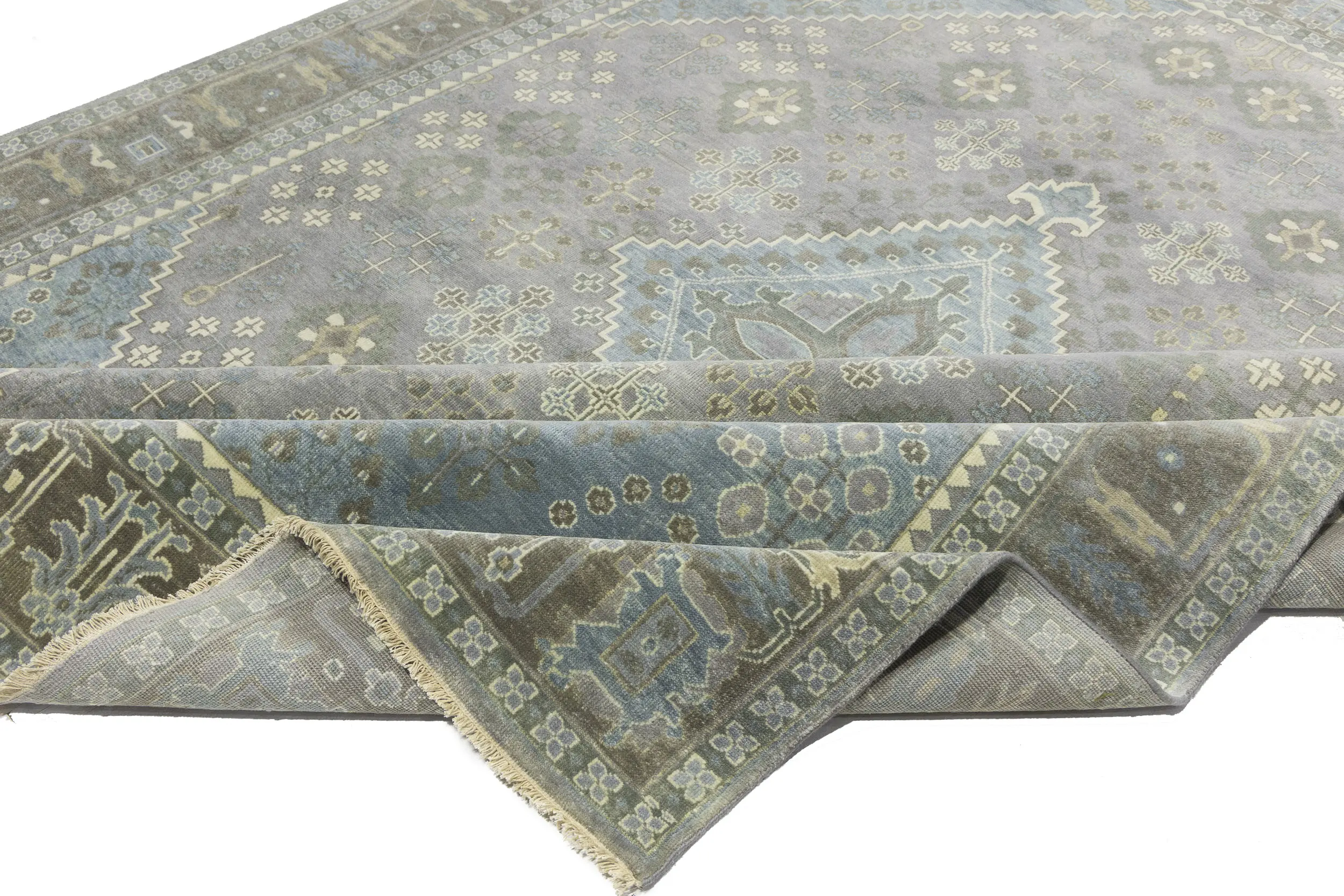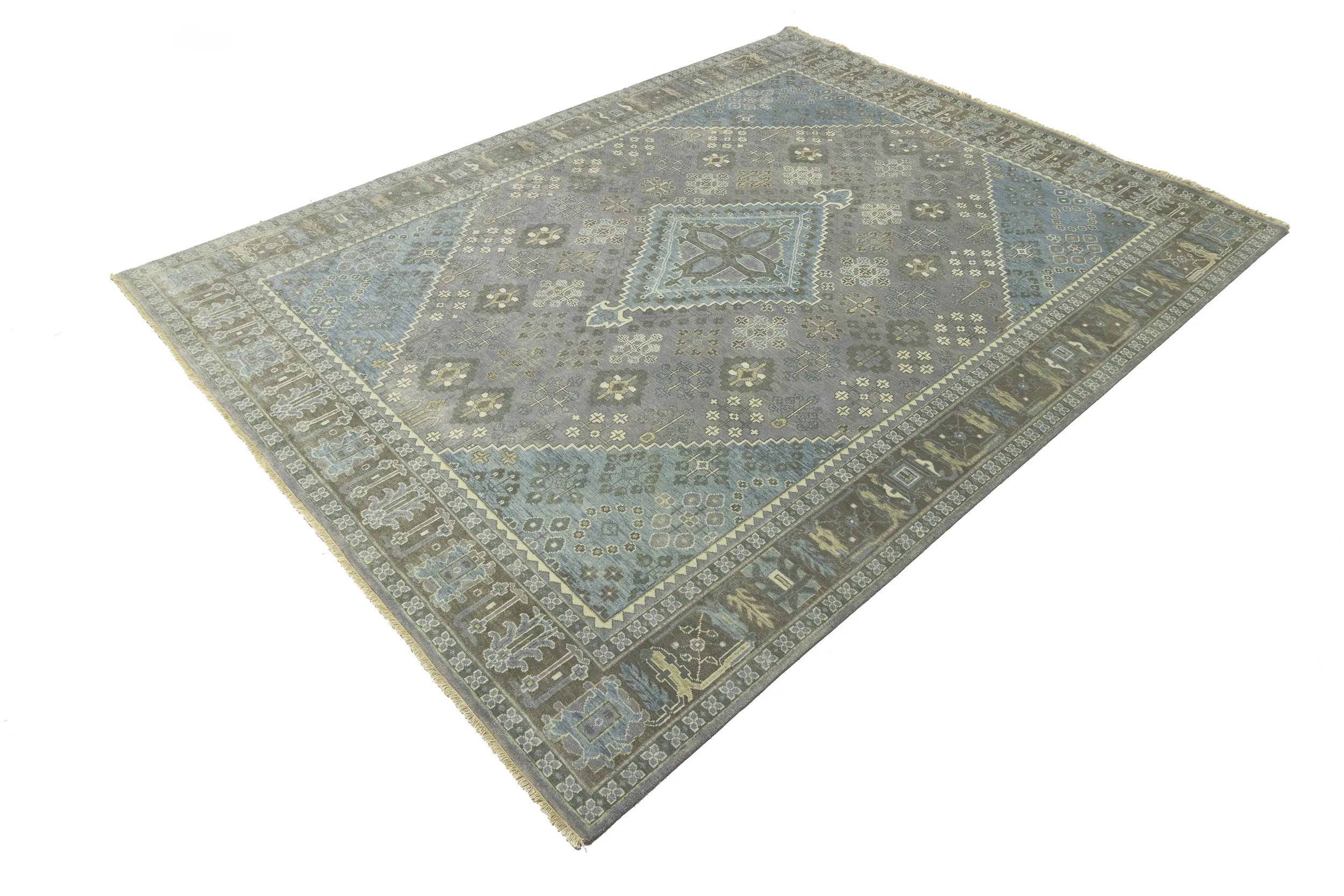 This authentic 9x12 Gray new Oriental rug was crafted by the hands of skilled weavers enthused by a variety of lovely artistic designs, to recreate the aged look of the unique piece with a richness of color and beautifully elaborated background field. What set this vintage style Oriental area rug from the others are the material and dye used (wool pile and cotton foundation), knot count, ancient designs, fantastic grades, and its regional historical connection: it has deep roots, from the story of the people who produced it to the meaning of the symbols and colors displayed across its canvas that have been praised for centuries. This Indian home décor carpet will be completely cozy and inviting that never will go out of style! Also, this Oriental rug would be among your most valuable treasures, it is a great investment that increase in value over time, and it will last for generations because was woven with high-quality, all-natural wool. Environmentally friendly, opulent yet affordable; this rug will give you a thorough amount of character to help define your living space with sophistication and warmth that will capture the eyes and attention of your audience (homeowners, designers, decorators, family and friends). OT-11527