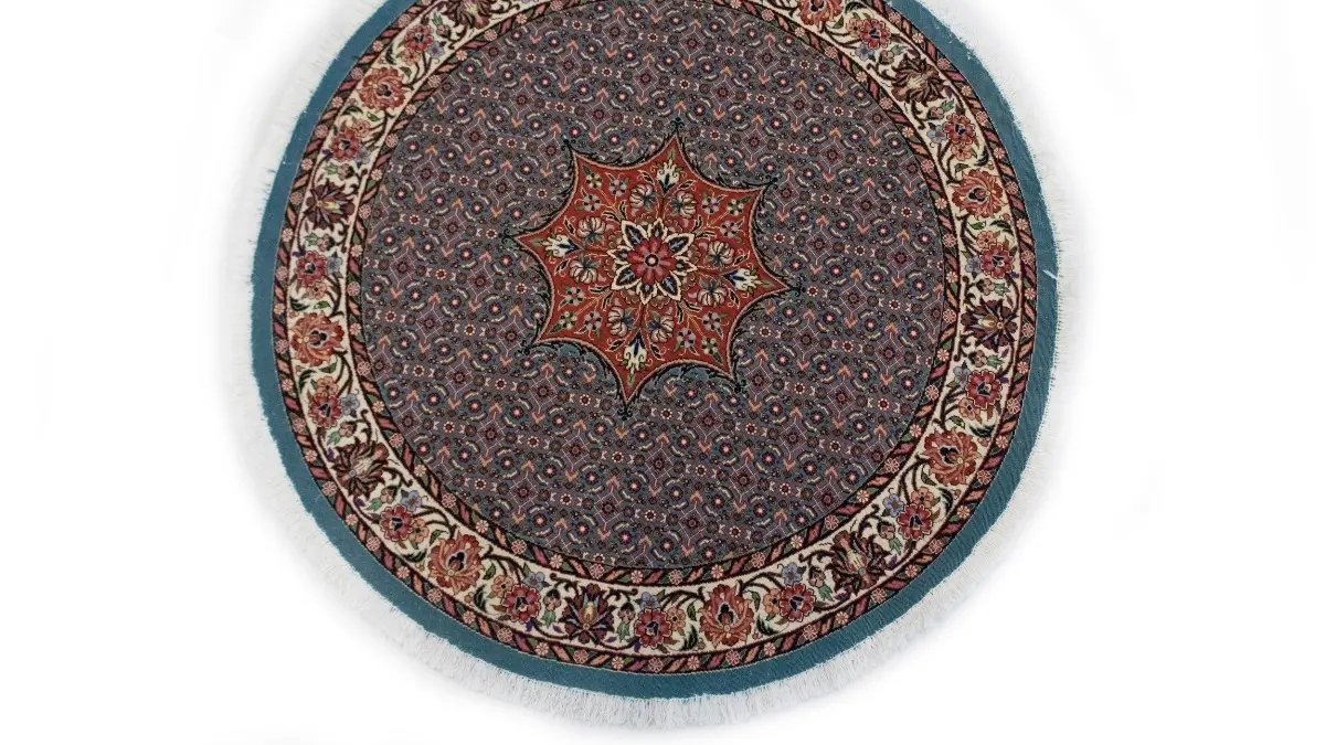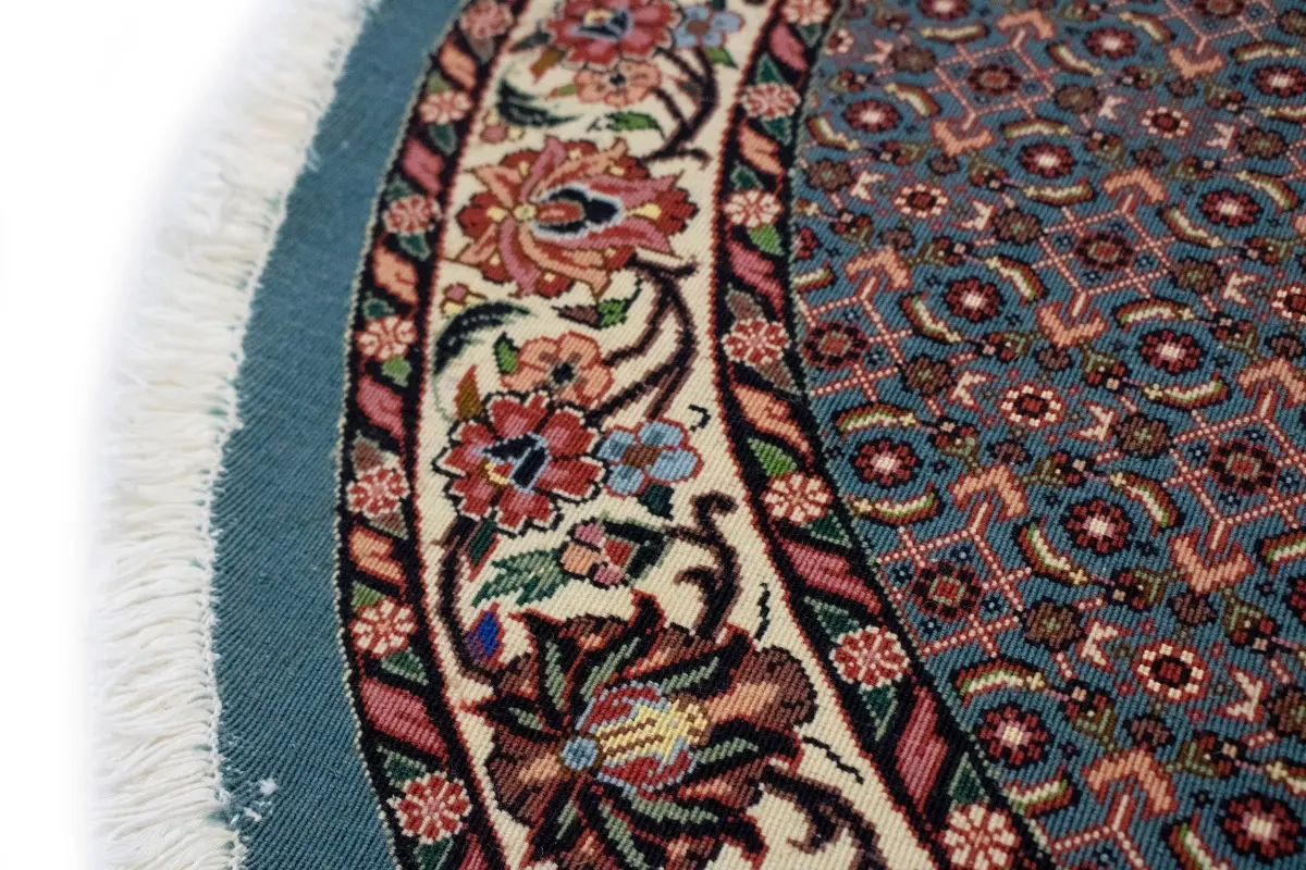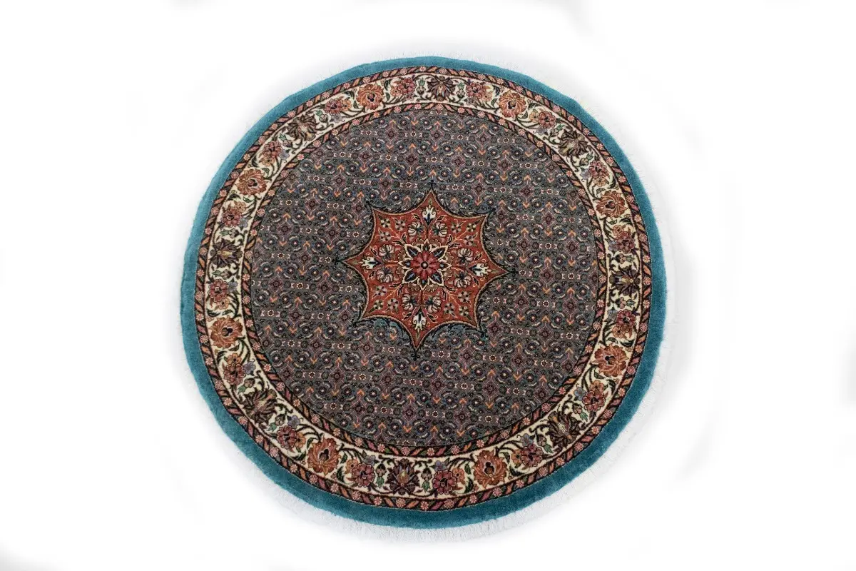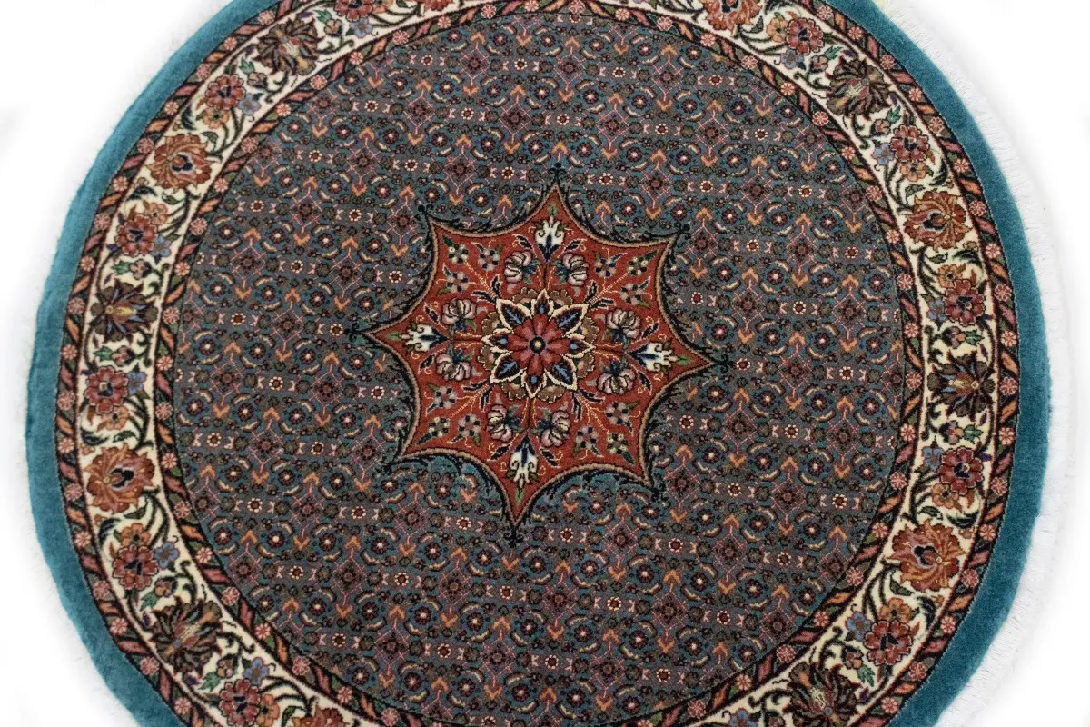 Teal Blue Floral 4X4 Bidjar Halvaei Persian Round Rug
