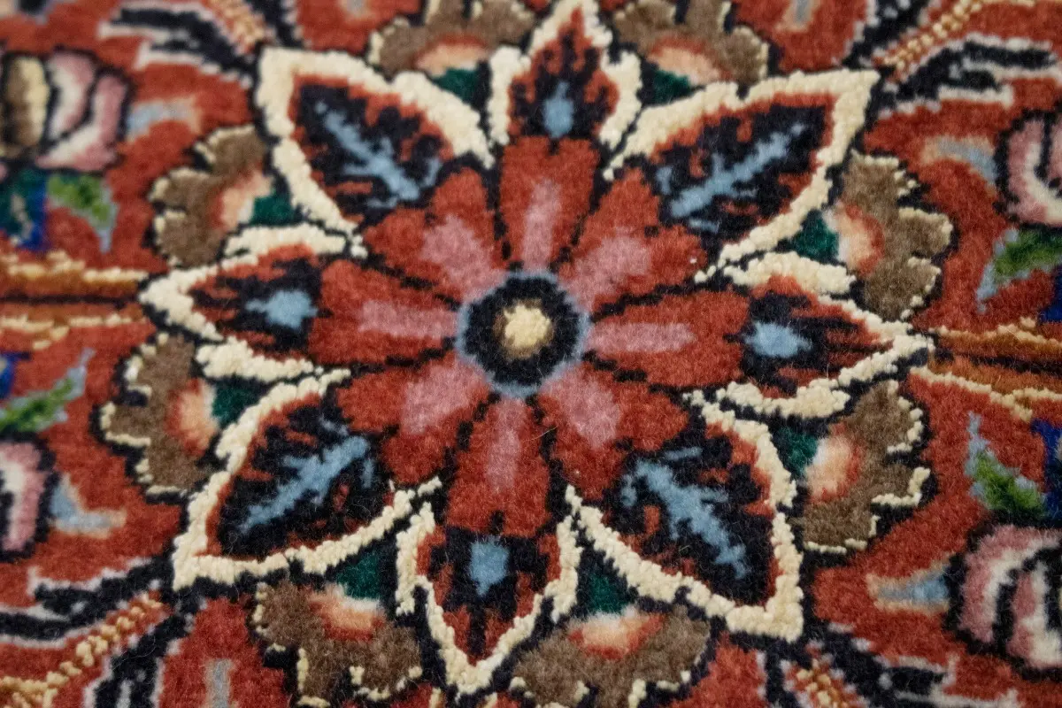 This authentic 4X4 teal blue Persian rug was masterly knotted by the hands of weavers inspired by a variety of wonderful artistic designs, to recreate the aged look of the original piece with a richness of color and intricate patterned floral background field. What set this Oriental rug/runner from the others are the material and dye used (wool pile and cotton foundation), knot count, antique designs, fantastic grades, and its regional historical connection: it has deep roots, from the story of the people who produced it to the meaning of the symbols and colors displayed across its canvas that have been praised for centuries. This classic floral décor carpet will be completely cozy and inviting that never will go out of style! Also, this Oriental rug/runner would be among your most valuable treasures, it is a great investment that accrues value over time, and it will last for generations because was woven with high-quality, all-natural wool; it won’t rip, tear, or shed. Environmentally friendly, opulent yet affordable; this Persian rug will give you a thorough amount of character to help define your living space with luxury and warmth that will capture the eyes and attention of your audience (homeowners, designers, decorators, family and friends). RT-3299