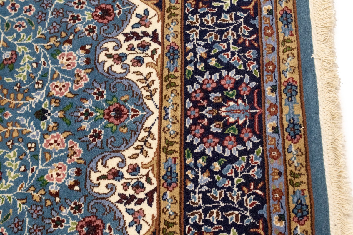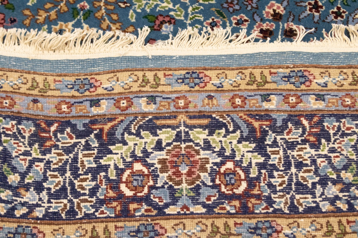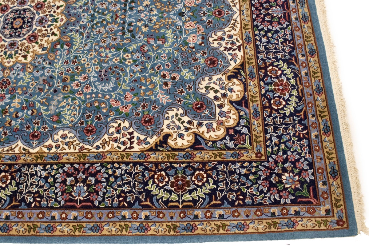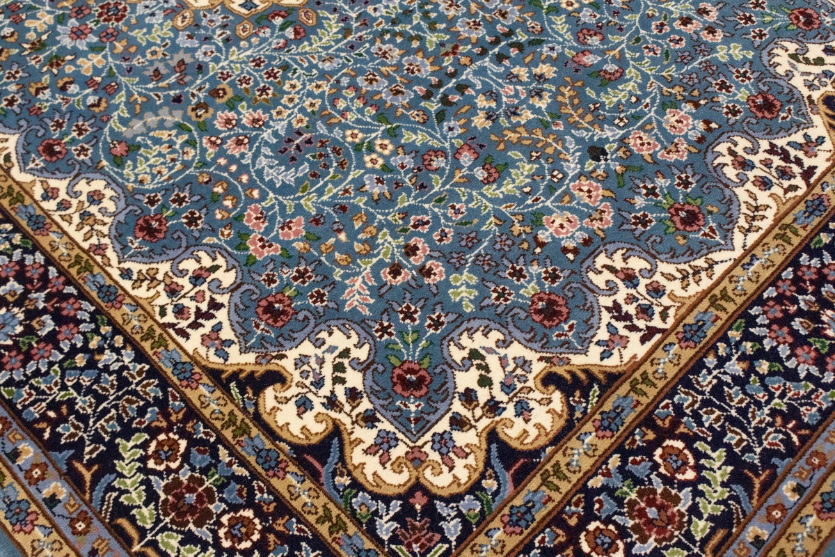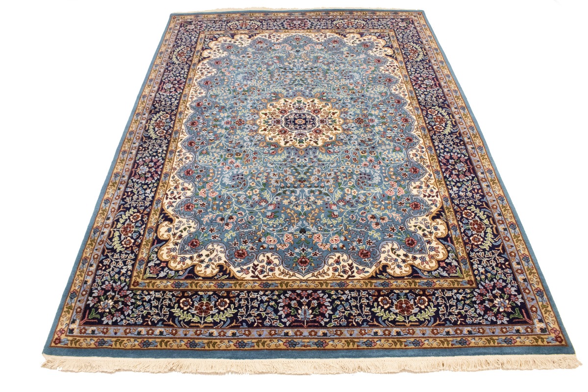 Handmade 6X8 blue Oriental rug made with natural dyes (fine wool pile and cotton foundation), superior knot count, and appealing ancient designs. This Oriental rug never will go out of style and would be among your most valuable treasures.
