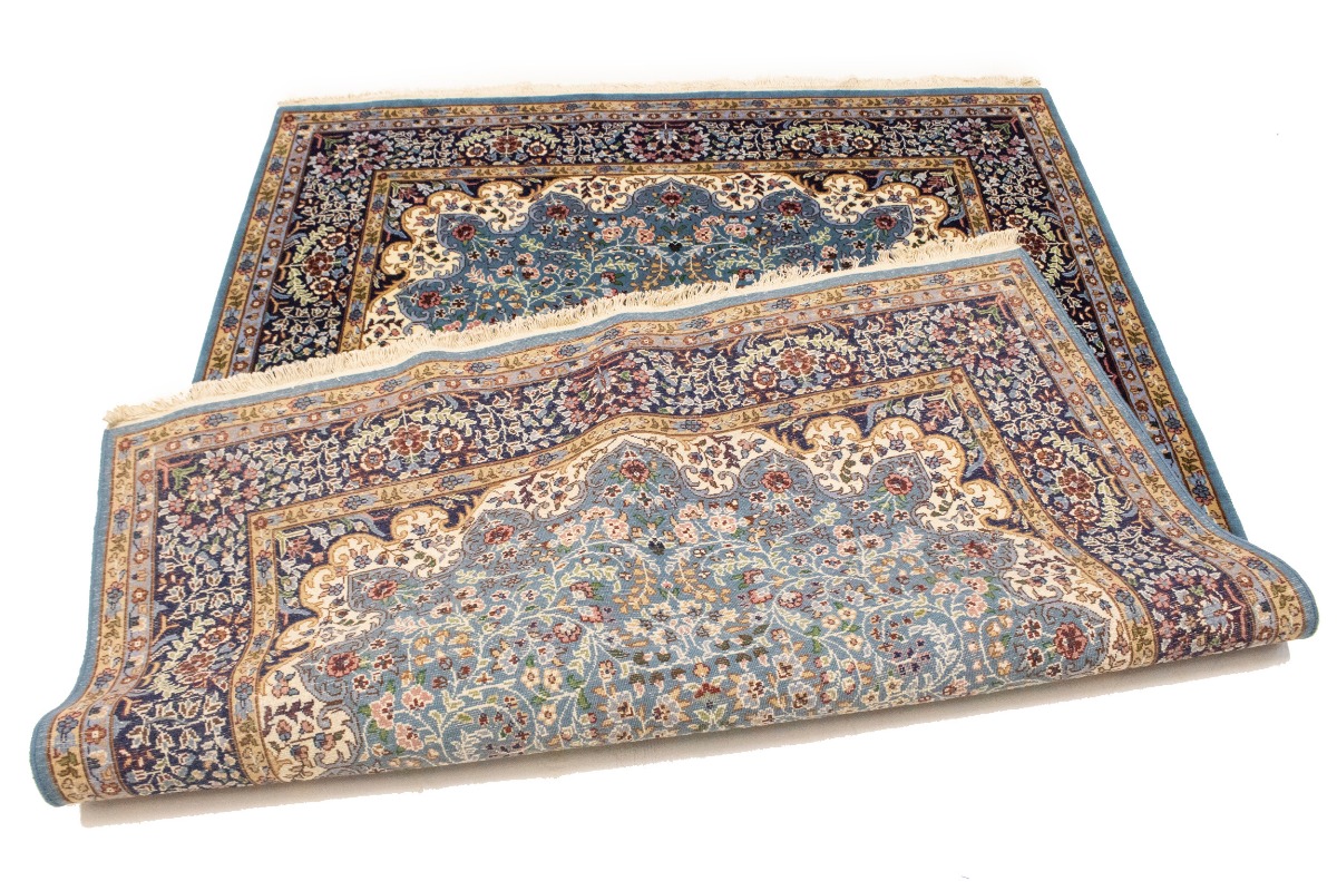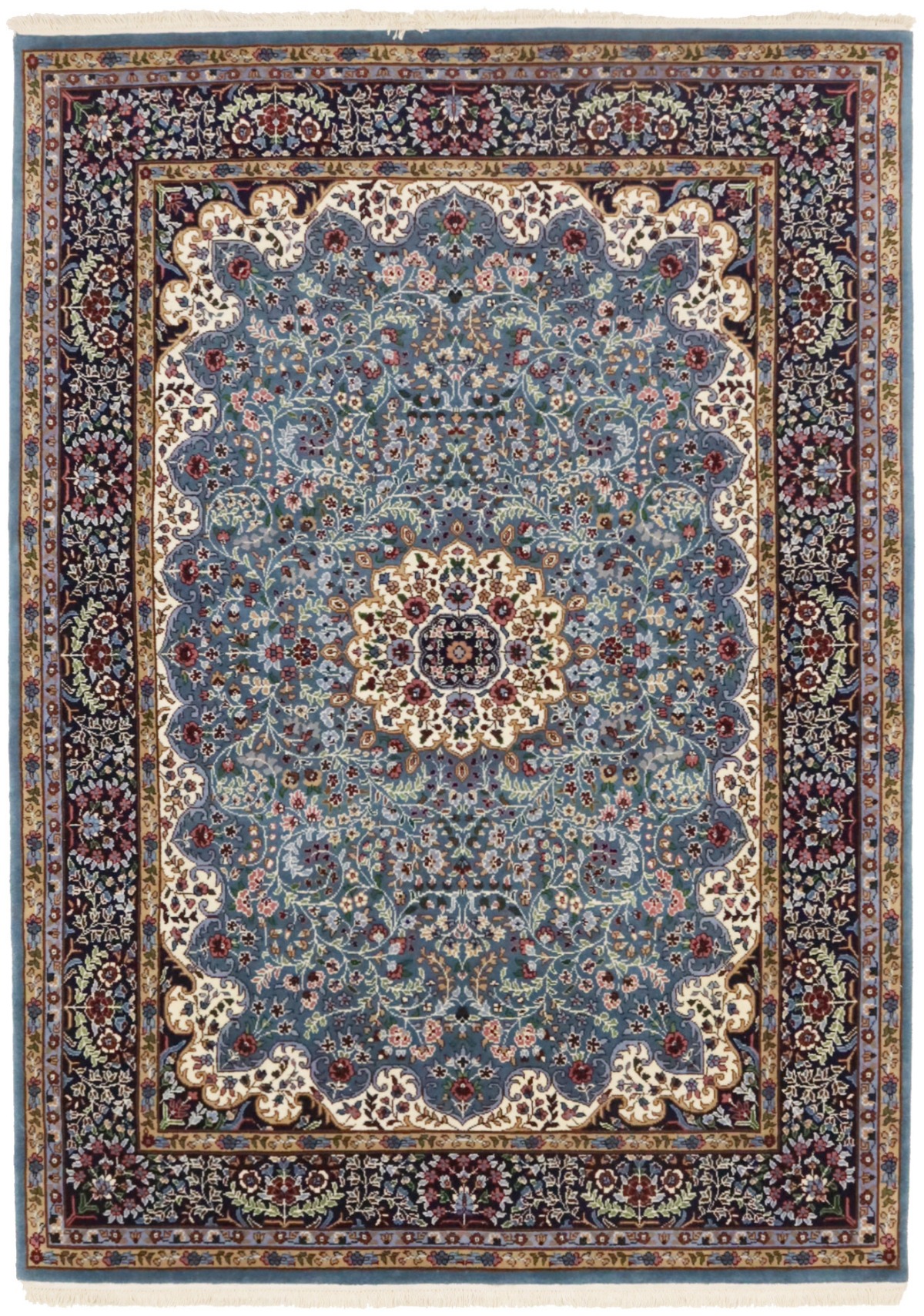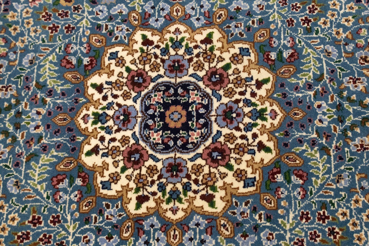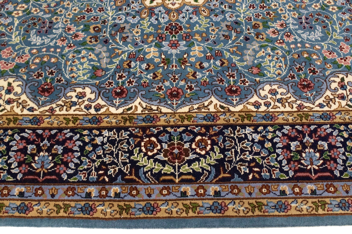 Handmade 6X8 blue Oriental rug made with natural dyes (fine wool pile and cotton foundation), superior knot count, and appealing ancient designs. This Oriental rug never will go out of style and would be among your most valuable treasures.