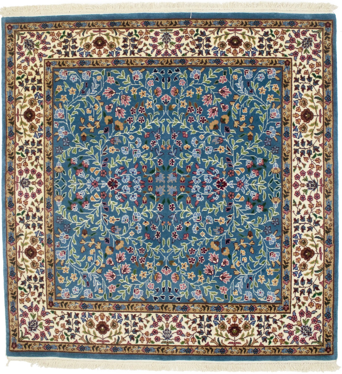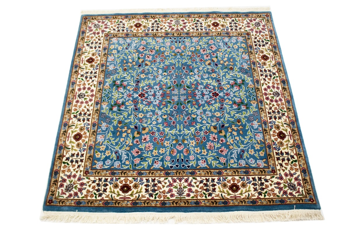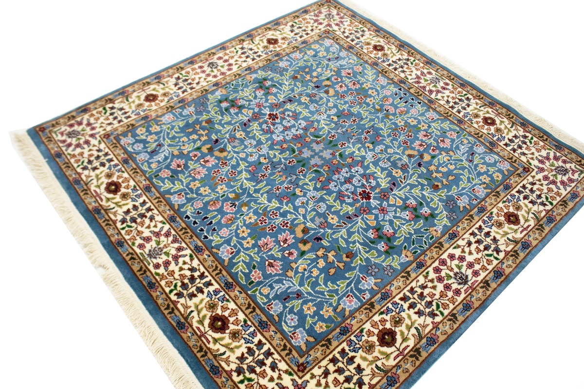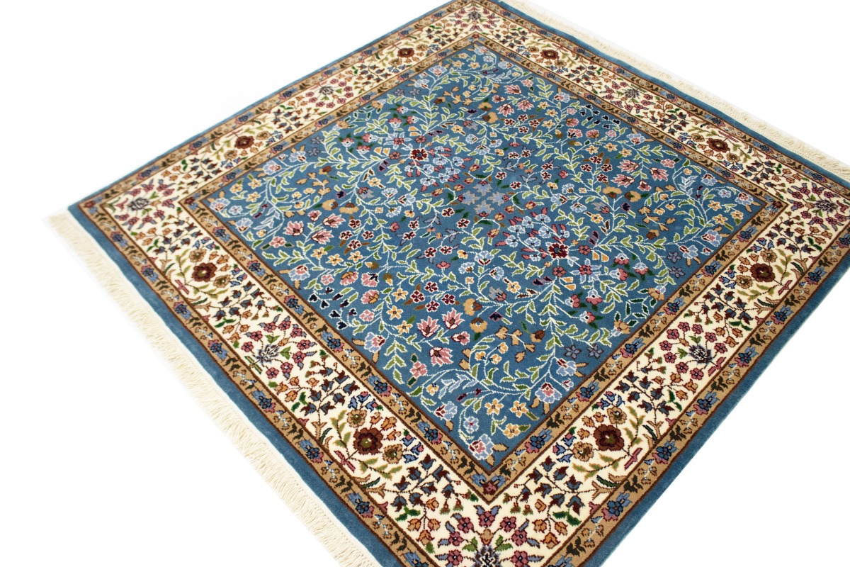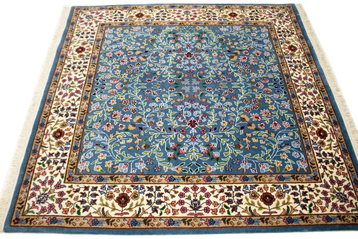 Hand Knotted 5X5 blue oriental rug made with natural dyes (fine wool pile and cotton foundation), superior knot count, and appealing ancient designs. This Oriental rug never will go out of style and would be among your most valuable treasures.