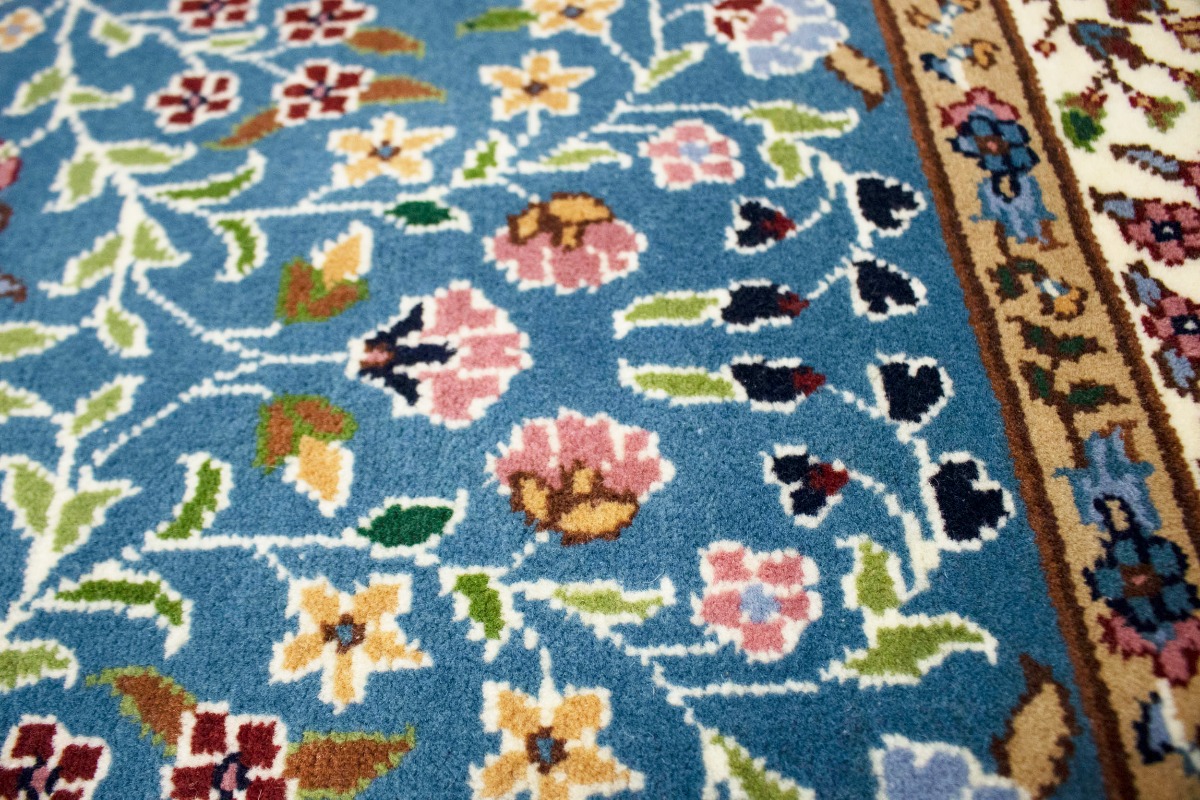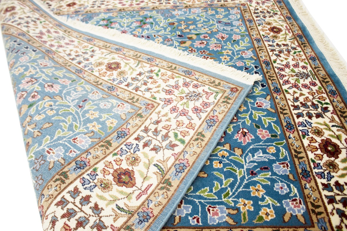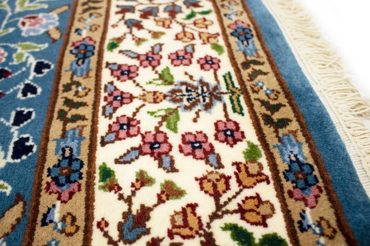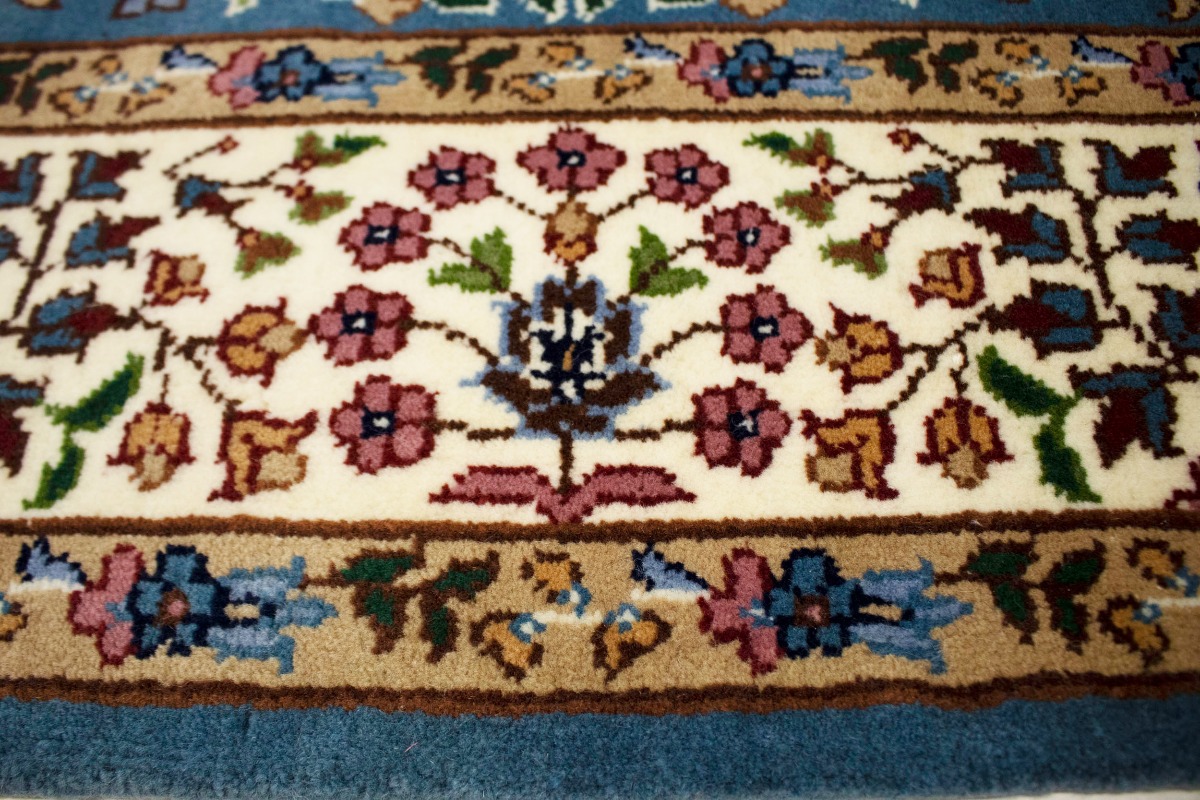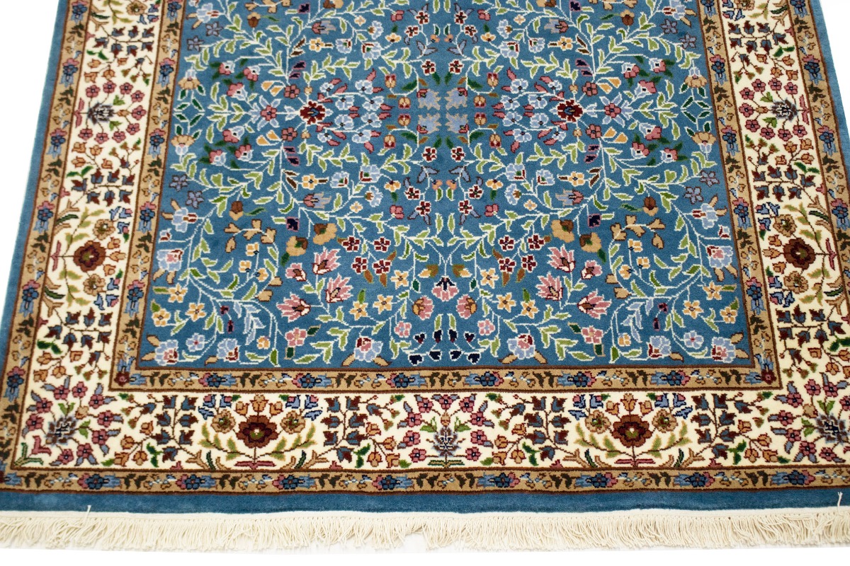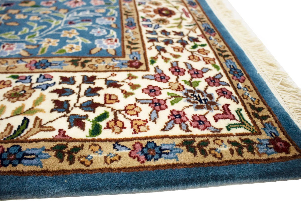 Hand Knotted 5X5 blue oriental rug made with natural dyes (fine wool pile and cotton foundation), superior knot count, and appealing ancient designs. This Oriental rug never will go out of style and would be among your most valuable treasures.
