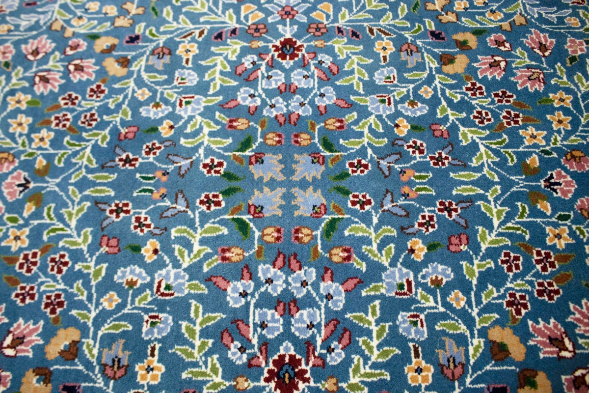 Teal Blue Floral Kirman 5X5 Oriental Square Rug
