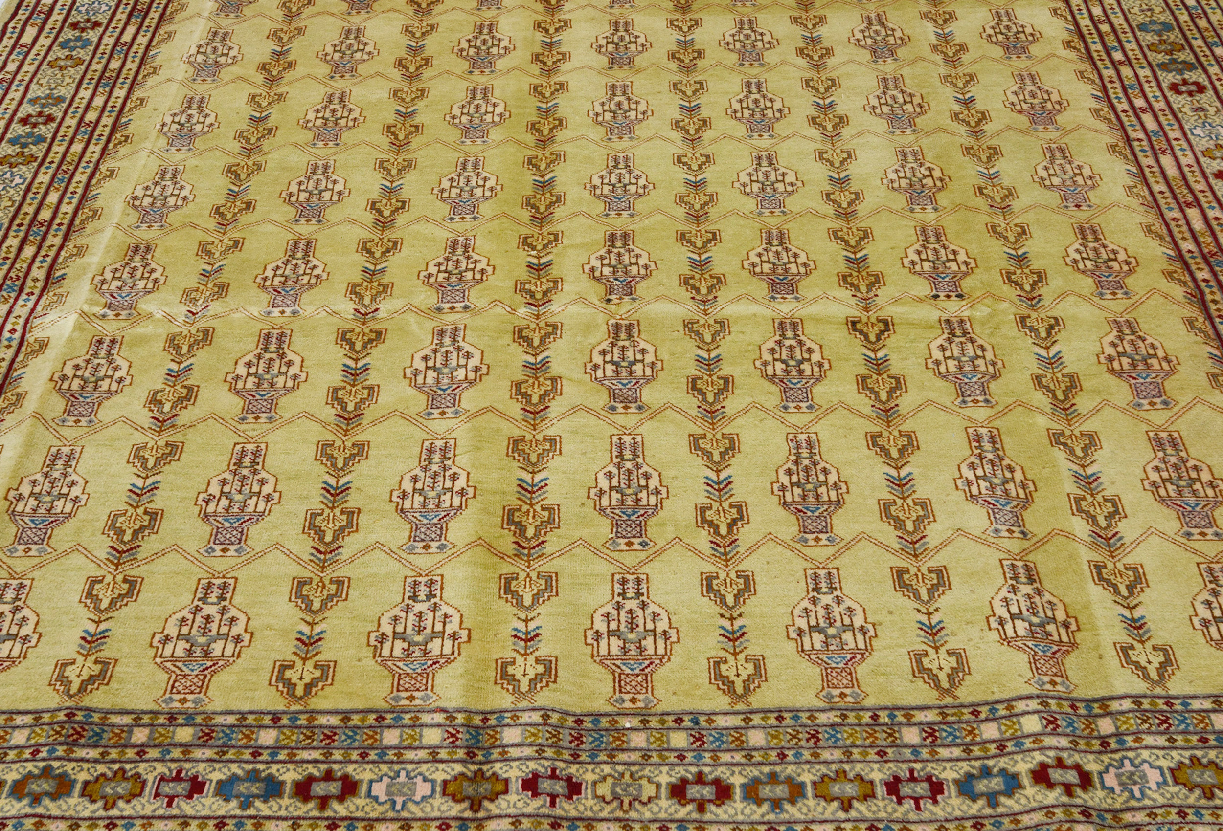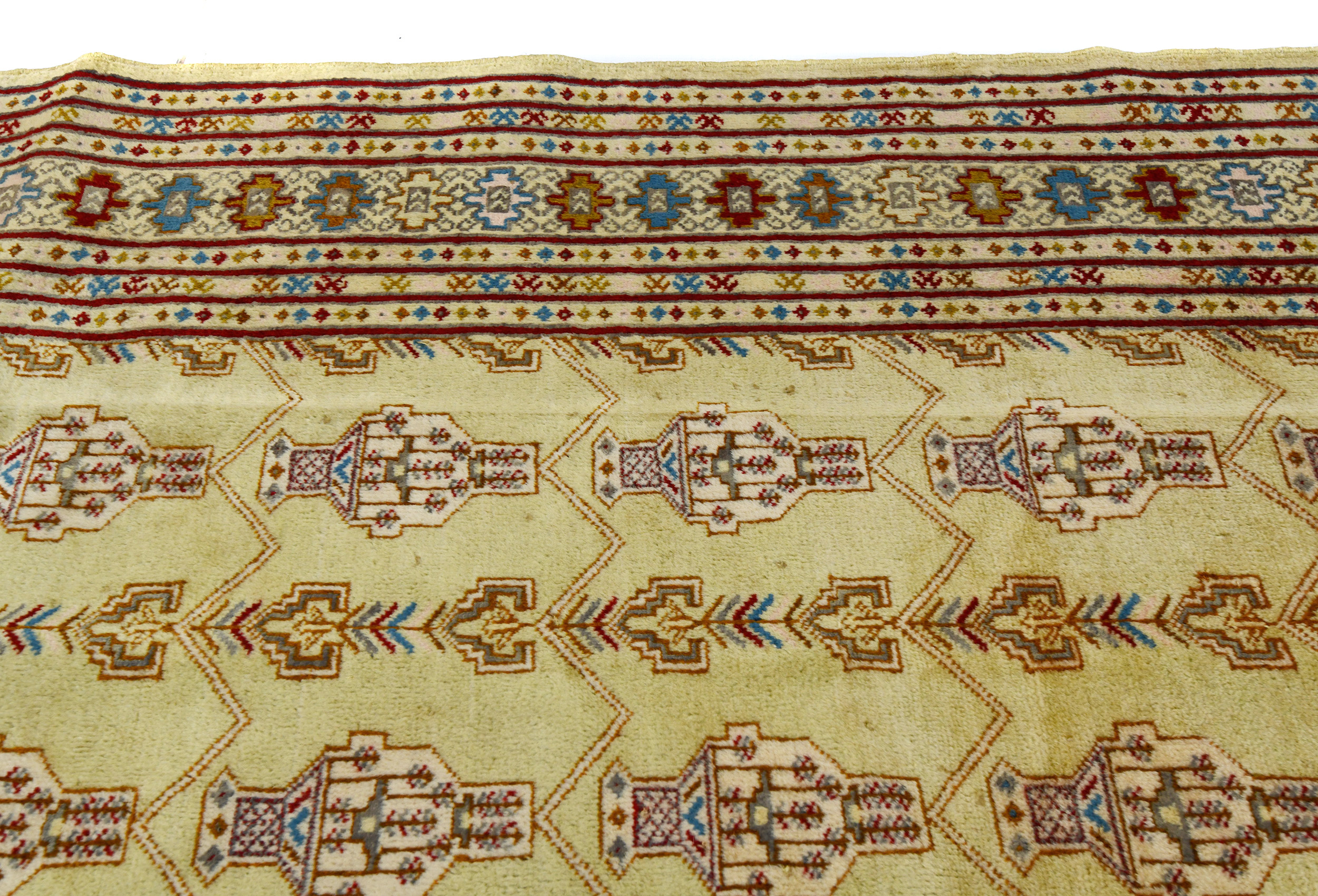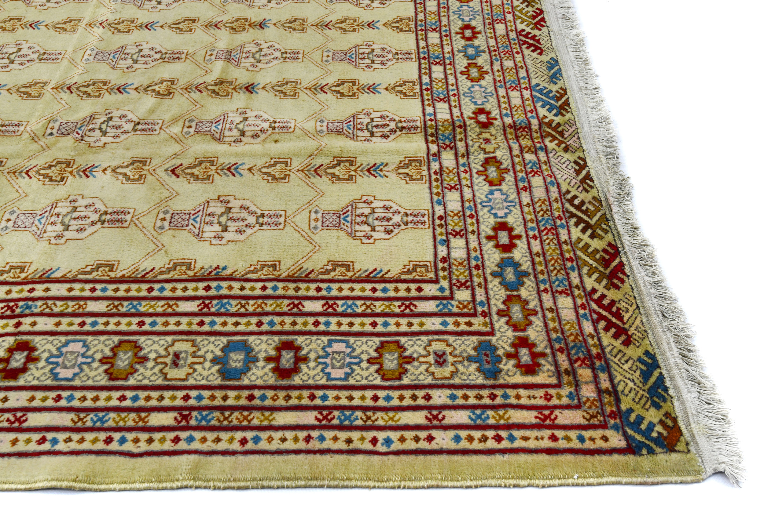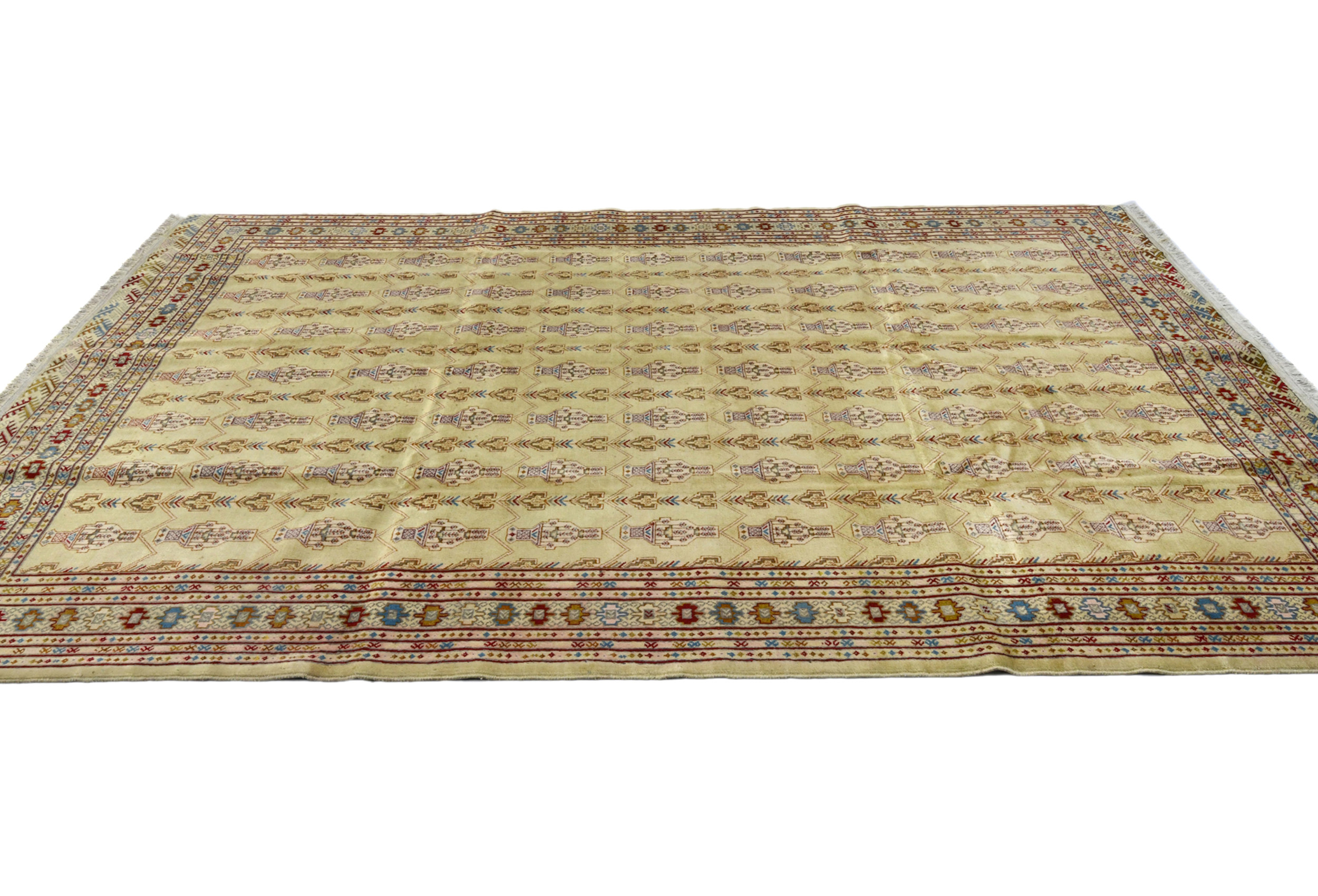 Handmade vintage 7X9 beige Persian rug made with vegetable dyes (fine wool pile and cotton foundation), superior knot count, and alluring ancient designs. This Oriental rug never will go out of style and would be among your most valuable treasures.